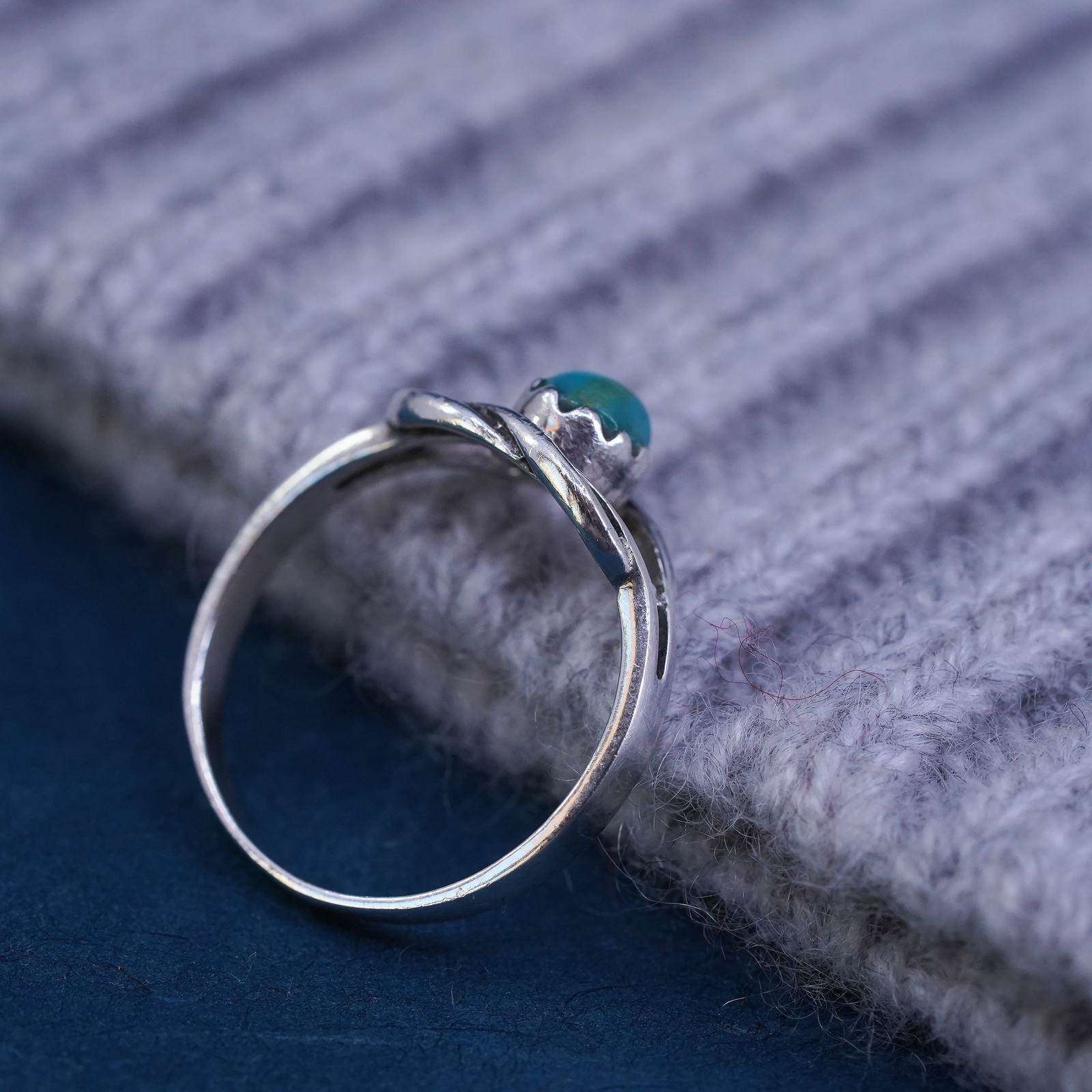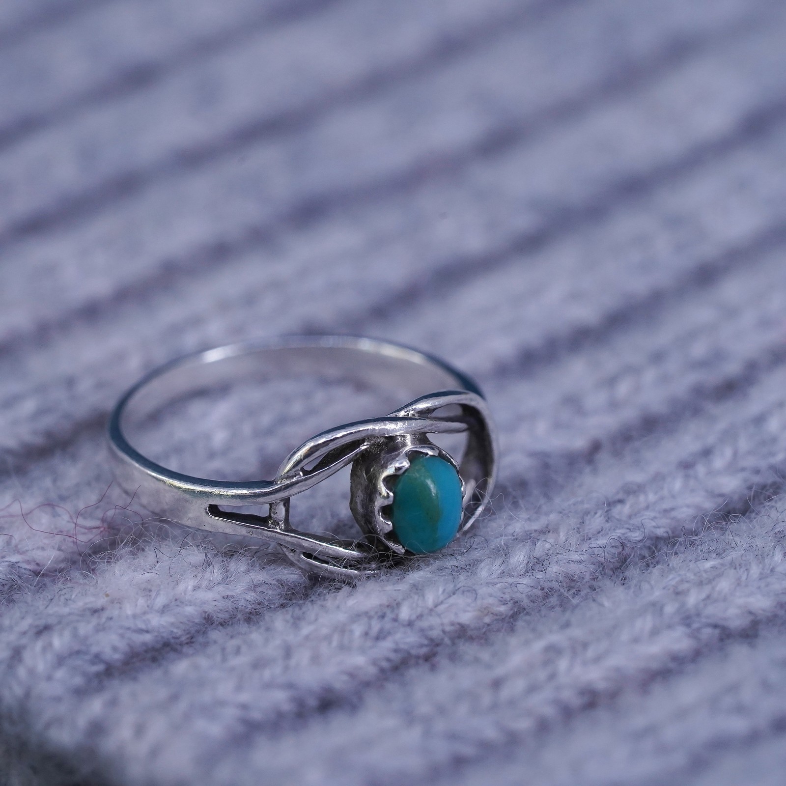 Size 6.5, Native American, southwestern Sterling silver ring turquoise cable