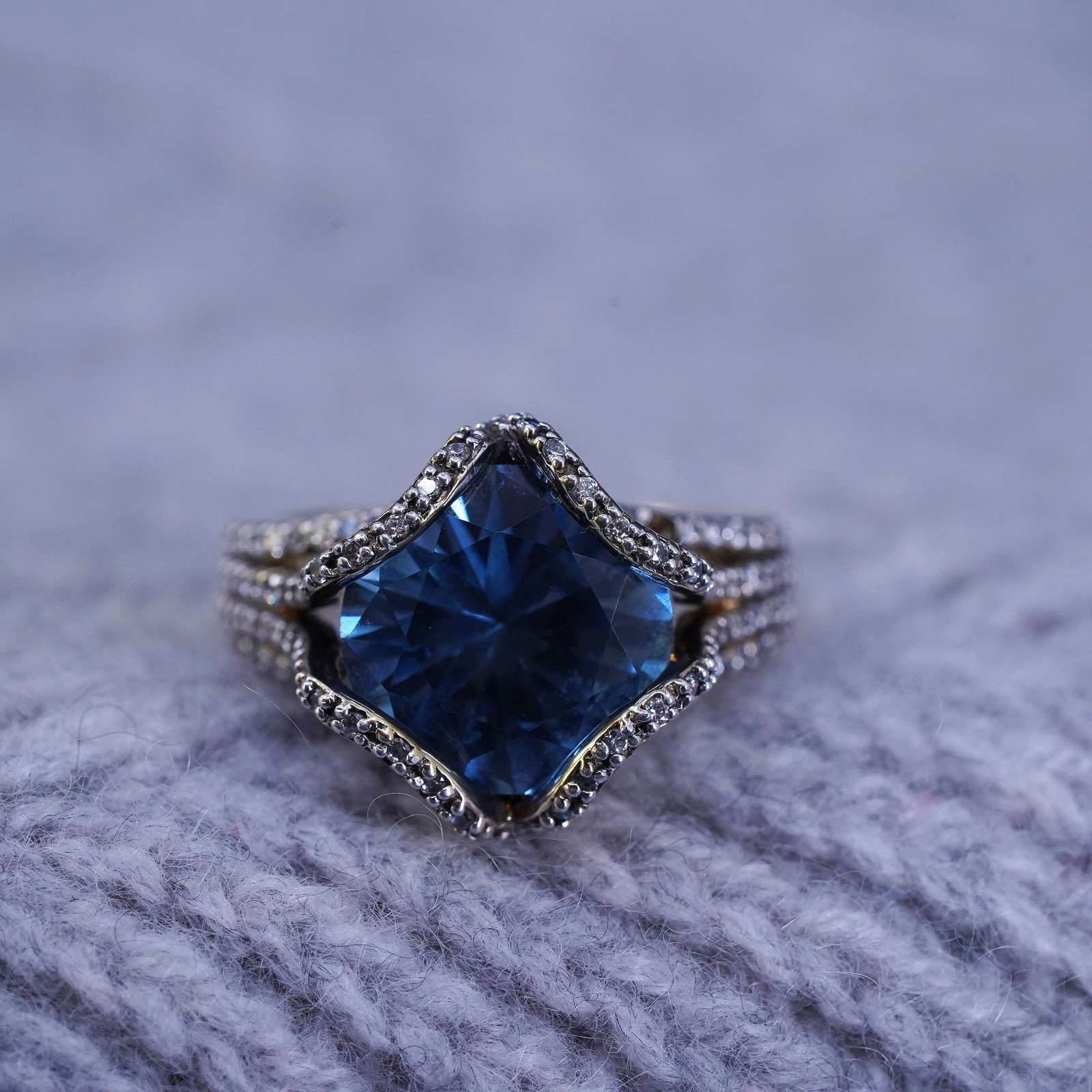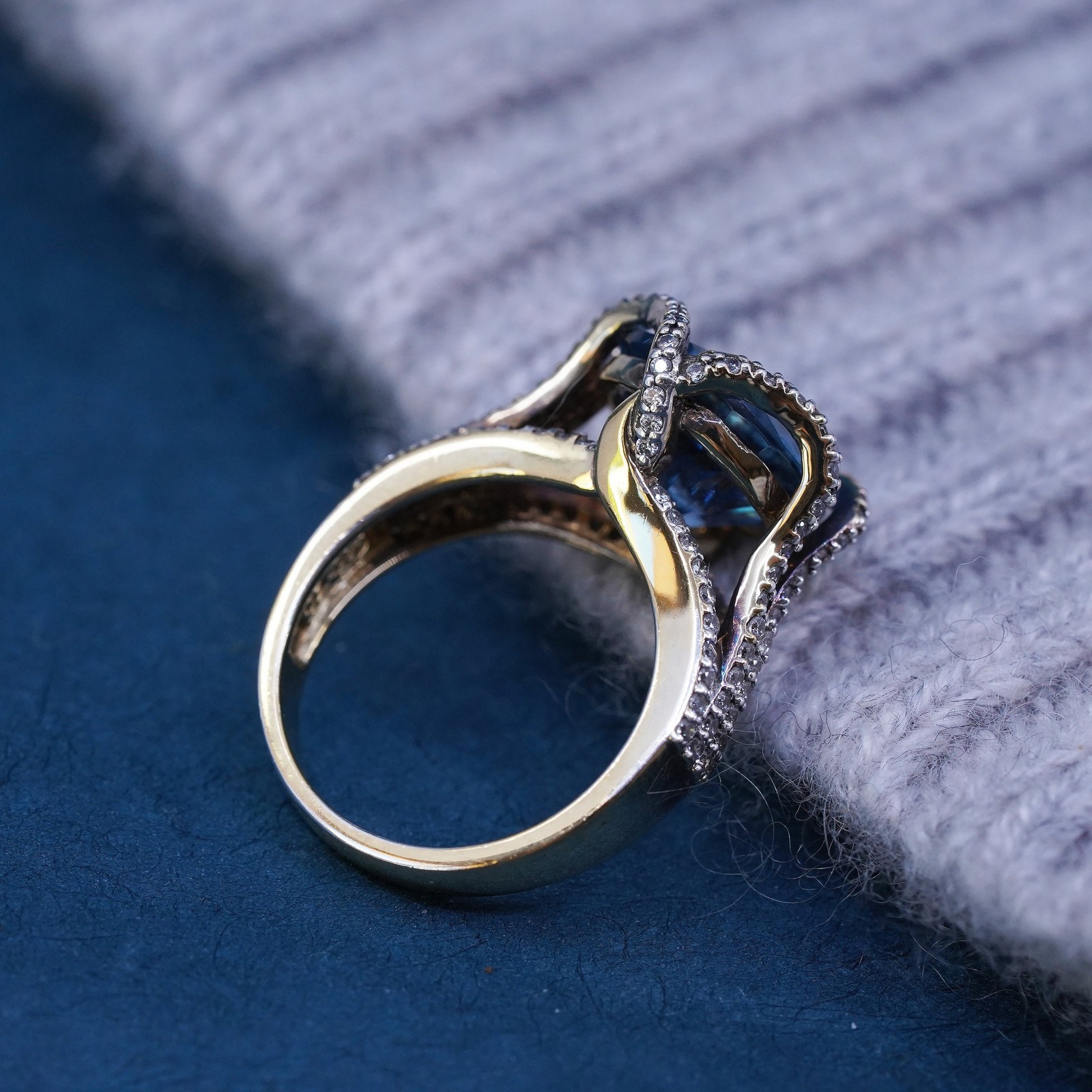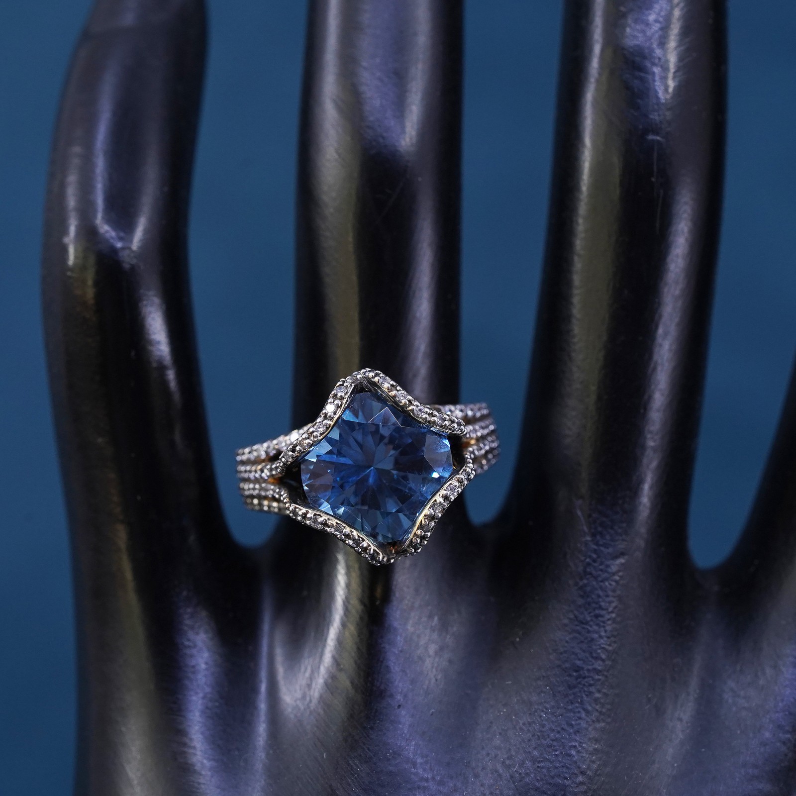 Size 7, vermeil gold over sterling 925 silver ring with topaz and cluster cz