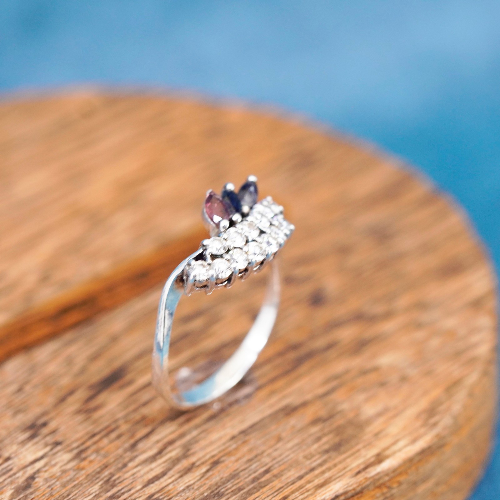 Size 8.5, vintage Sterling 925 silver engagement anniversary ring w/ cluster Cz