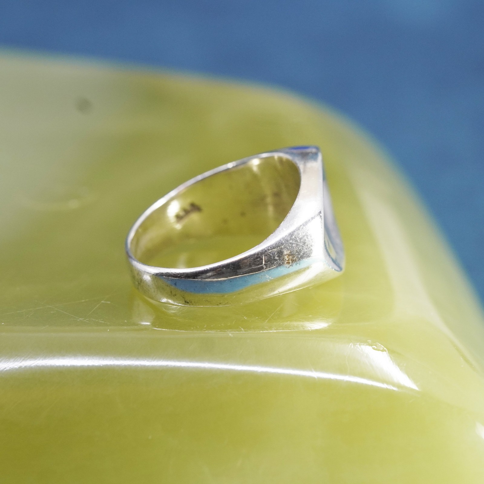 как выглядит Size 9, vintage Sterling silver handmade ring, modern wide 925 band фото