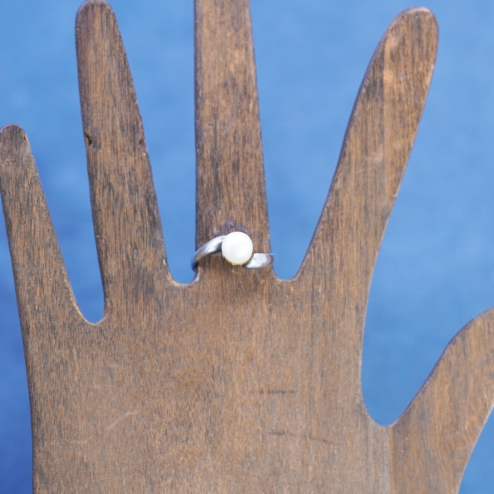 как выглядит Size 7, vintage sterling 925 silver statement ring band with pearl фото