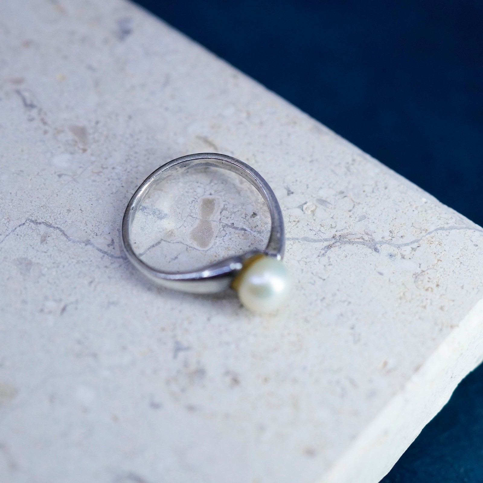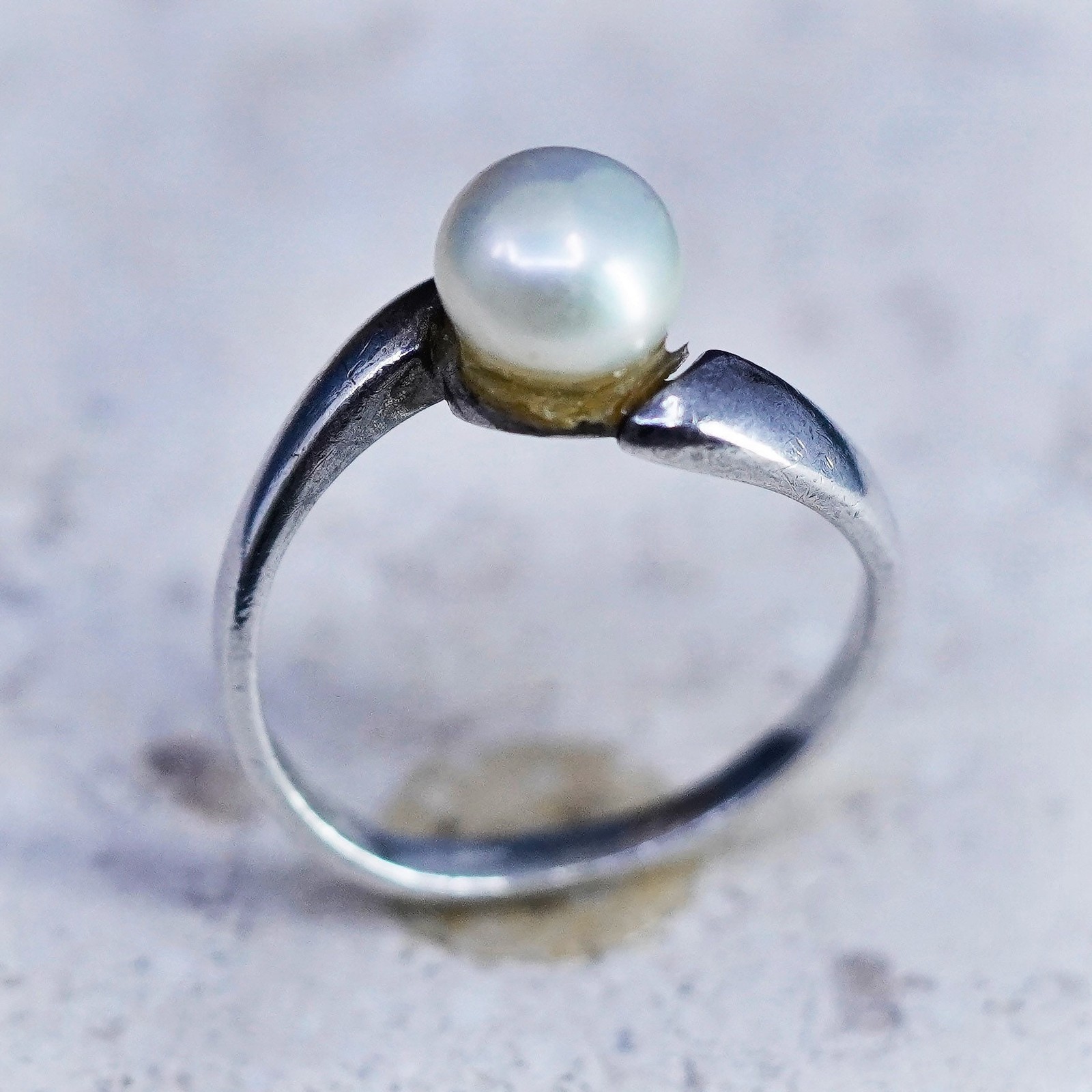 Size 7, vintage sterling 925 silver statement ring band with pearl