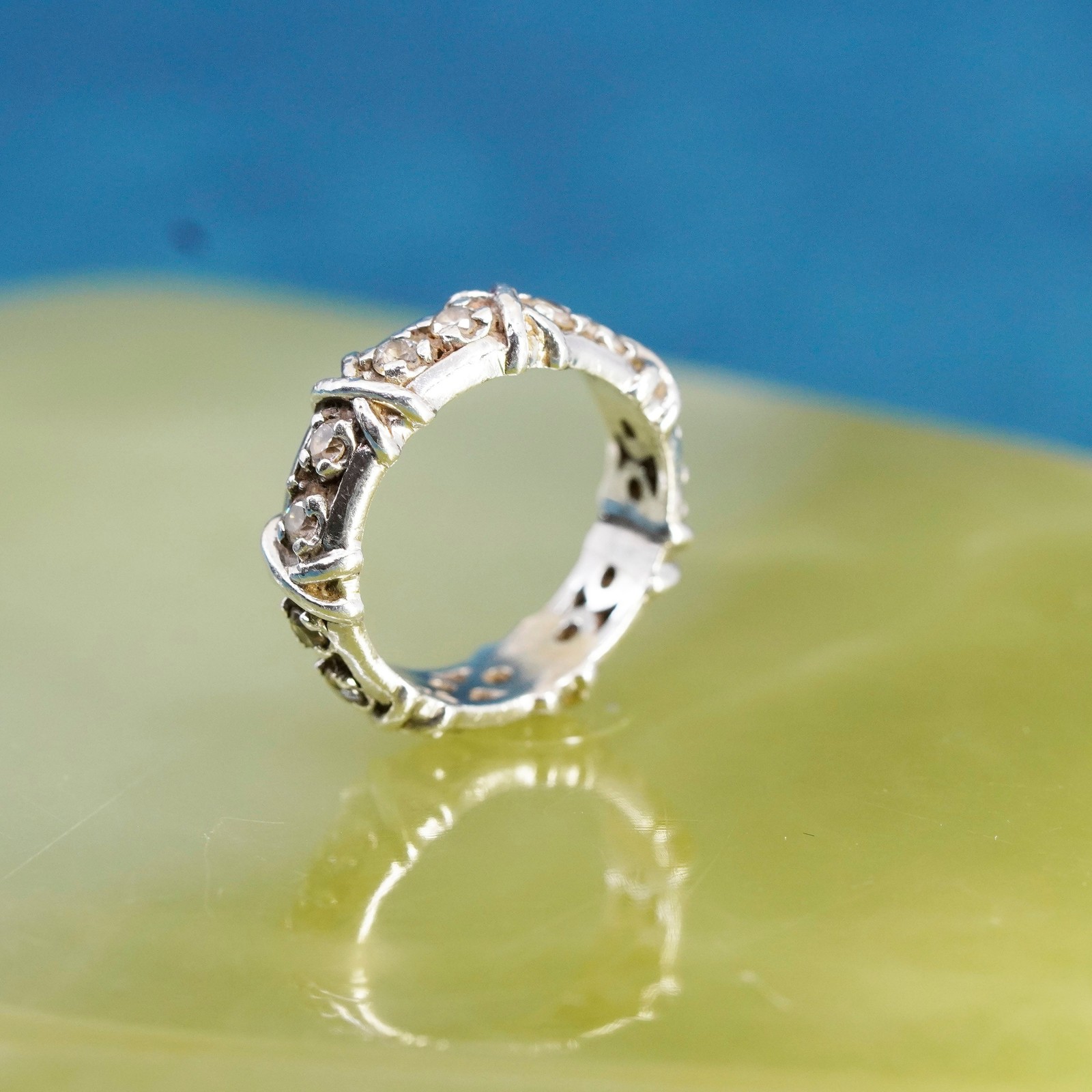 Size 6, Sterling 925 silver handmade ring, 925 stackable wedding band with Cz