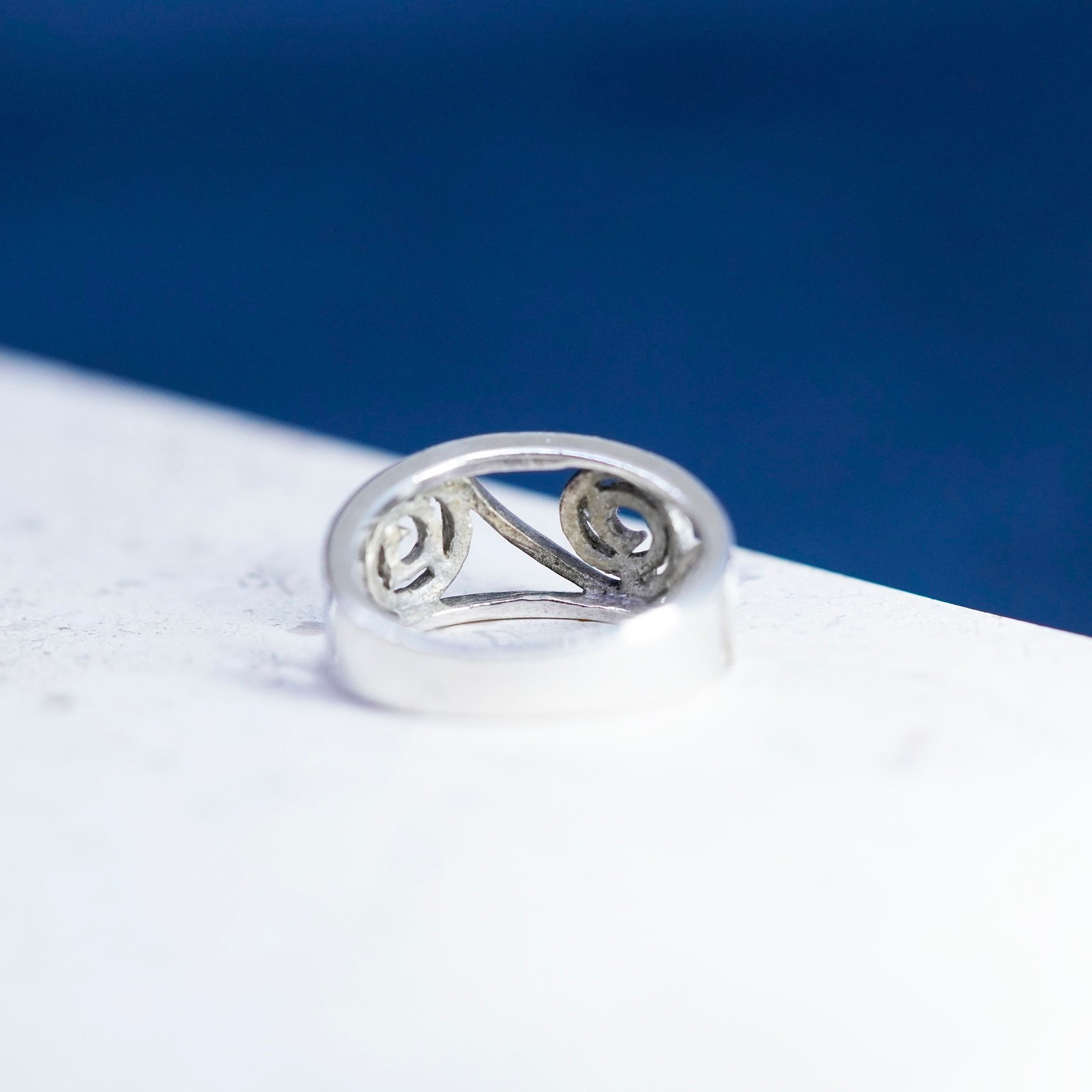 как выглядит Size 6, vintage Sterling silver handmade ring, 925 Filigree swirl band фото