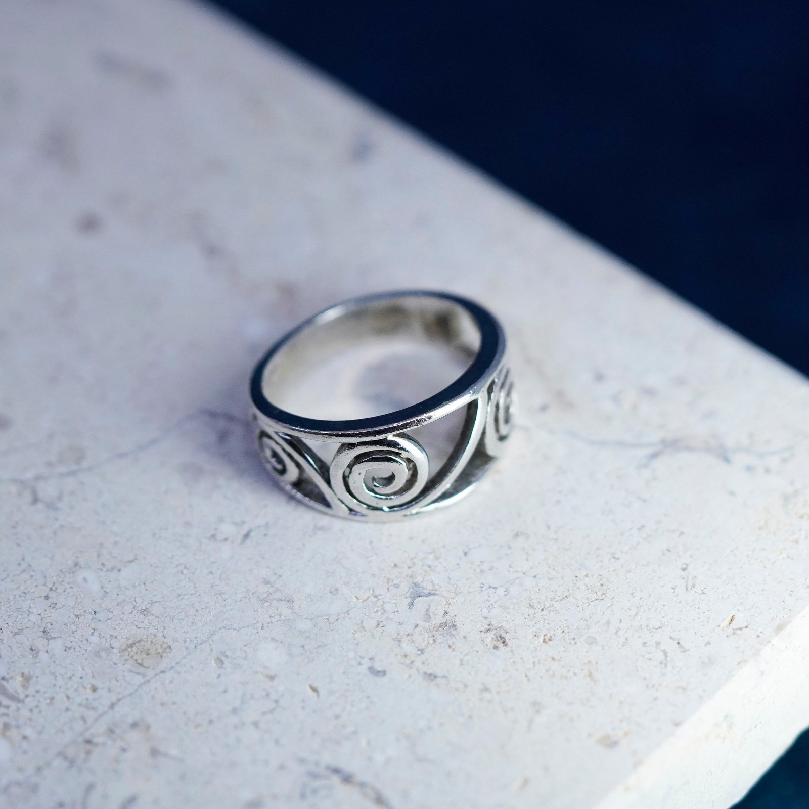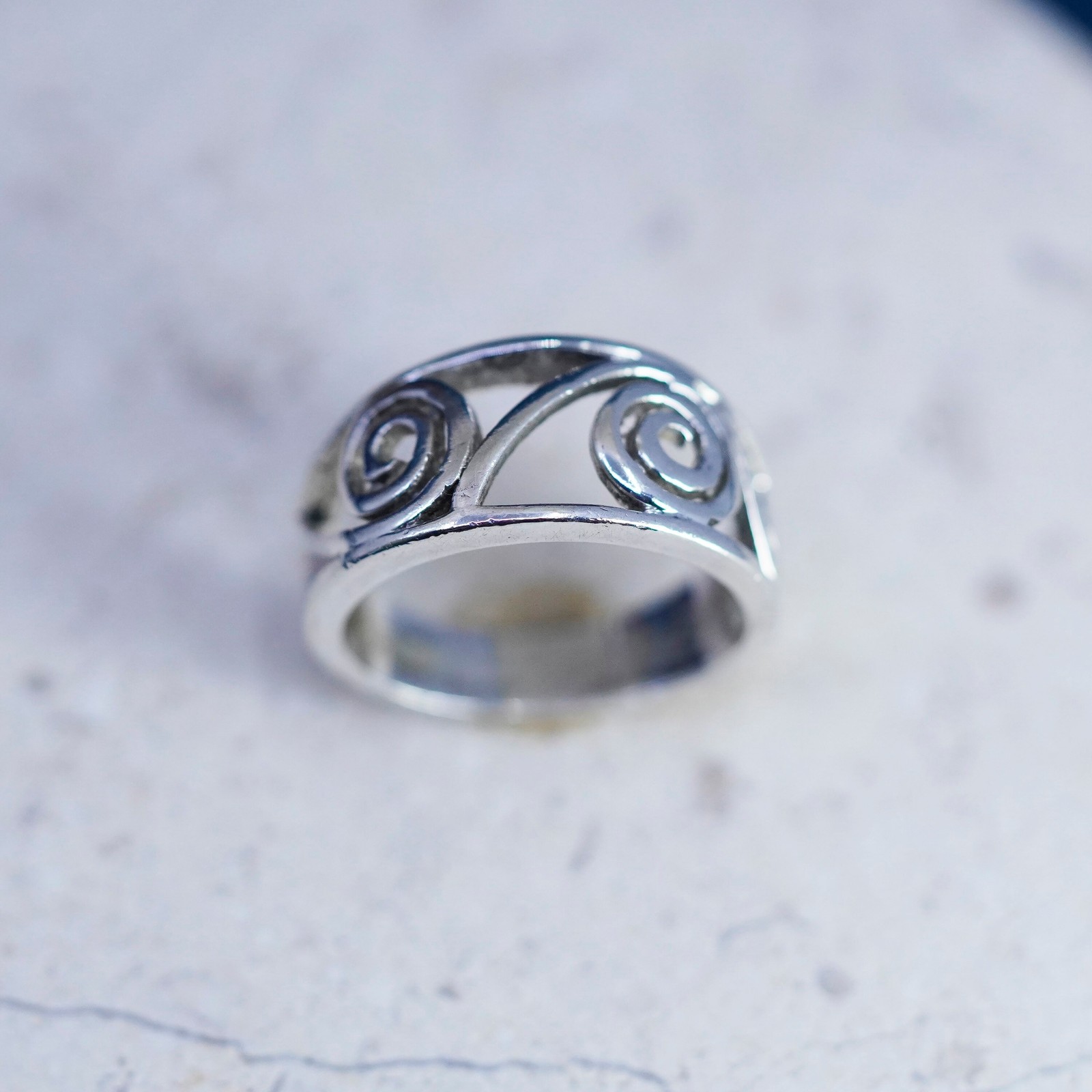 Size 6, vintage Sterling silver handmade ring, 925 Filigree swirl band