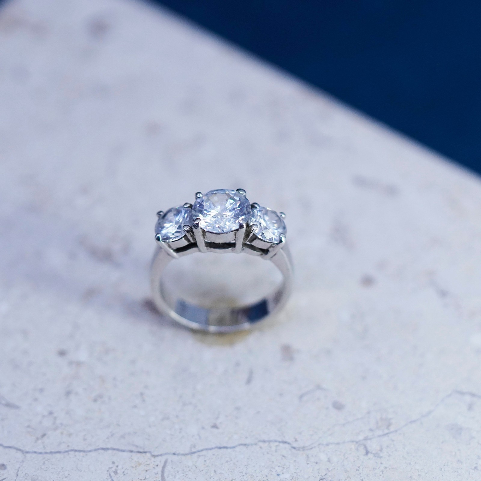 как выглядит Size 7 vintage Sterling 925 silver engagement ring with cz фото