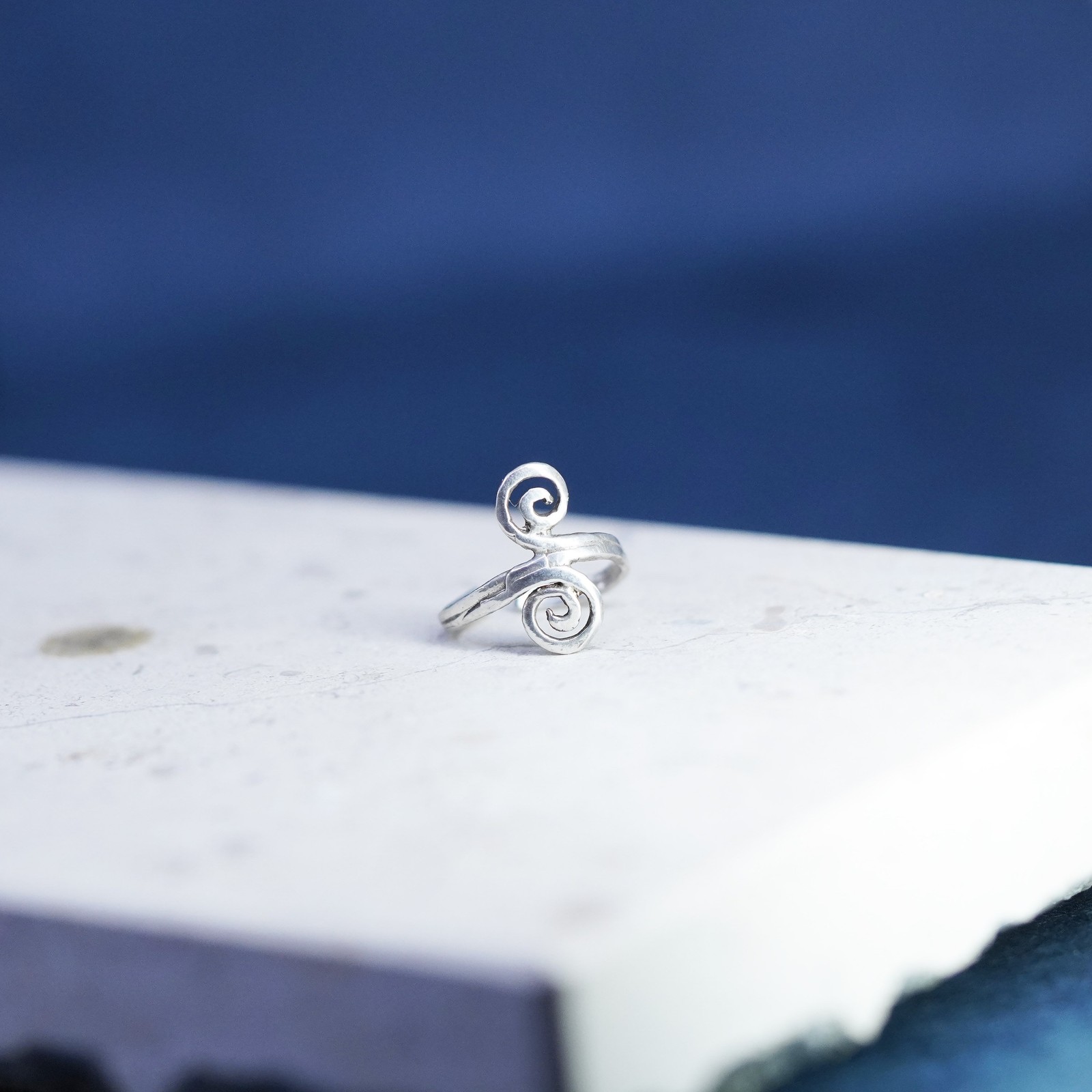 Size 2, vintage Sterling silver handmade ring, 925 Filigree swirl band