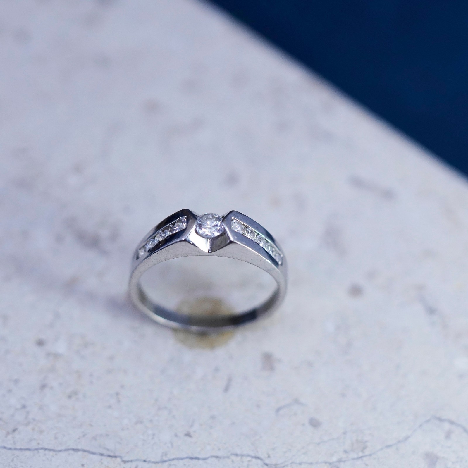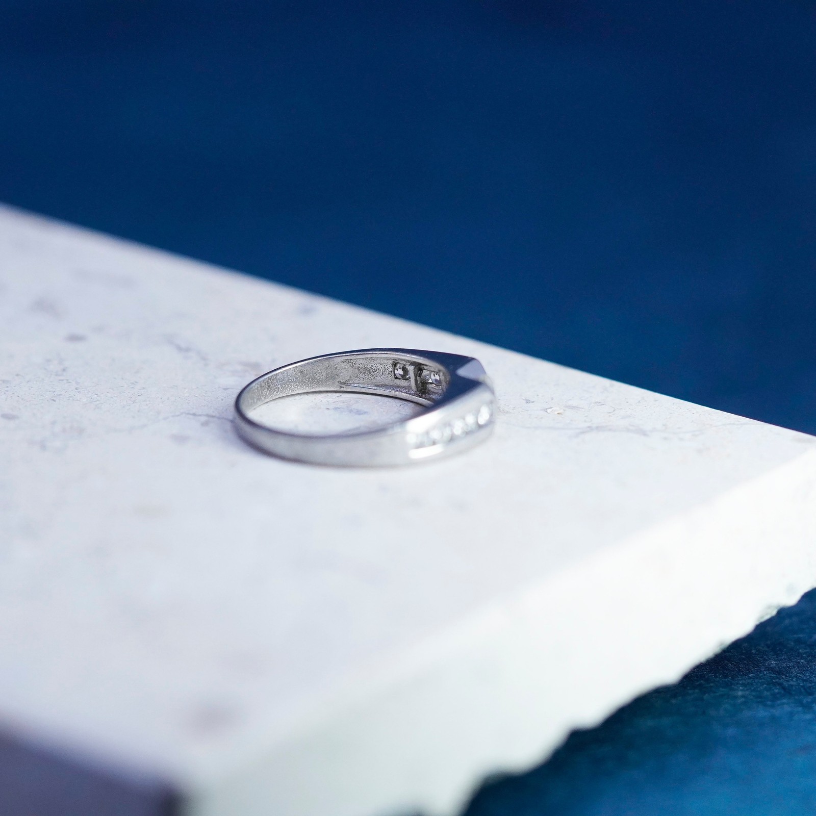 как выглядит Size 9.5, vintage Sterling 925 silver engagement anniversary band ring with Cz фото