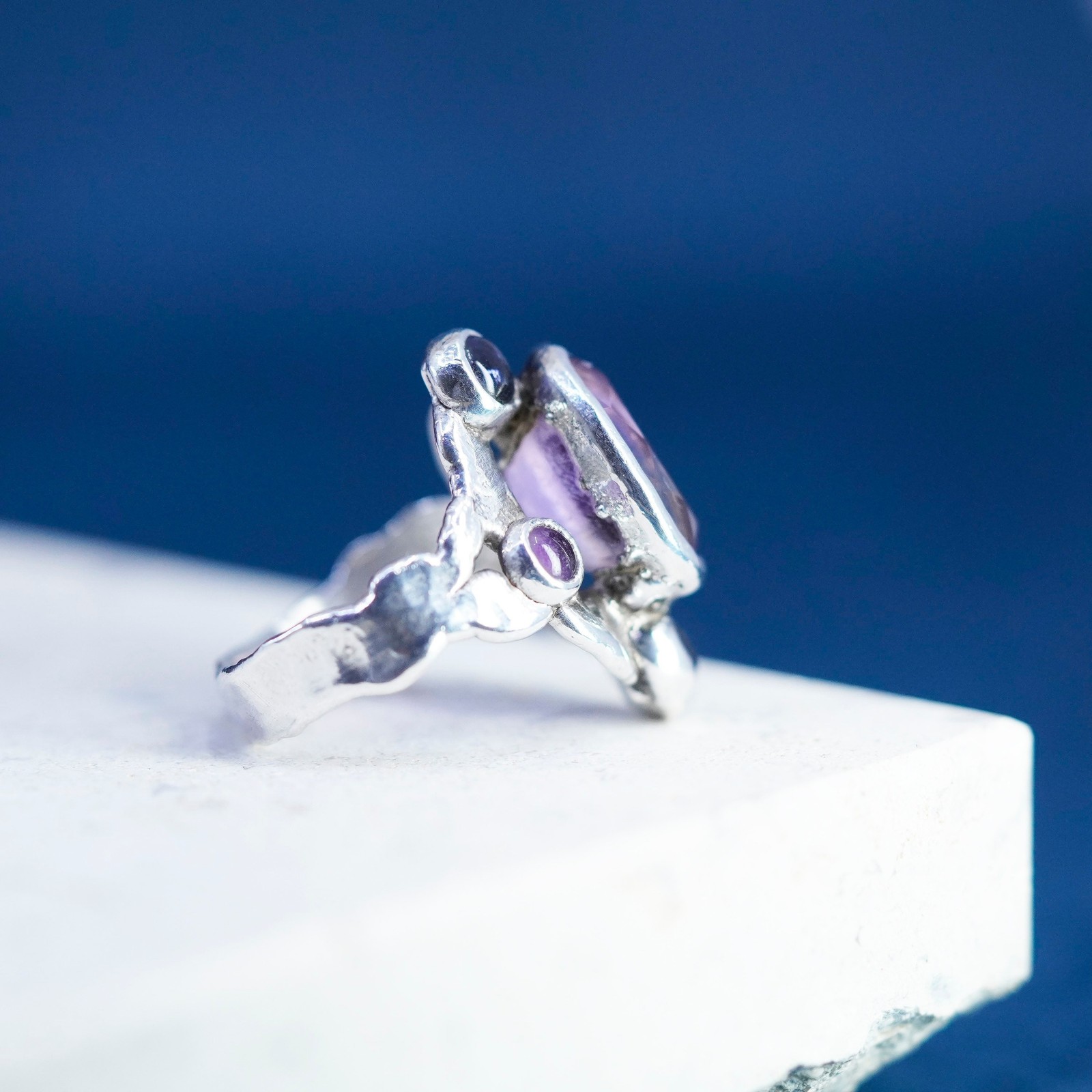 как выглядит Size 6, vintage Sterling 925 silver handmade ring with amethyst ring фото