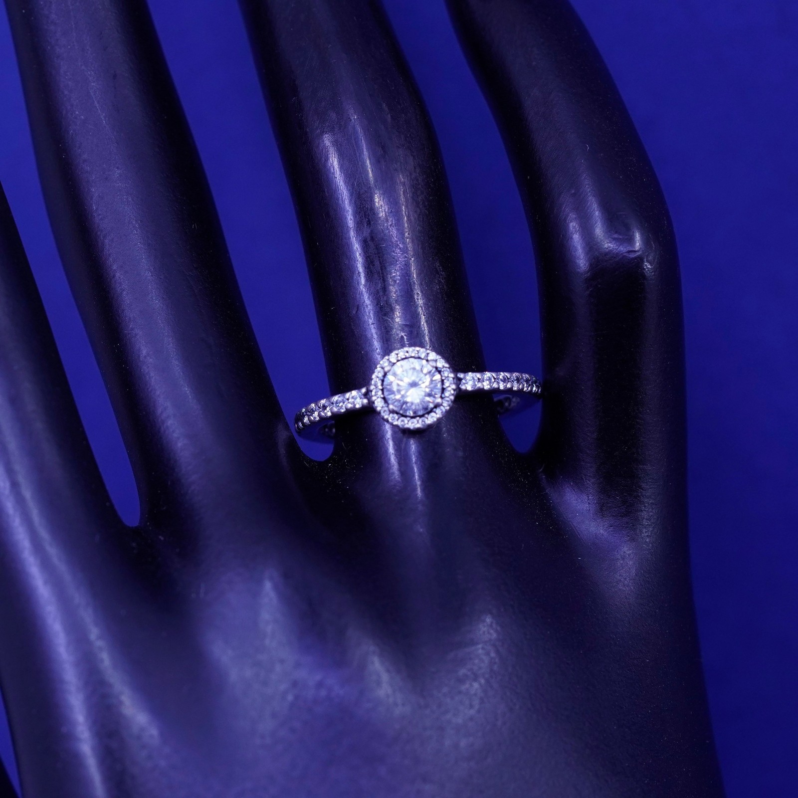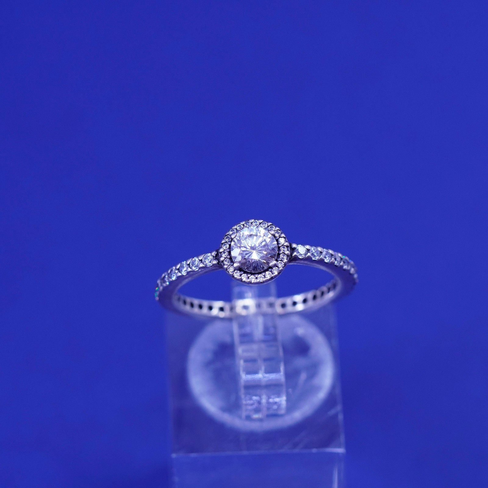 как выглядит Size 7.75, vintage ALE sterling 925 silver engagement ring with cz фото