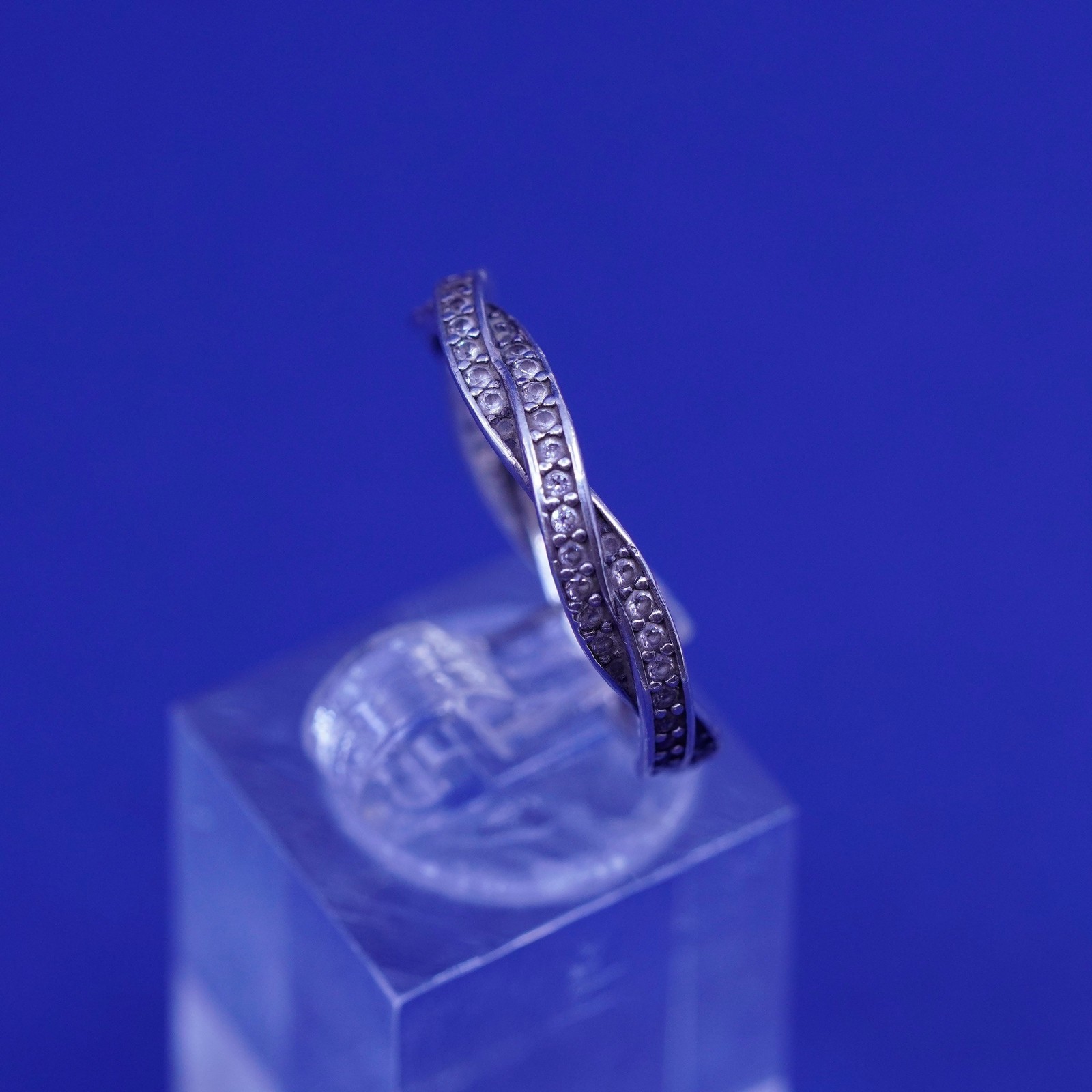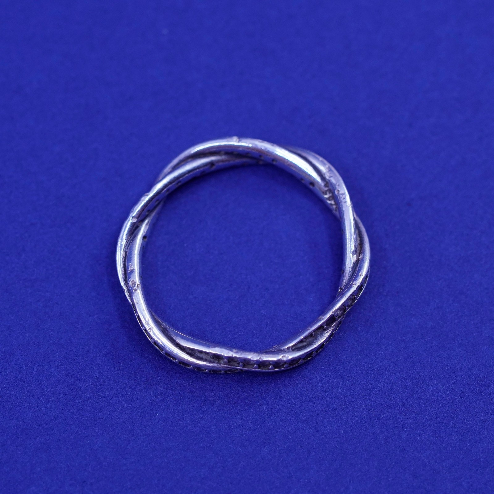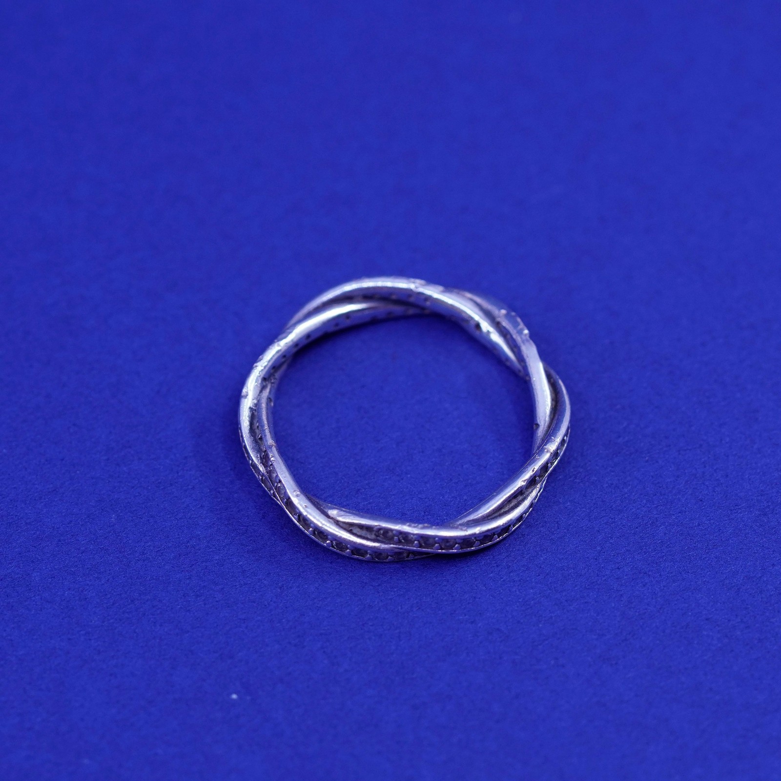 как выглядит Size 8.5, vintage ALE sterling silver handmade ring, 925 entwined band with cz фото