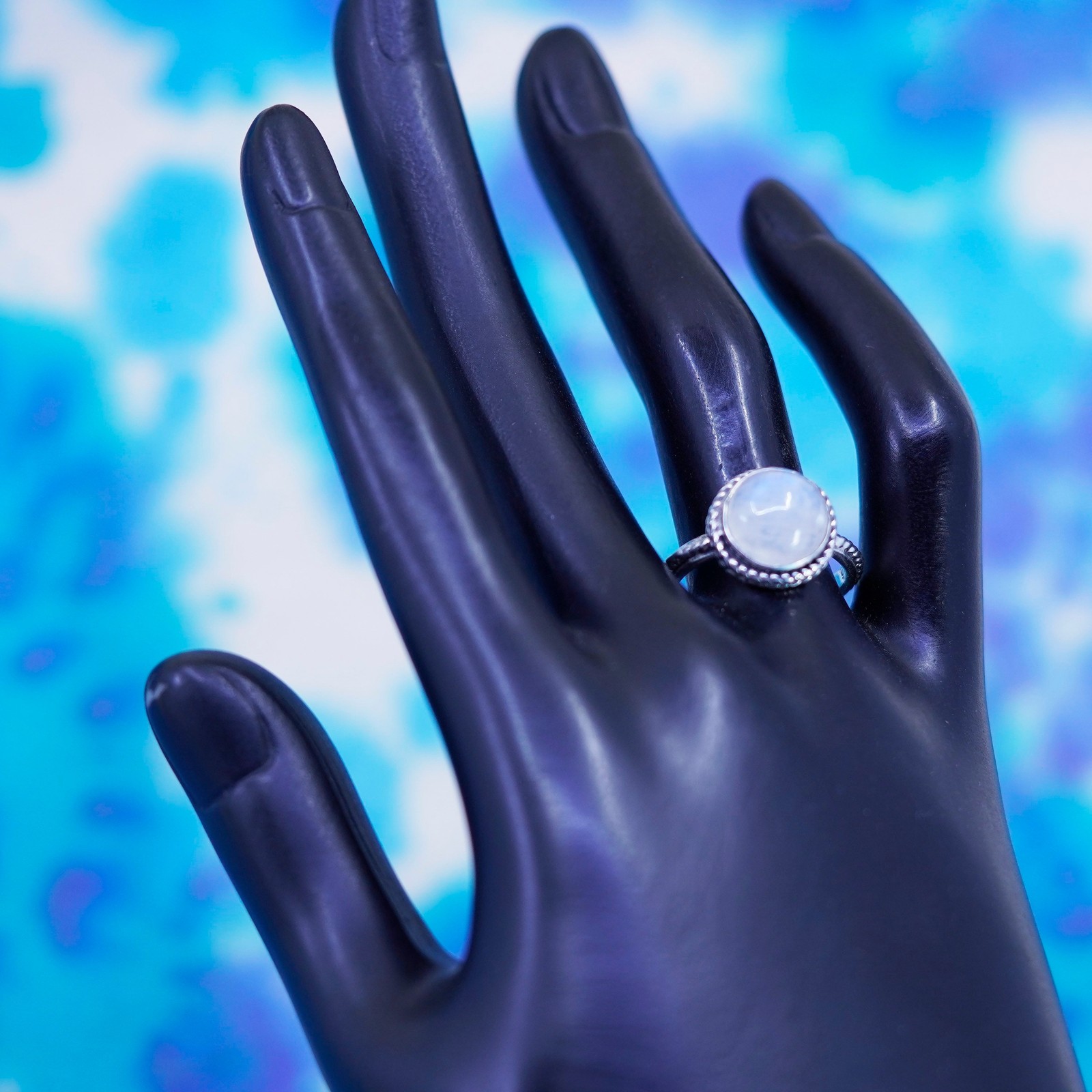 как выглядит Size 7, vintage Sterling silver handmade ring, 925 band with moonstone фото