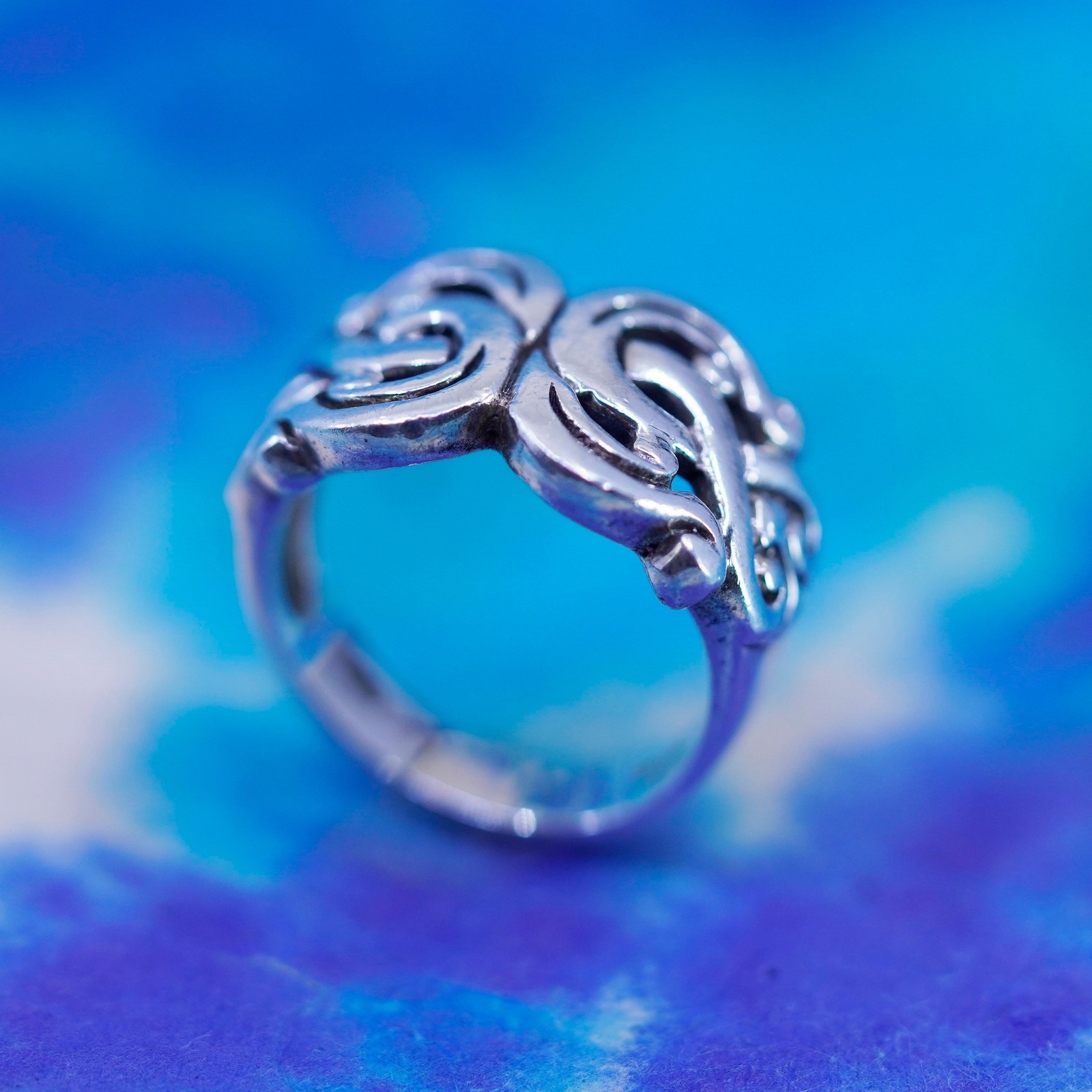 Size 7, vintage Sterling silver handmade ring, bold 925 filigree band