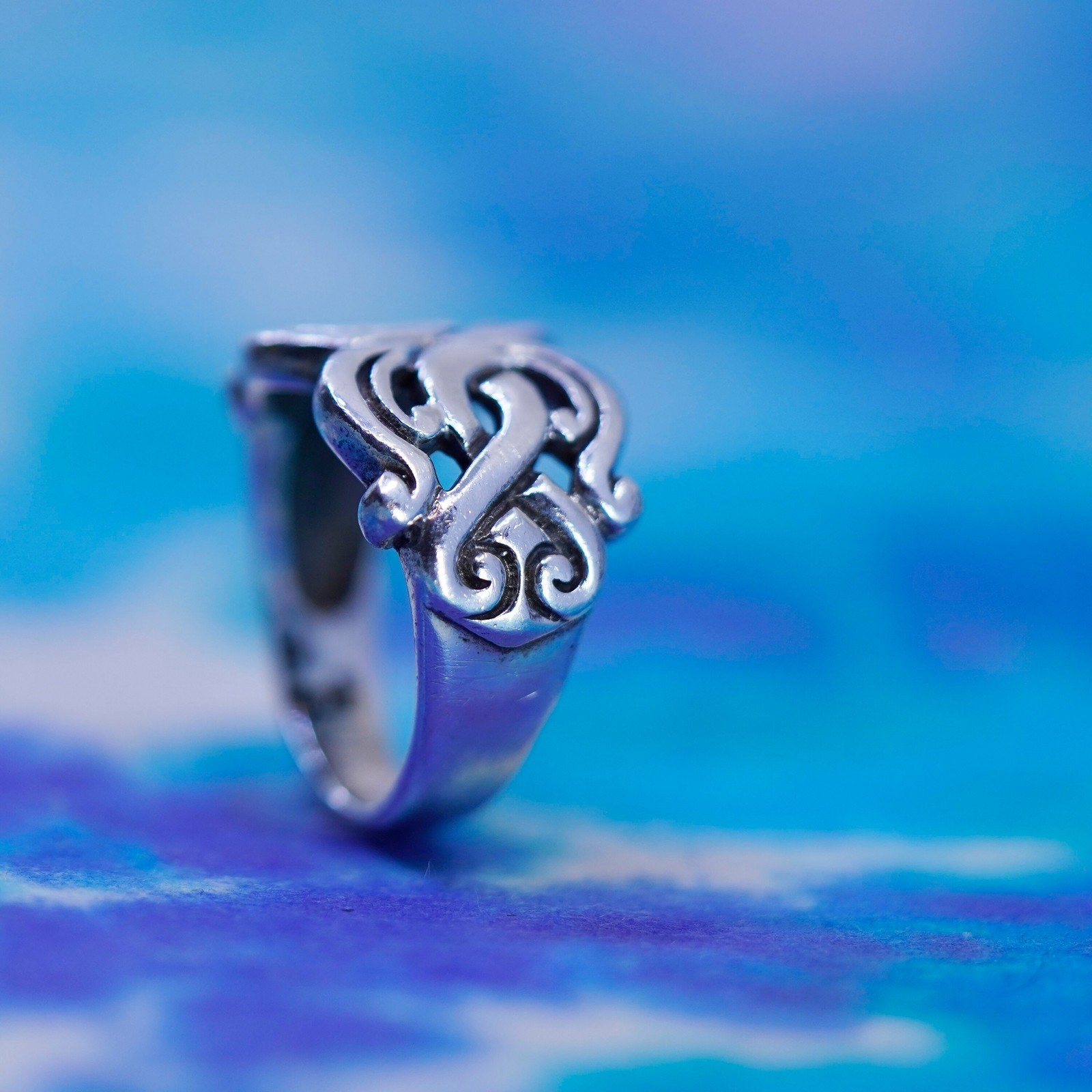 как выглядит Size 7, vintage Sterling silver handmade ring, bold 925 filigree band фото