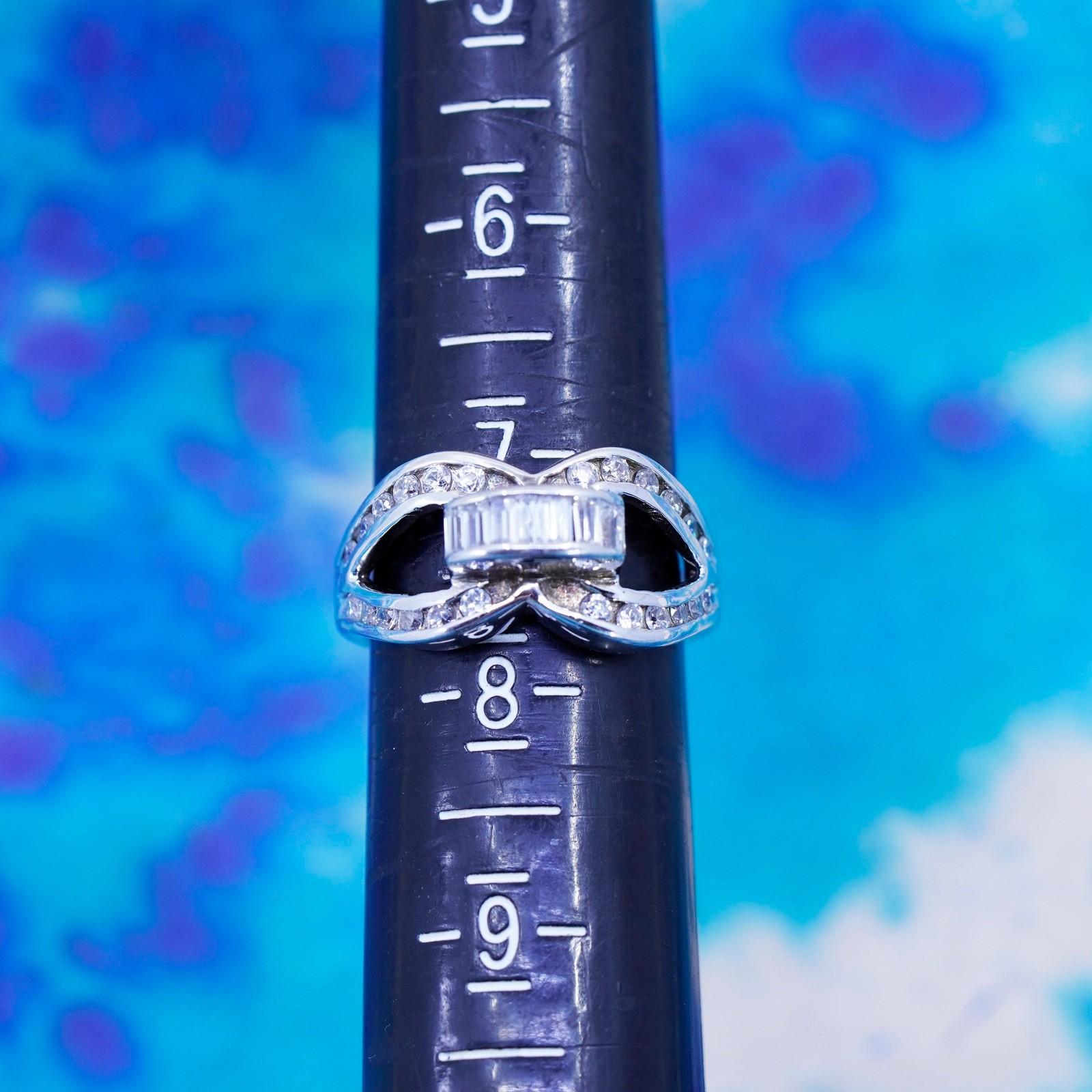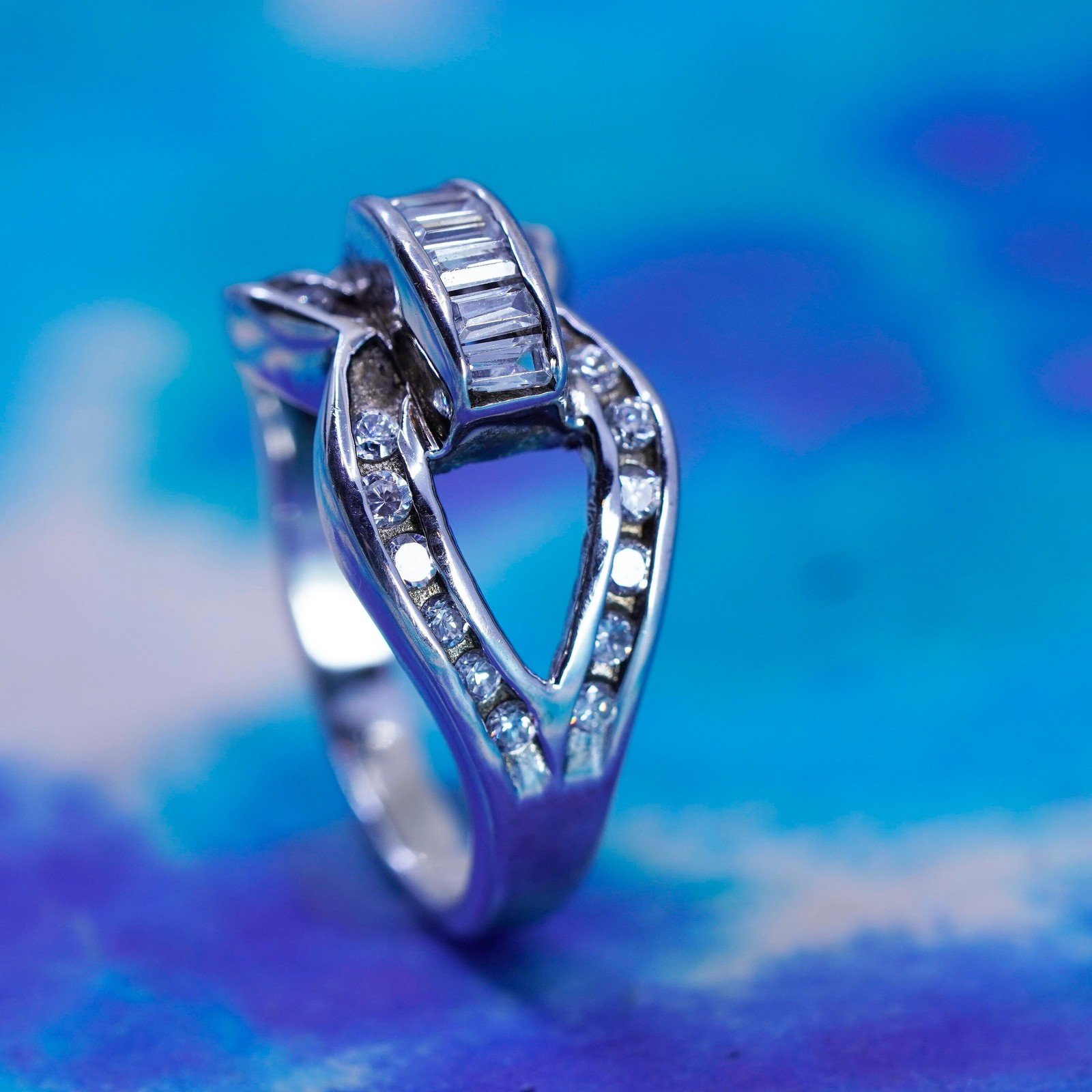 как выглядит Size 7.25, vintage Sterling 925 silver engagement ring with cluster Cz around фото