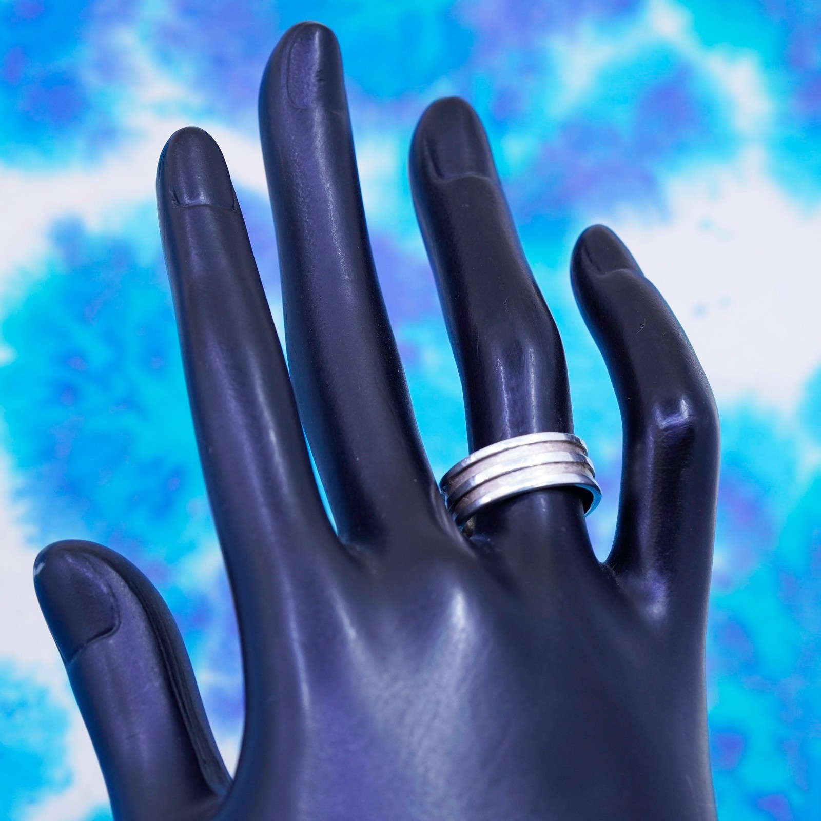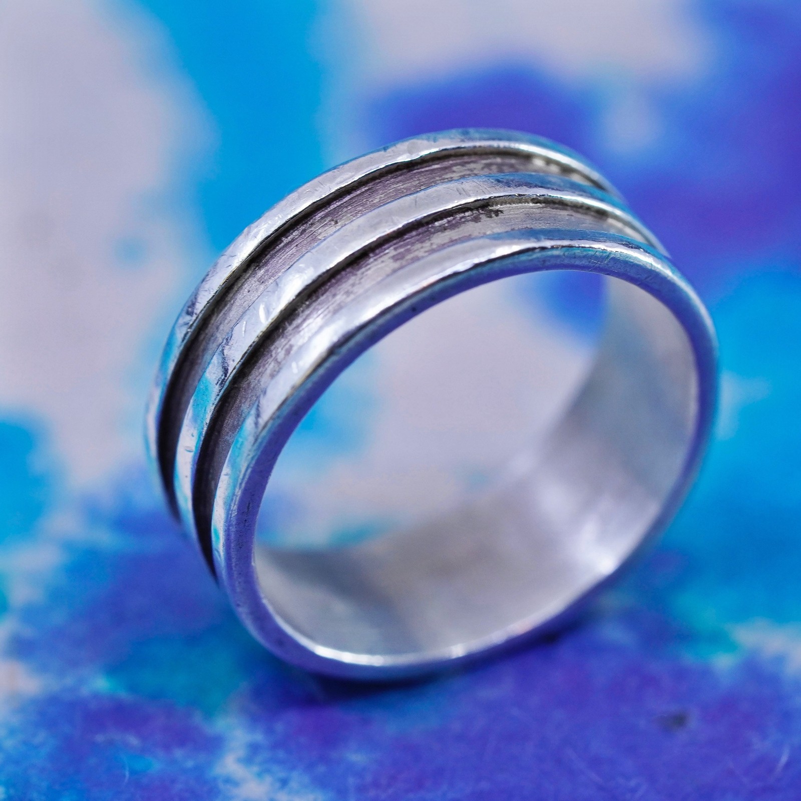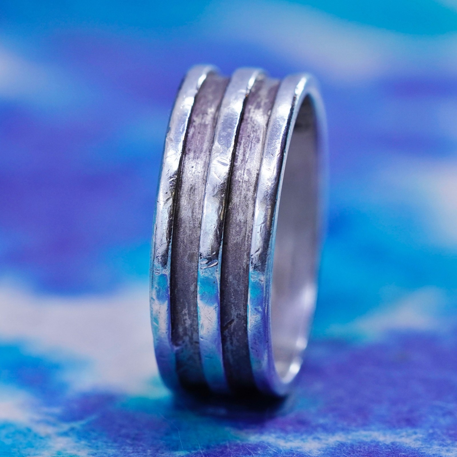 как выглядит Size 7, vintage Sterling silver handmade ribbed ring, 925 statement band фото