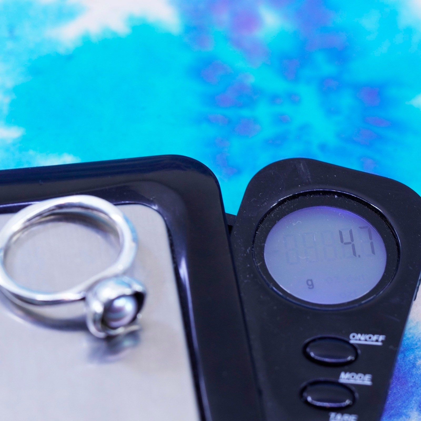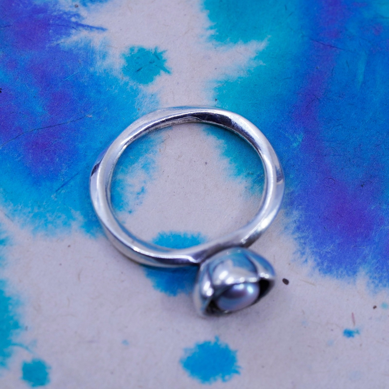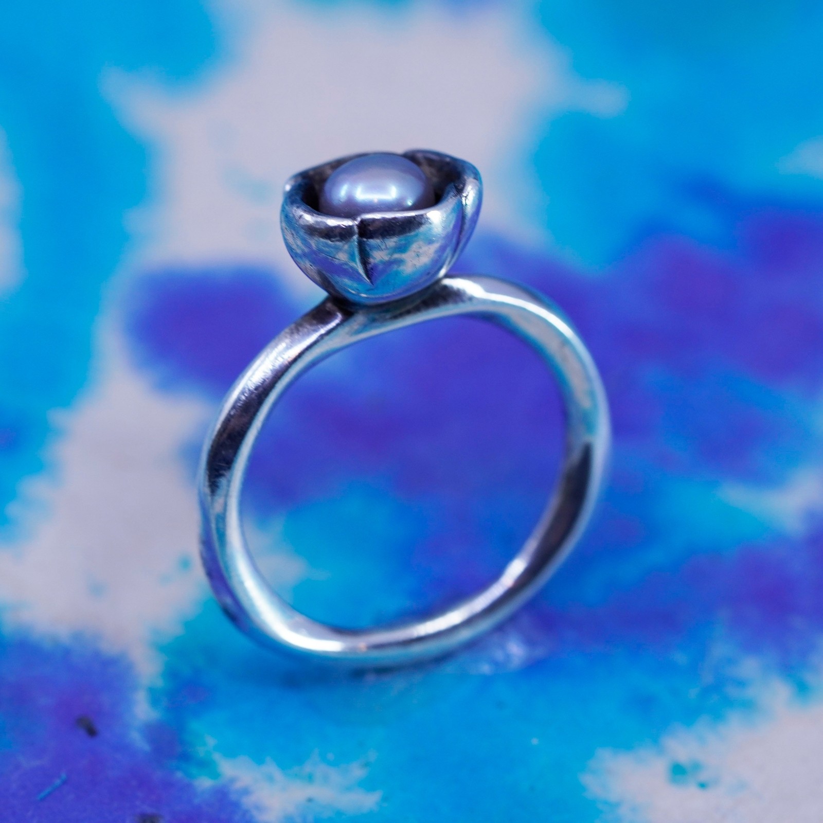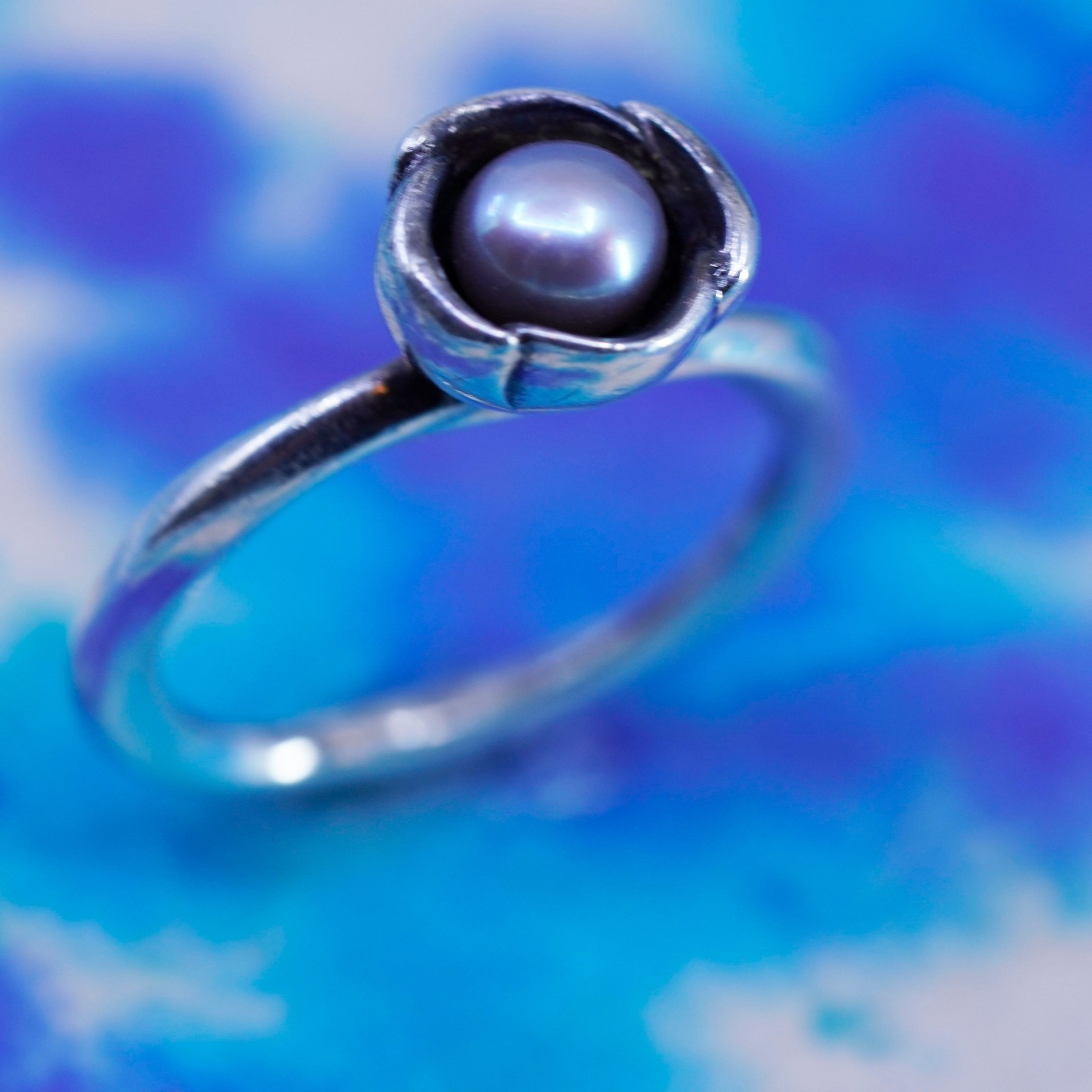 как выглядит Size 7, vintage ALE sterling silver handmade ring, 925 stackable band w/ pearl фото