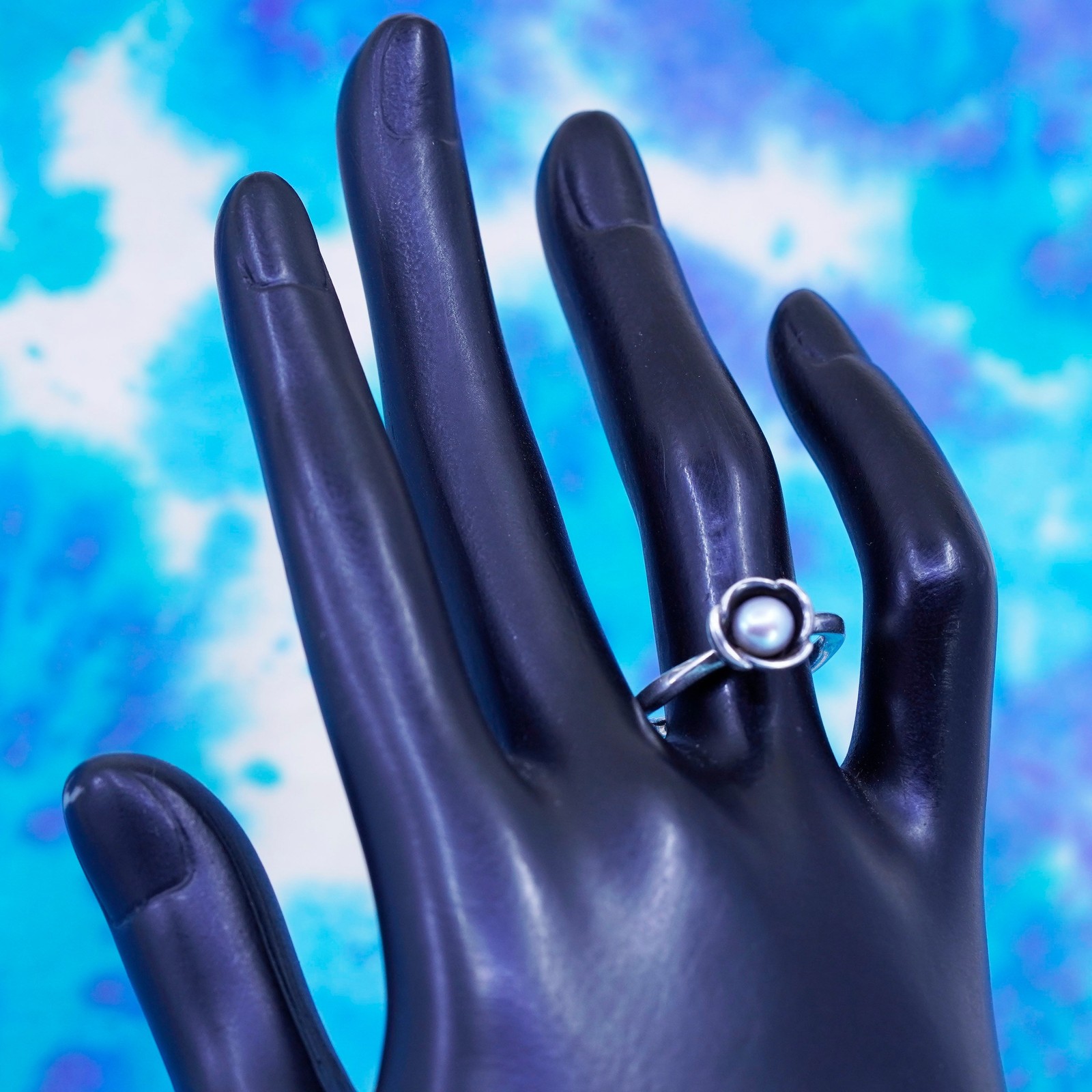 Size 7, vintage ALE sterling silver handmade ring, 925 stackable band w/ pearl