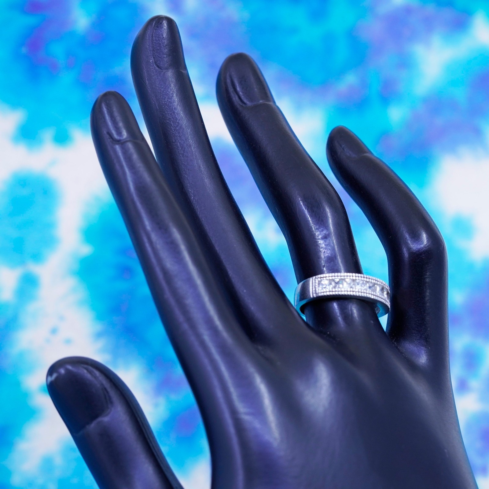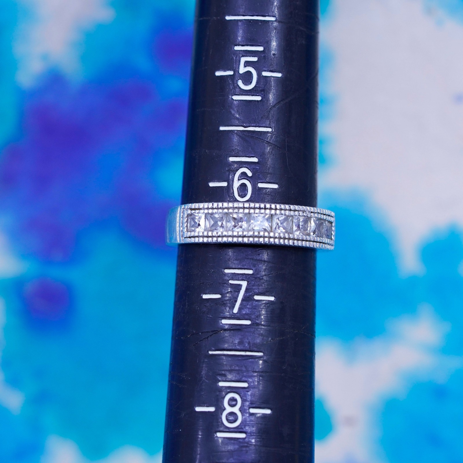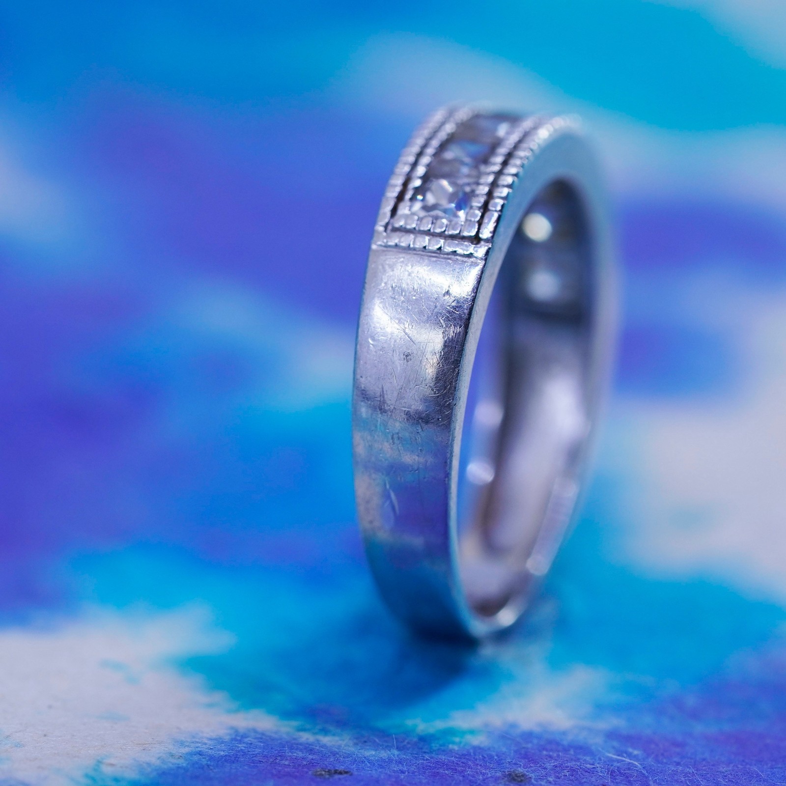 как выглядит Size 6.25, vintage Sterling silver ring, 925 stackable band with clear cz фото