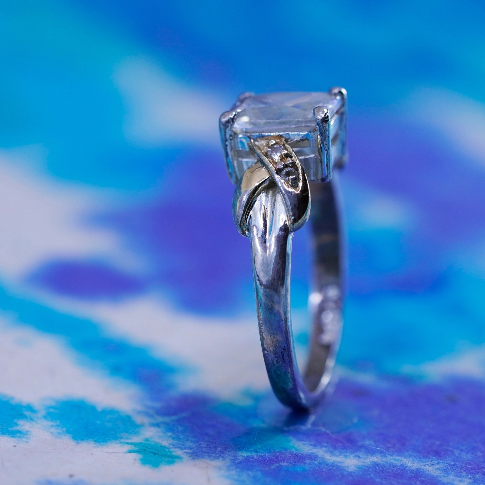 Size 7.25, vintage Sterling 925 silver engagement ring with cz