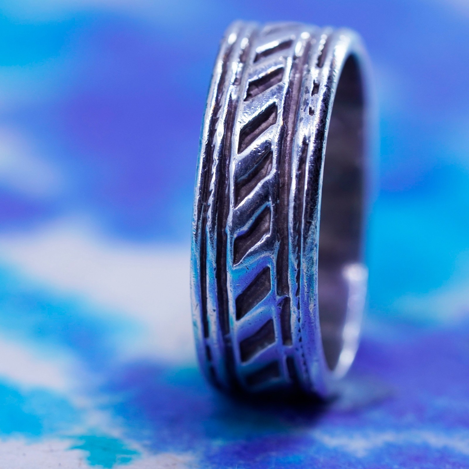как выглядит Size 8, vintage Sterling silver handmade stackable ring, 925 wedding band фото