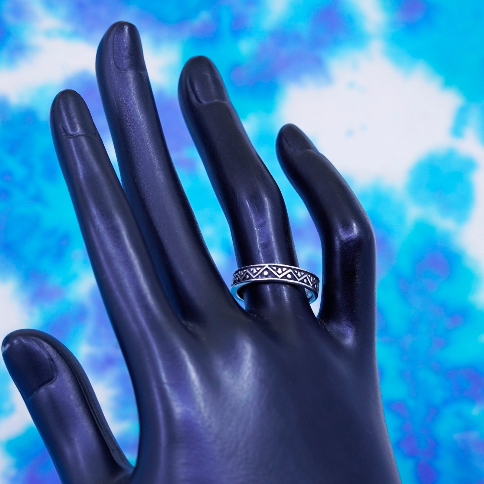 как выглядит Size 7, vintage Sterling silver ring, southwestern textured 925 stackable band фото
