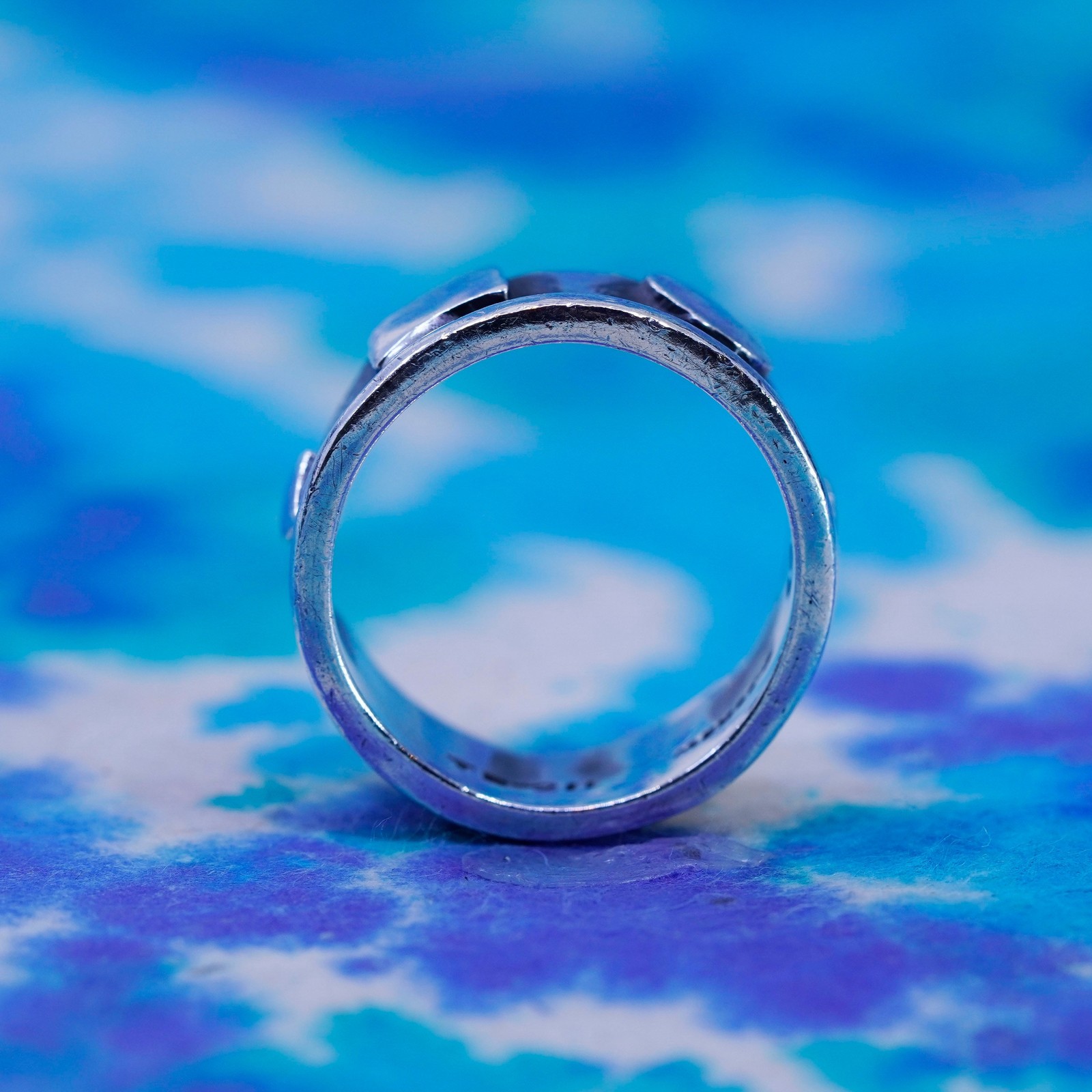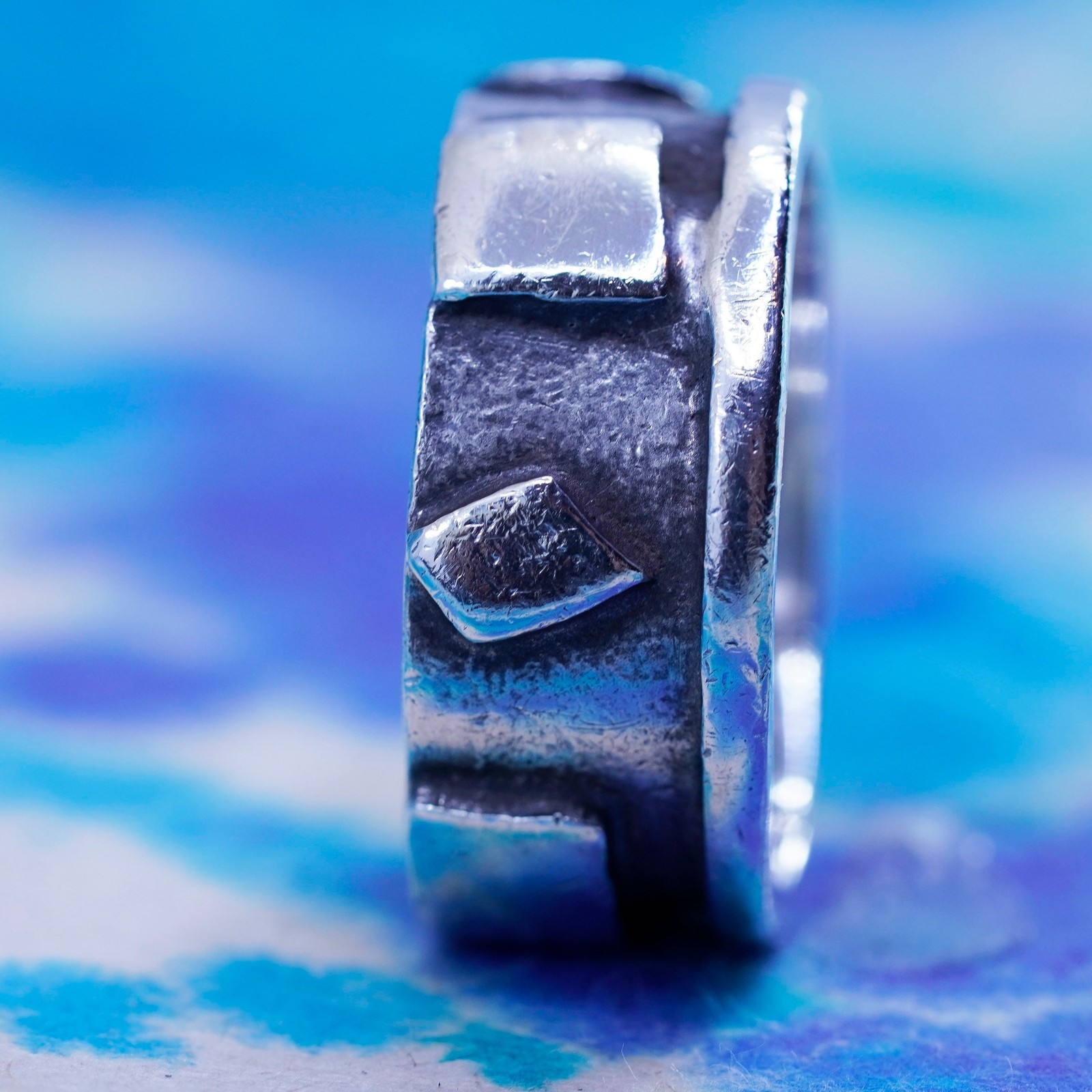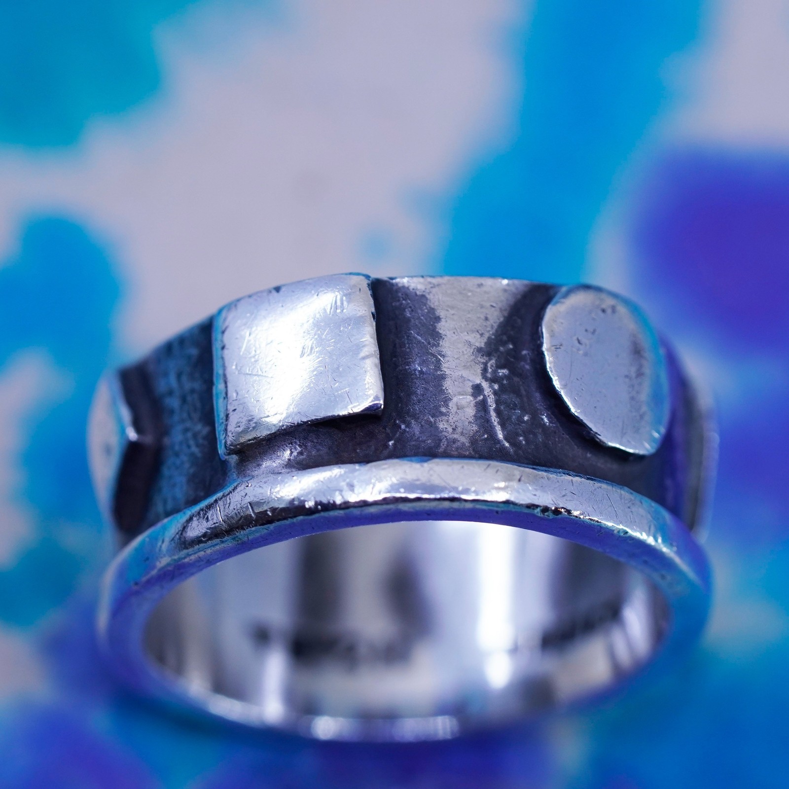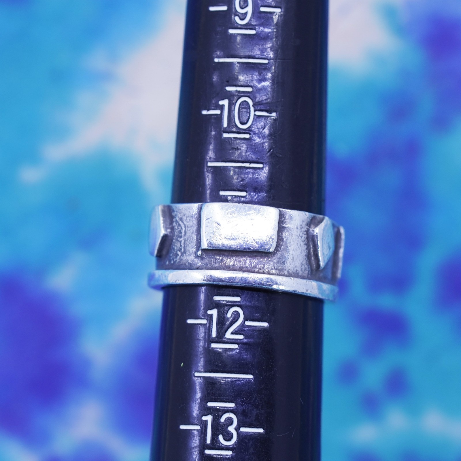 как выглядит Size 10.75, vintage Sterling silver handmade ribbed ring, 925 statement band фото
