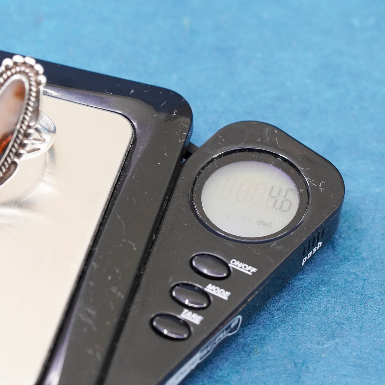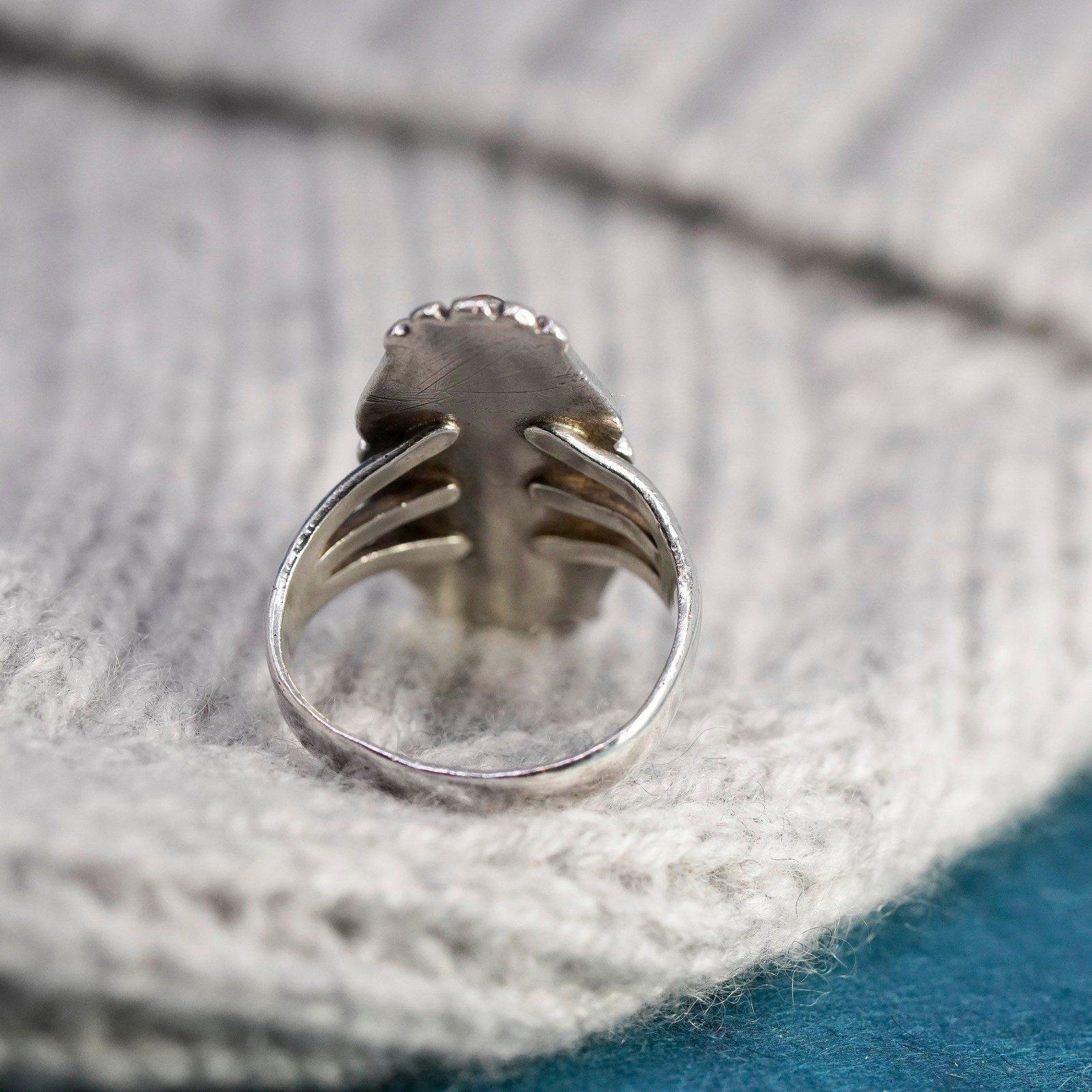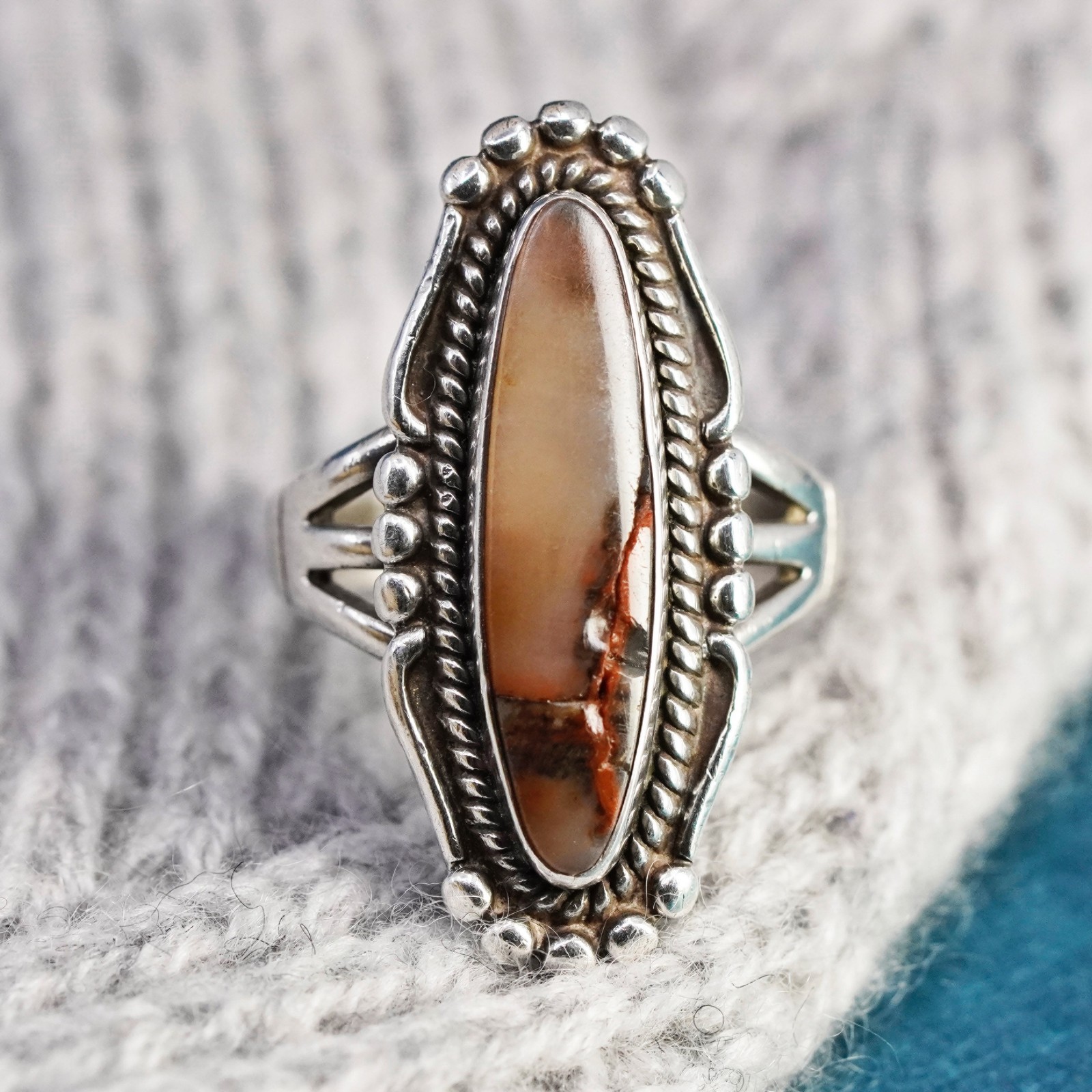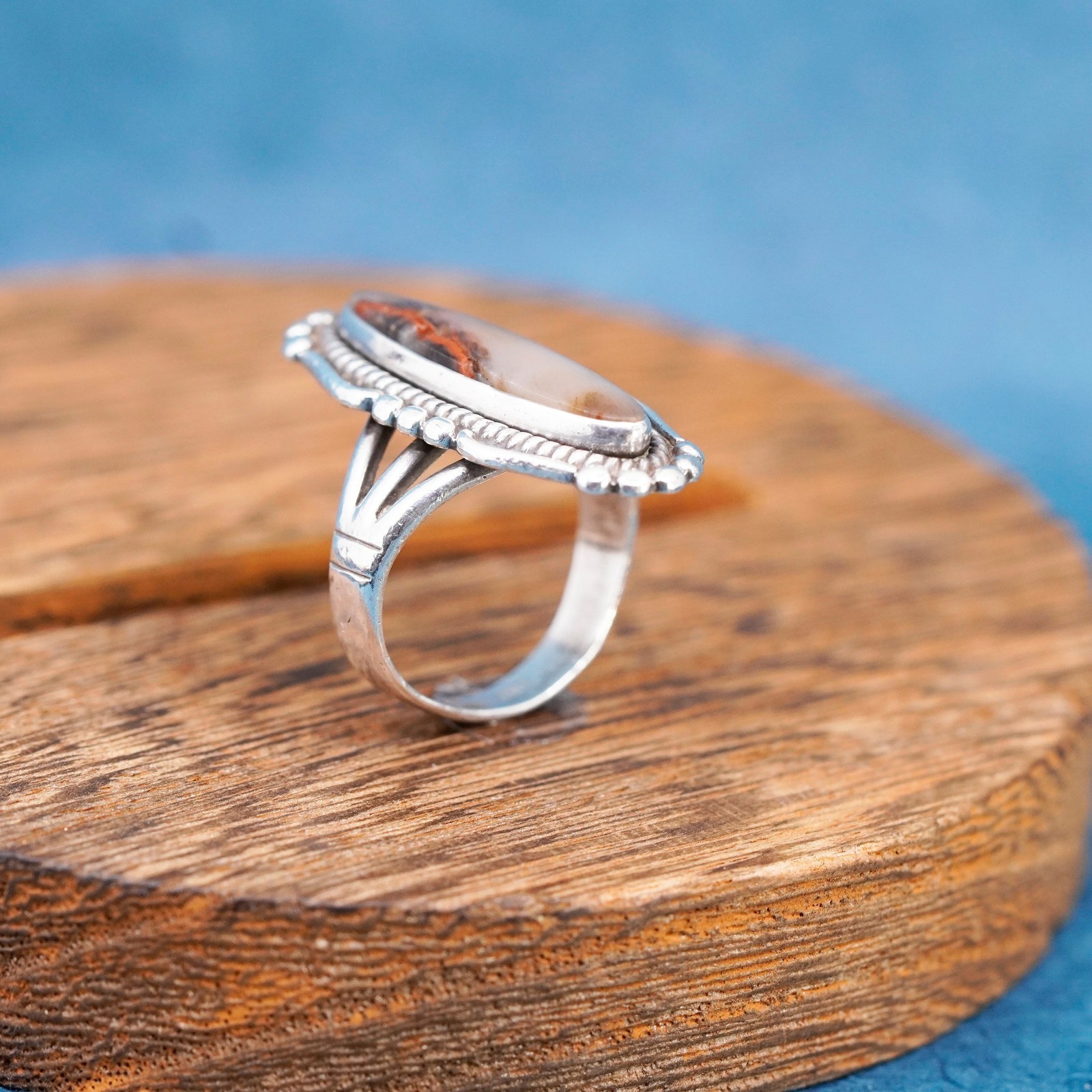 Size 7.25, vintage Sterling 925 silver handmade ring w/ lace agate beads Around