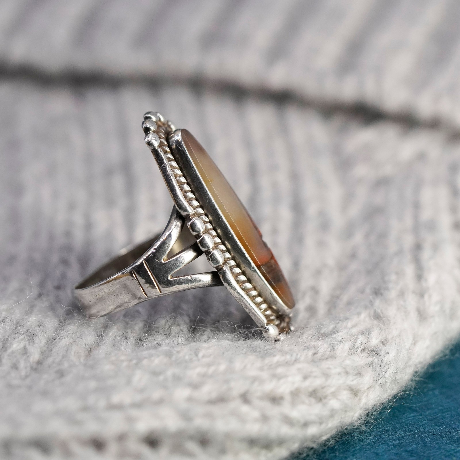 как выглядит Size 7.25, vintage Sterling 925 silver handmade ring w/ lace agate beads Around фото