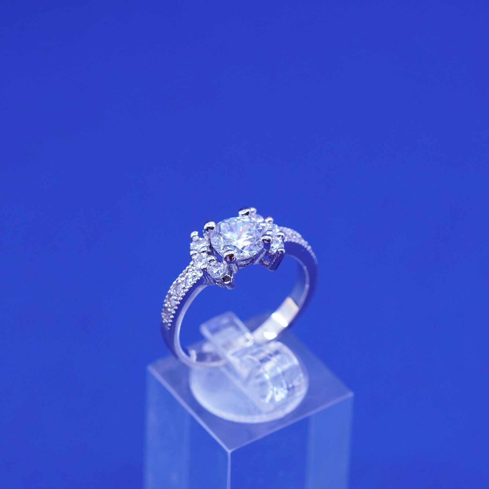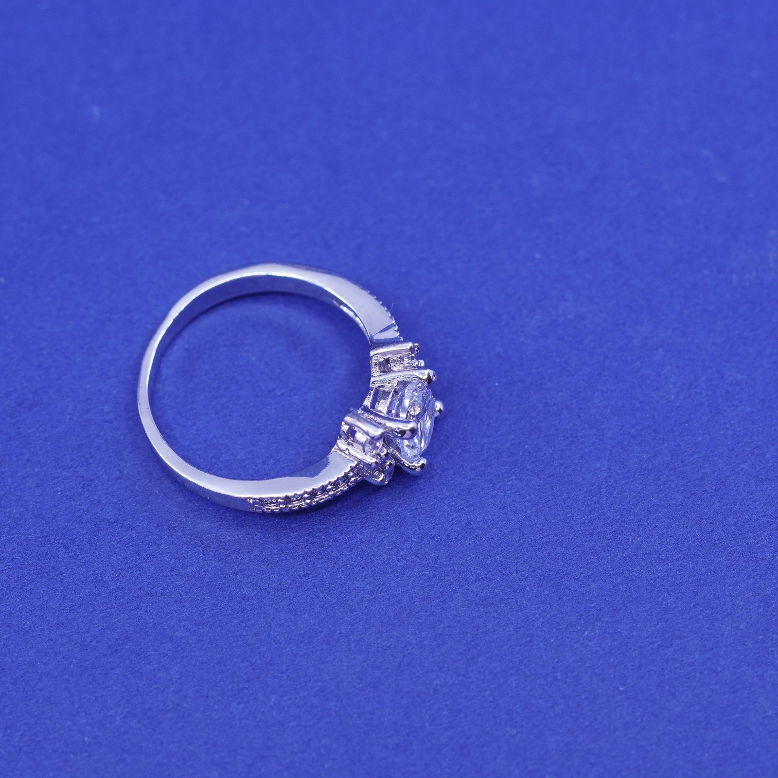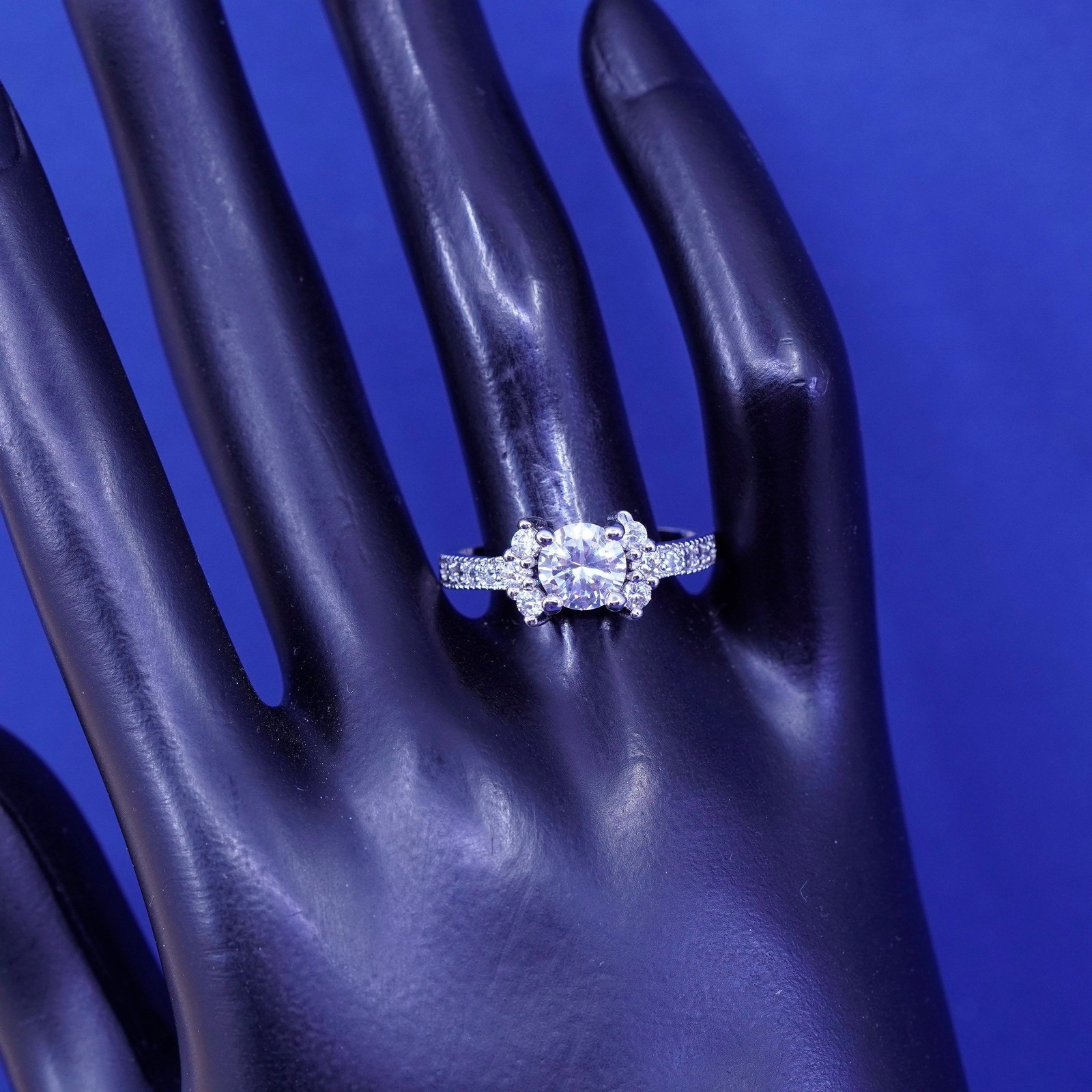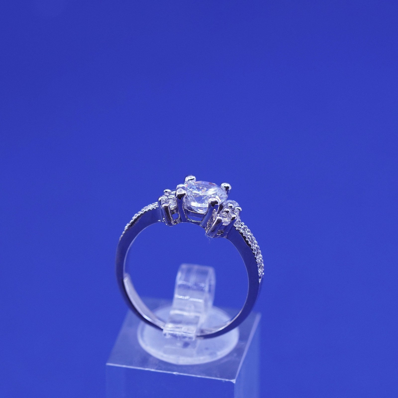 как выглядит Size 9.25, vintage Sterling 925 silver engagement ring with clear cz stones фото
