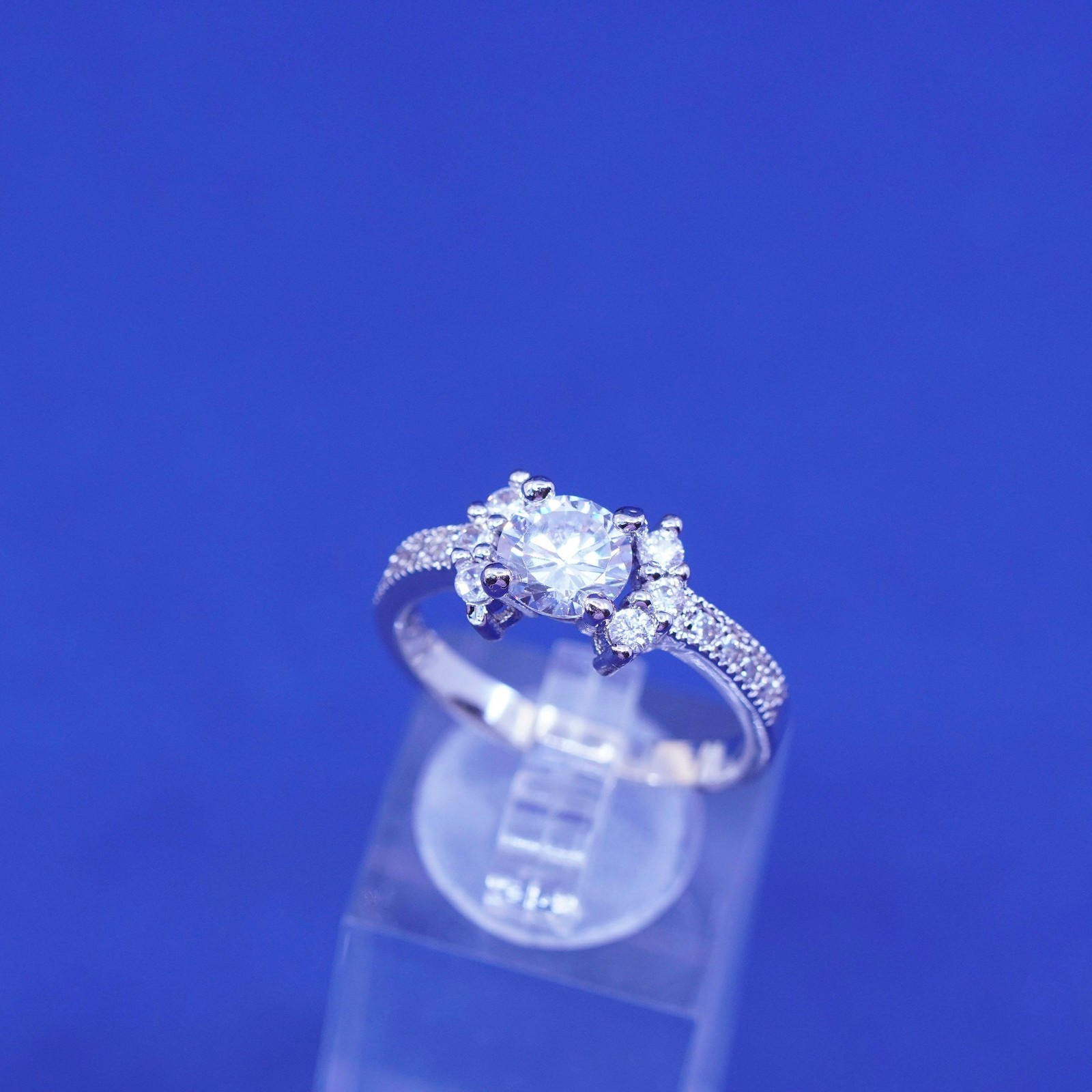 Size 9.25, vintage Sterling 925 silver engagement ring with clear cz stones