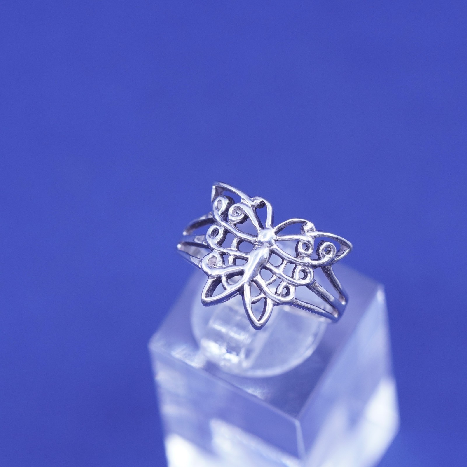 как выглядит Size 7, vintage Sterling silver handmade ring, 925 filigree butterfly ring фото