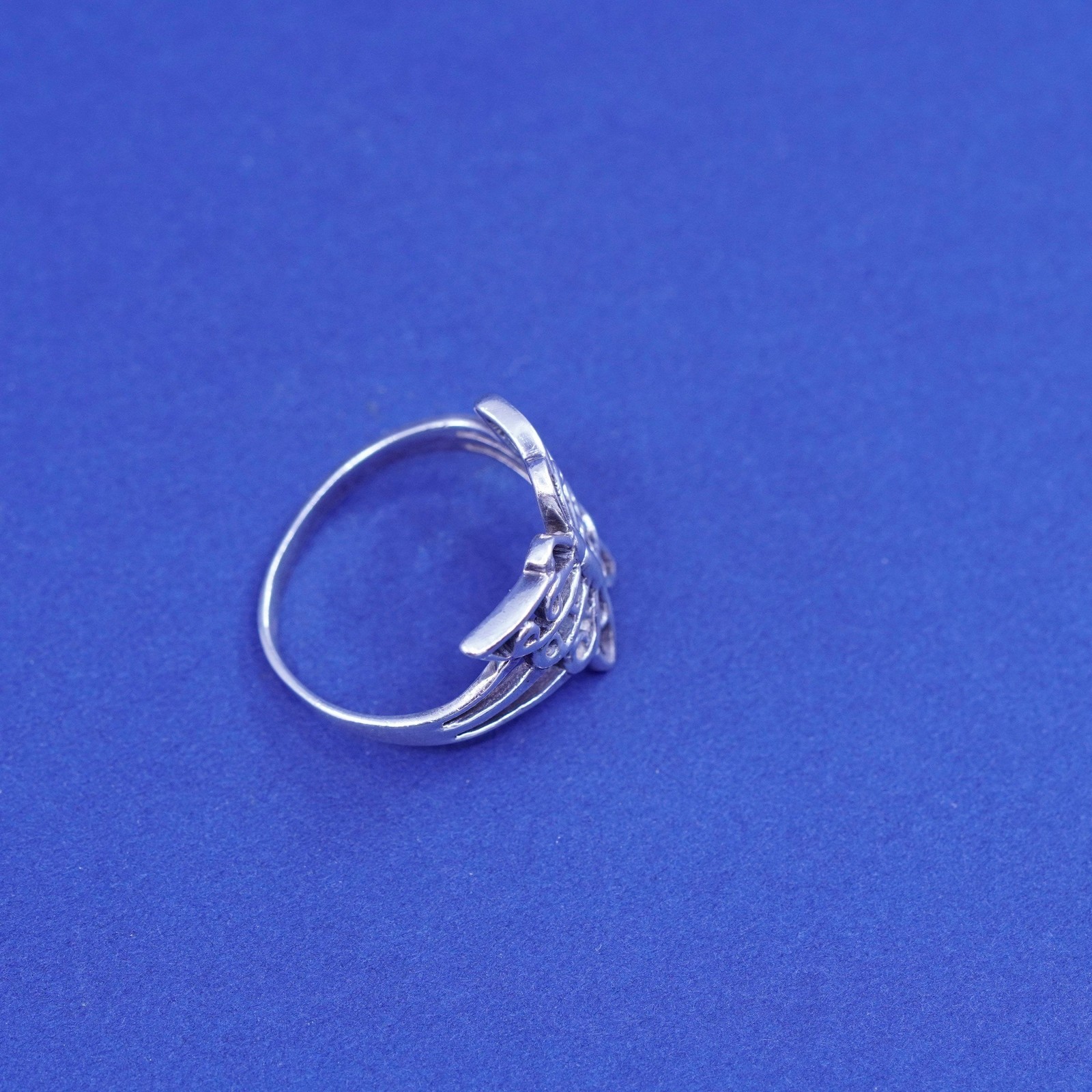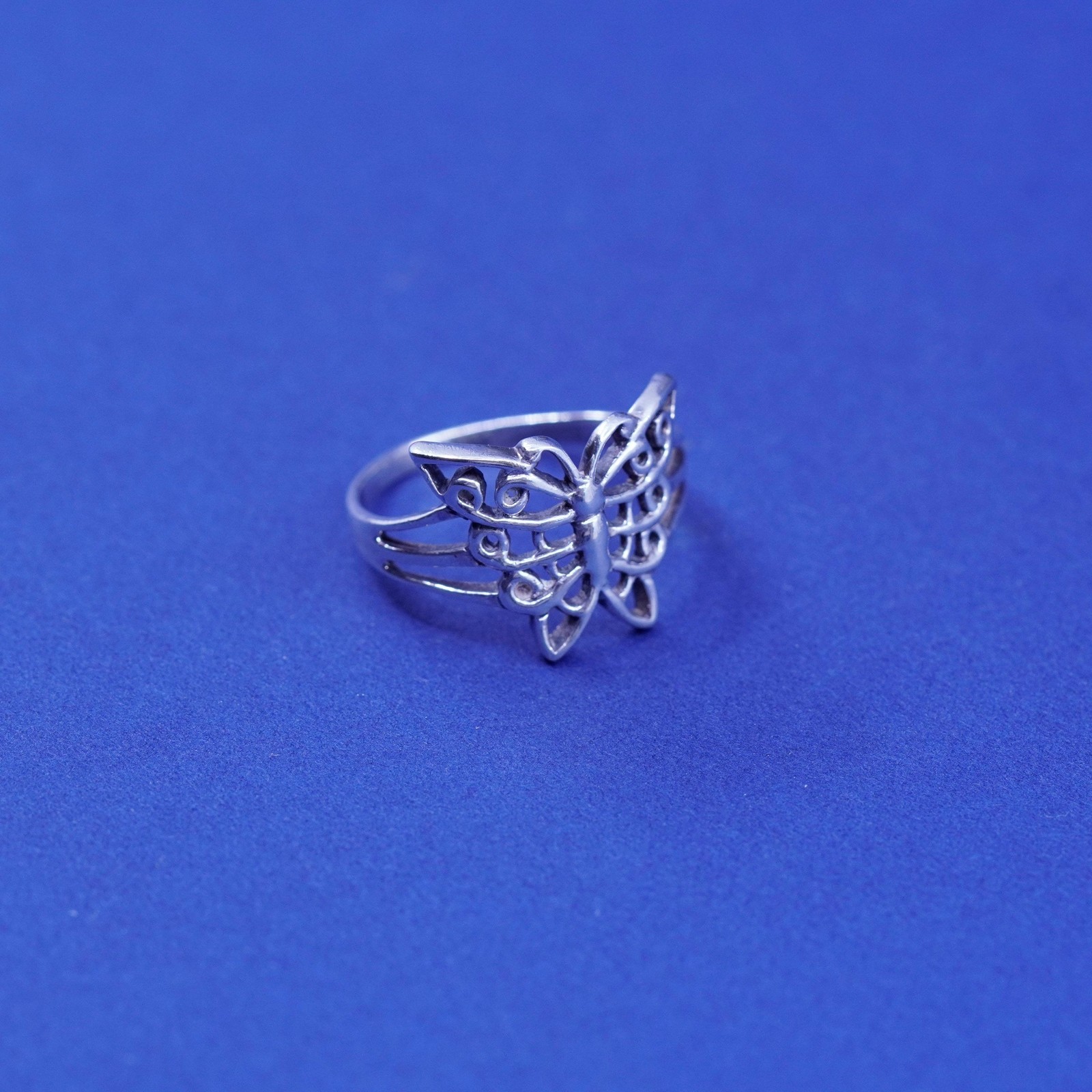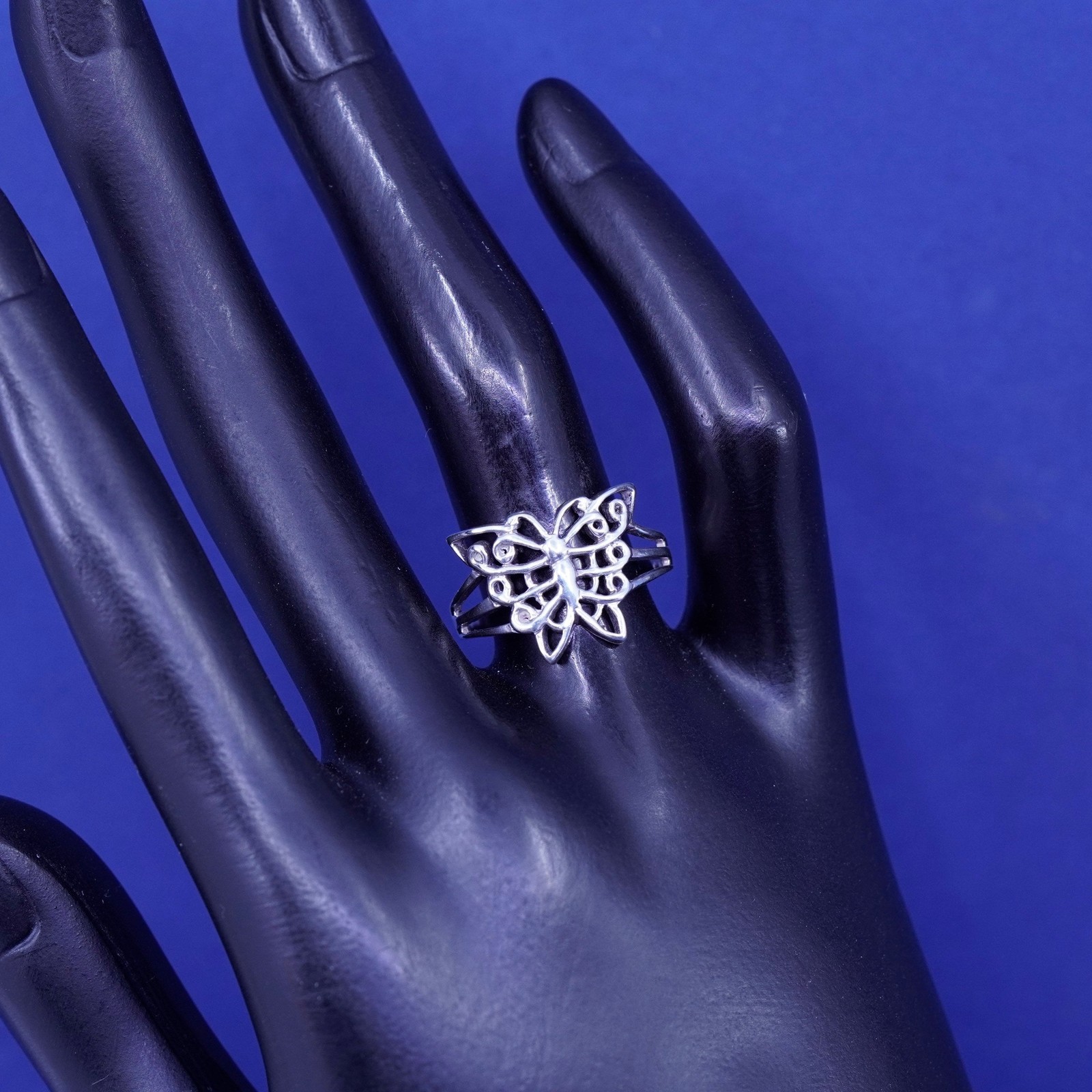 Size 7, vintage Sterling silver handmade ring, 925 filigree butterfly ring