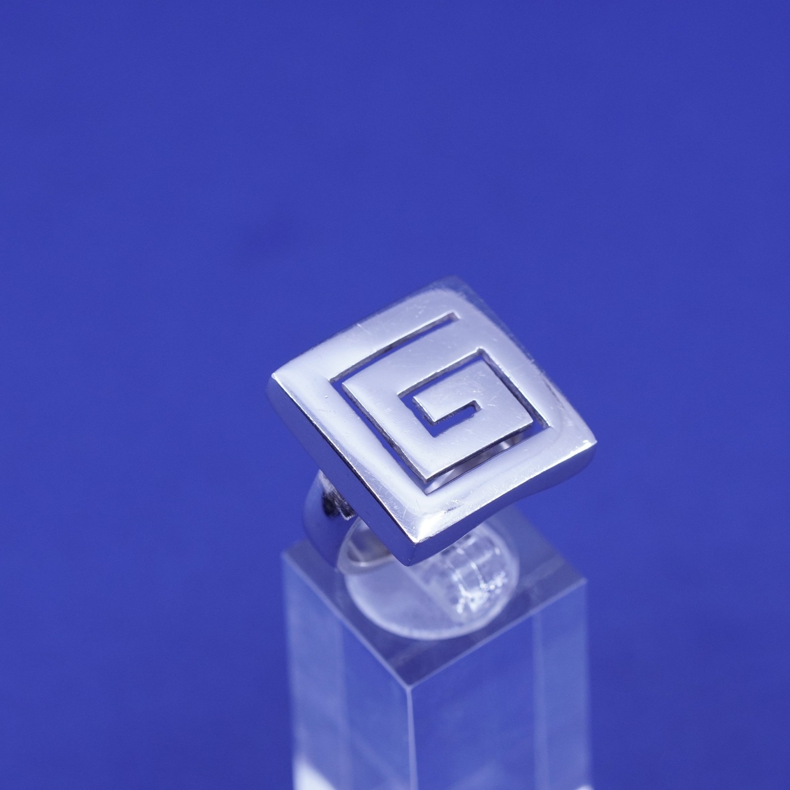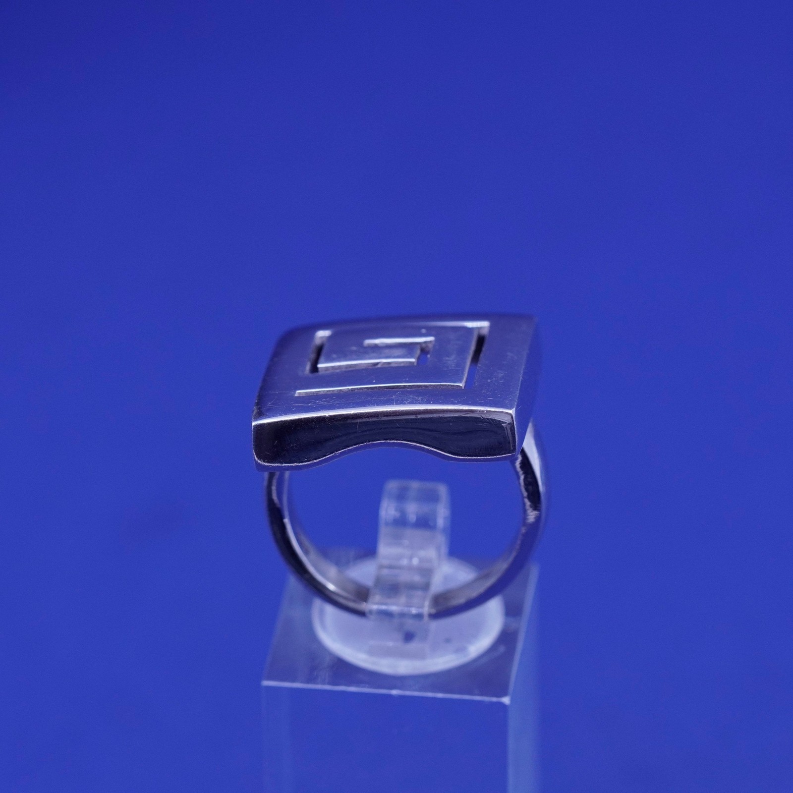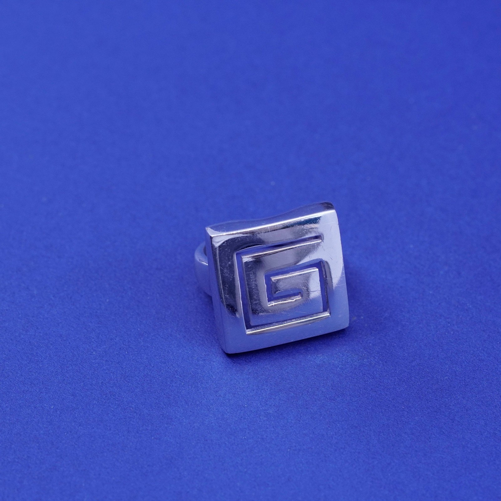 sz 7.75, vintage Sterling 925 silver handmade ring statement band w/ Greek key