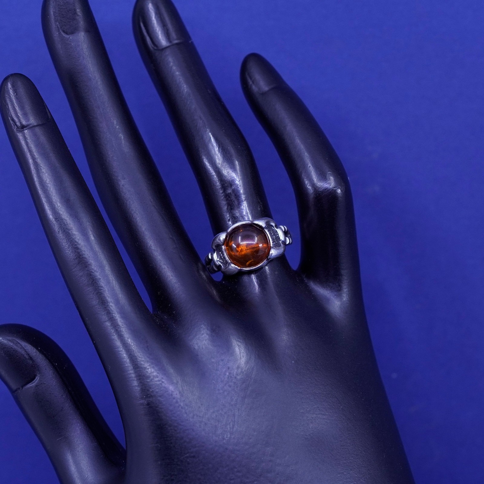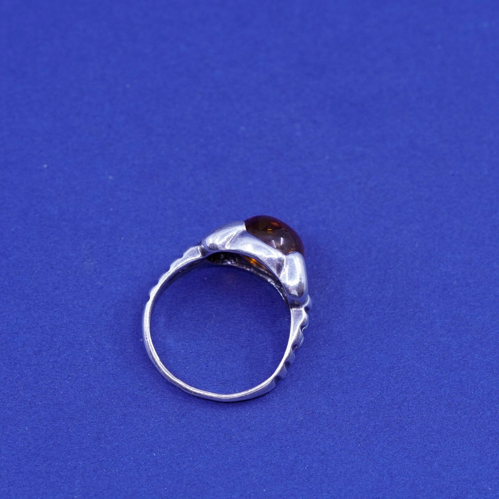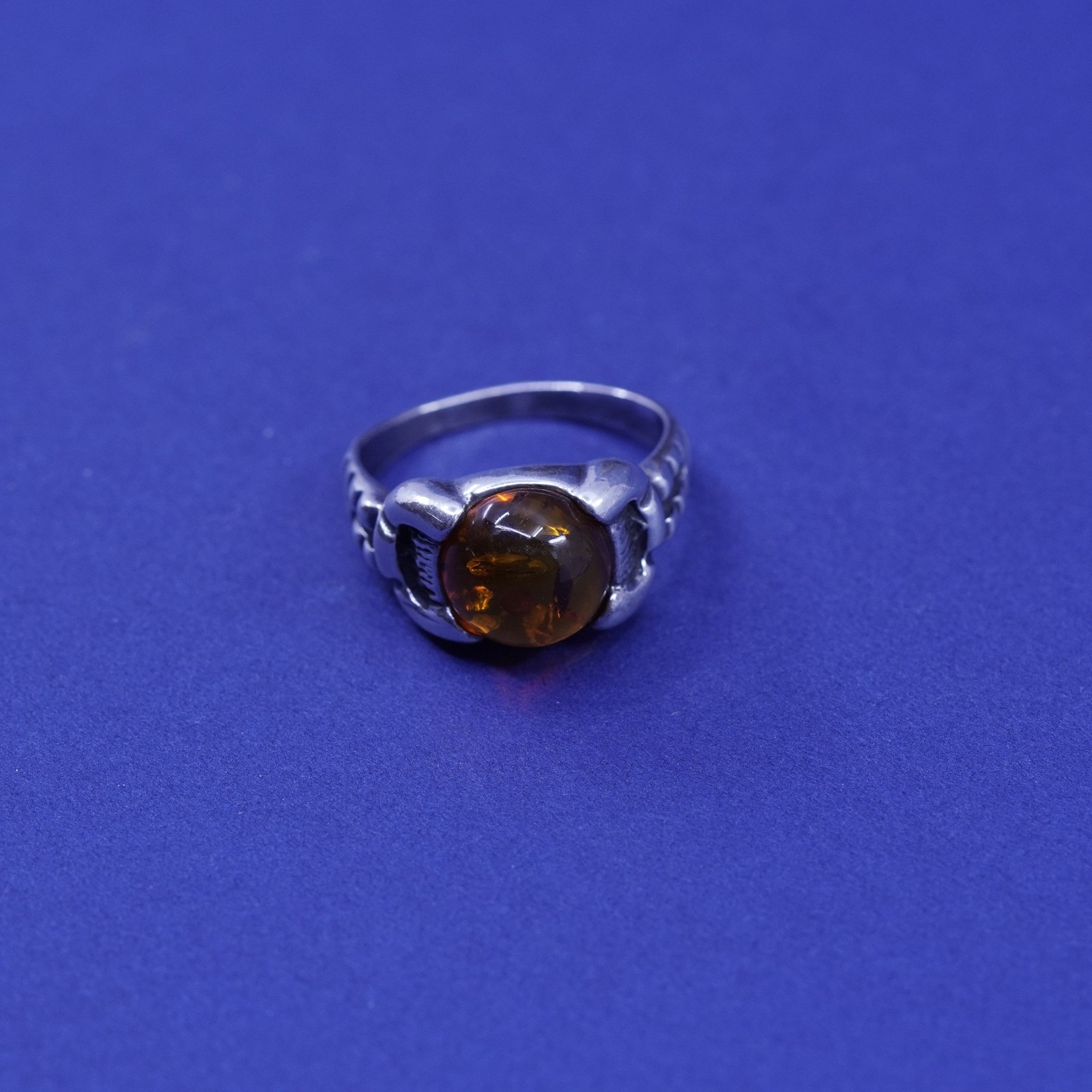 Size 7.5, vintage sterling 925 silver handmade ring with round Amber
