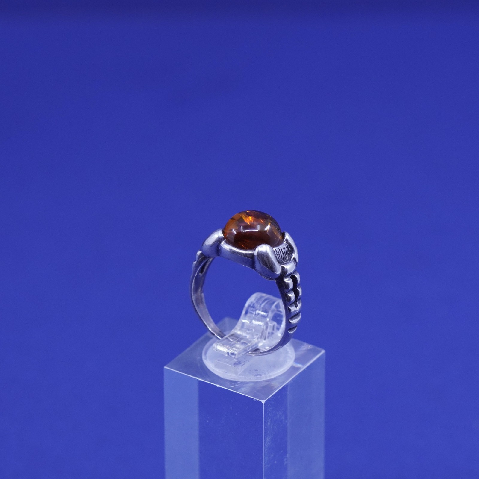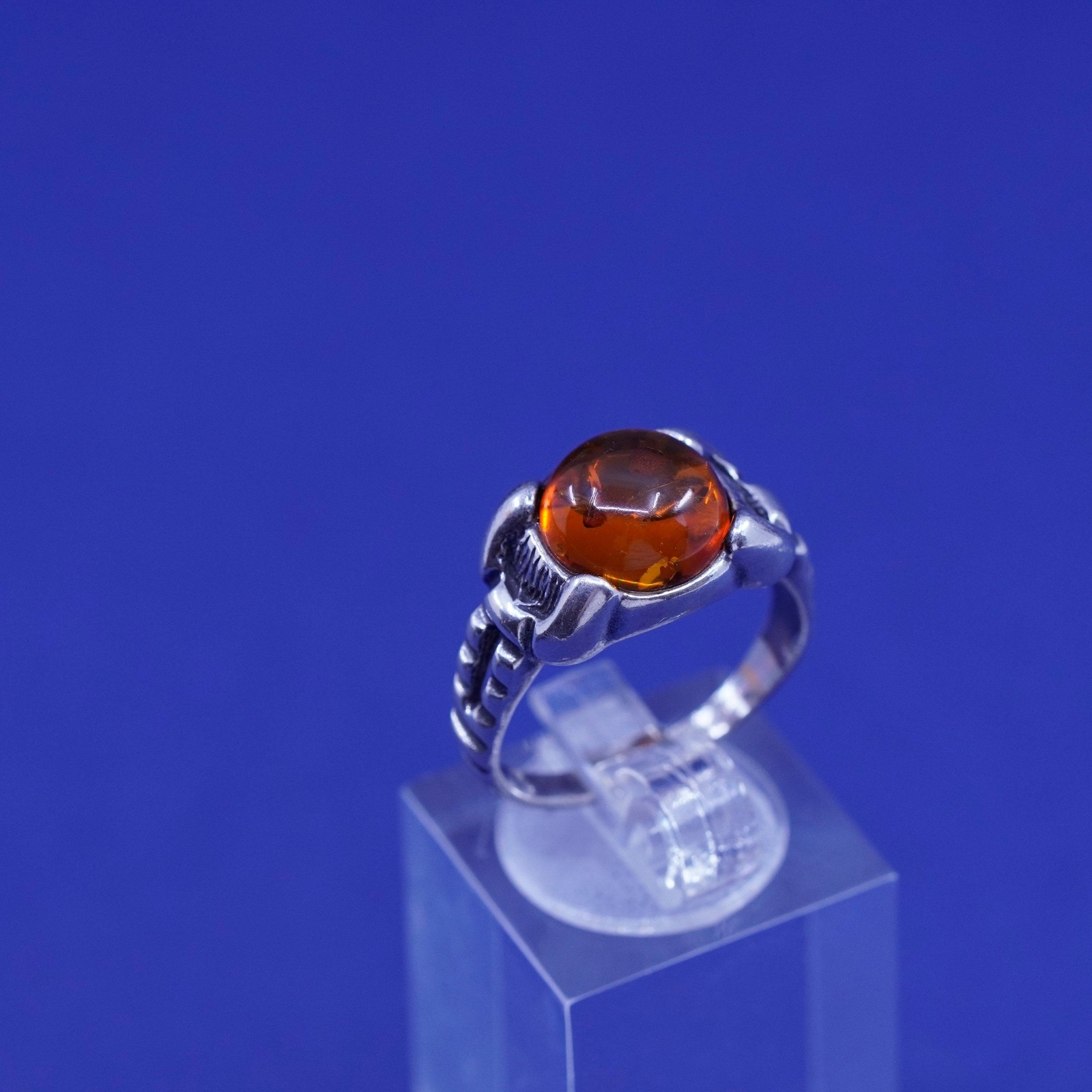 как выглядит Size 7.5, vintage sterling 925 silver handmade ring with round Amber фото