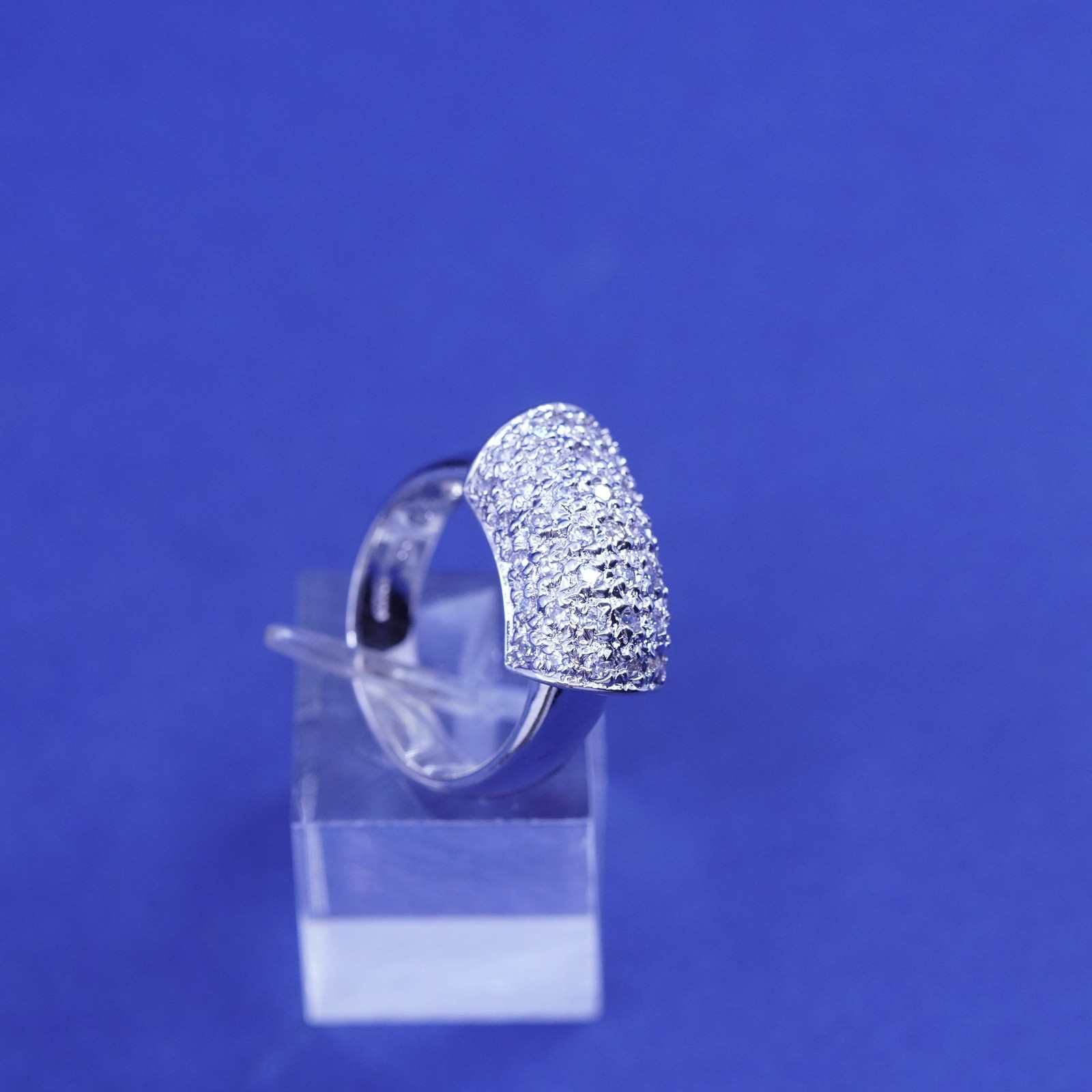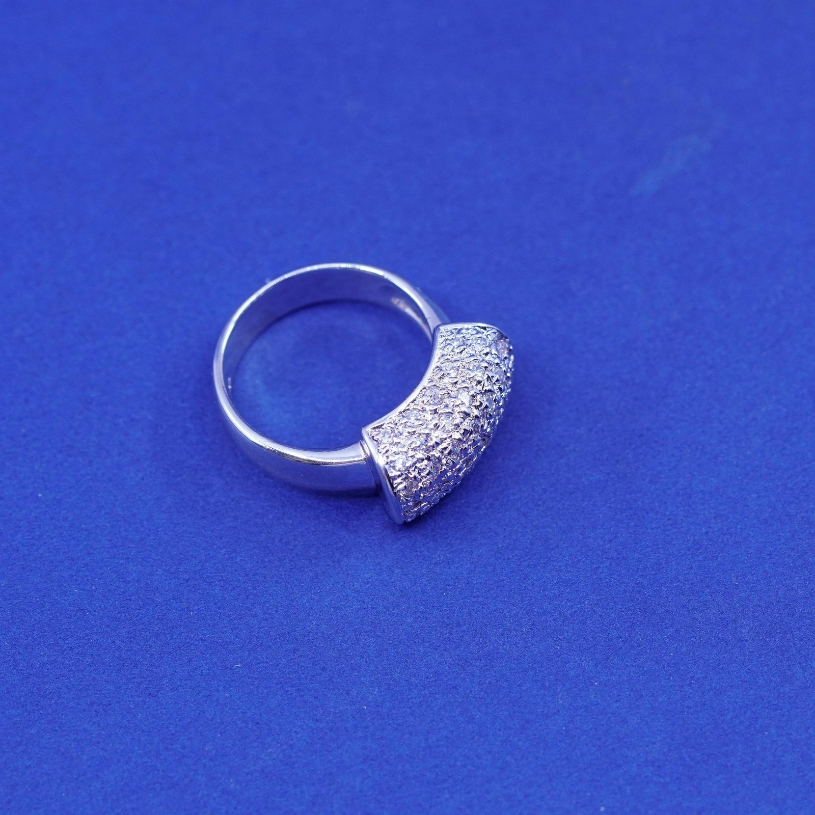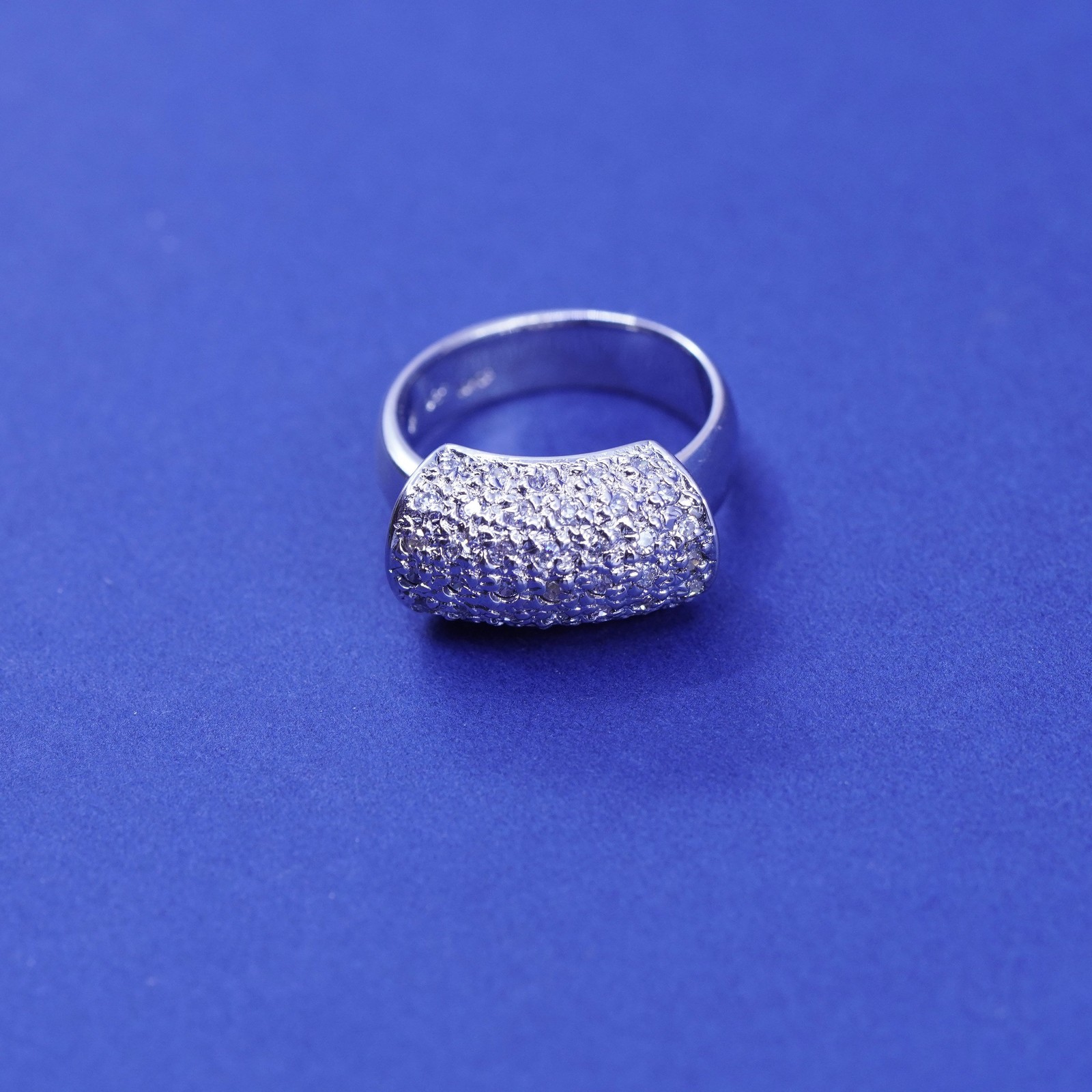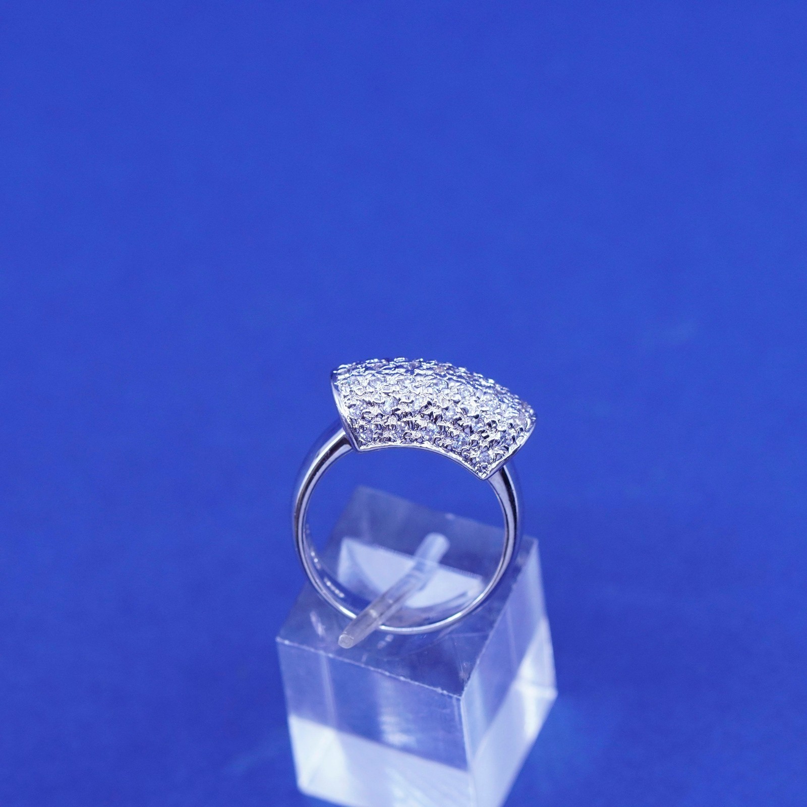 Size 7, vintage sterling silver ring with cluster Cz, statement band