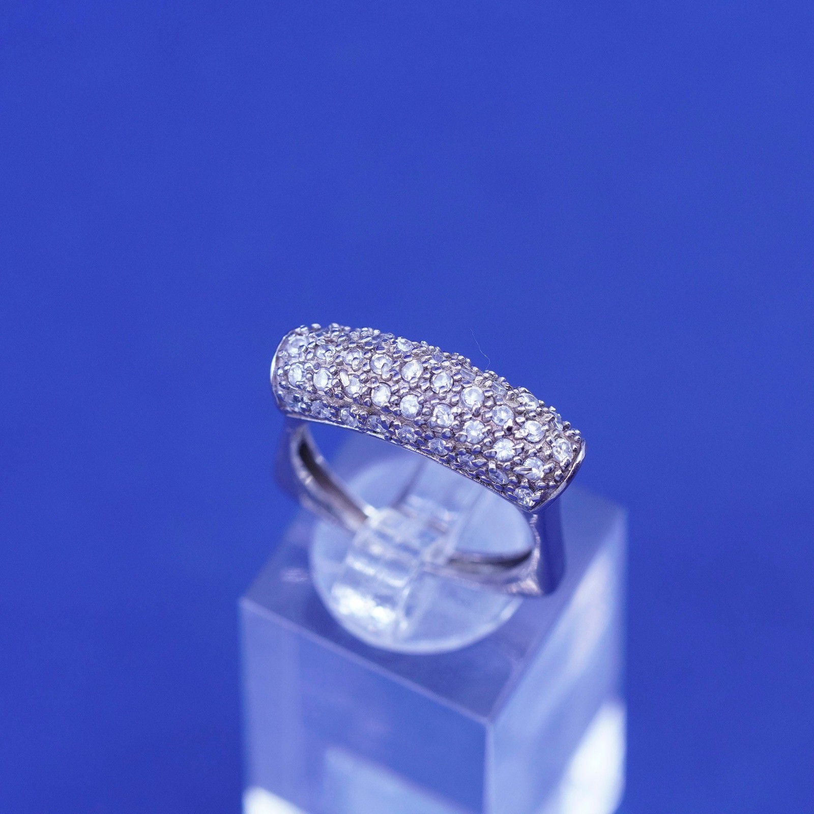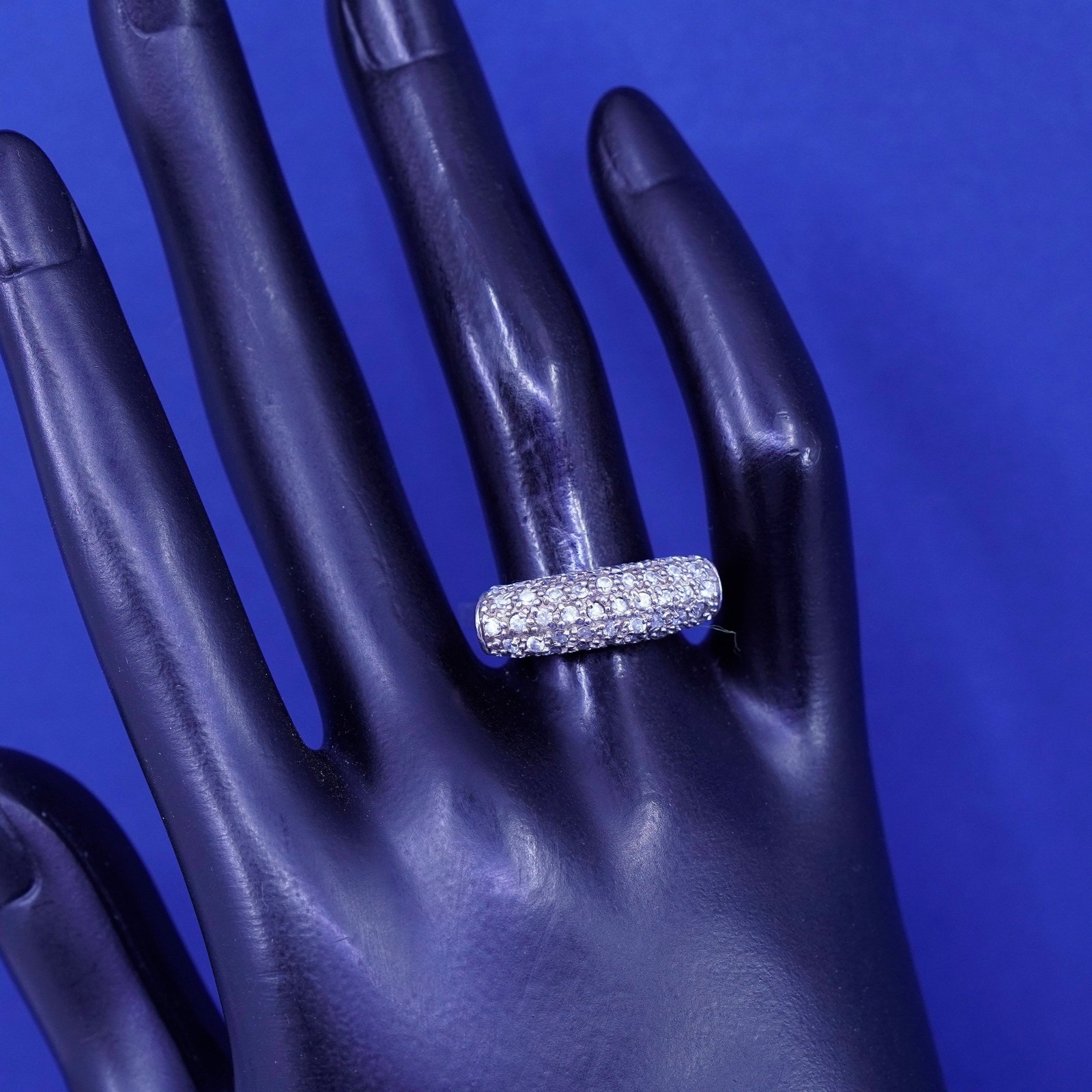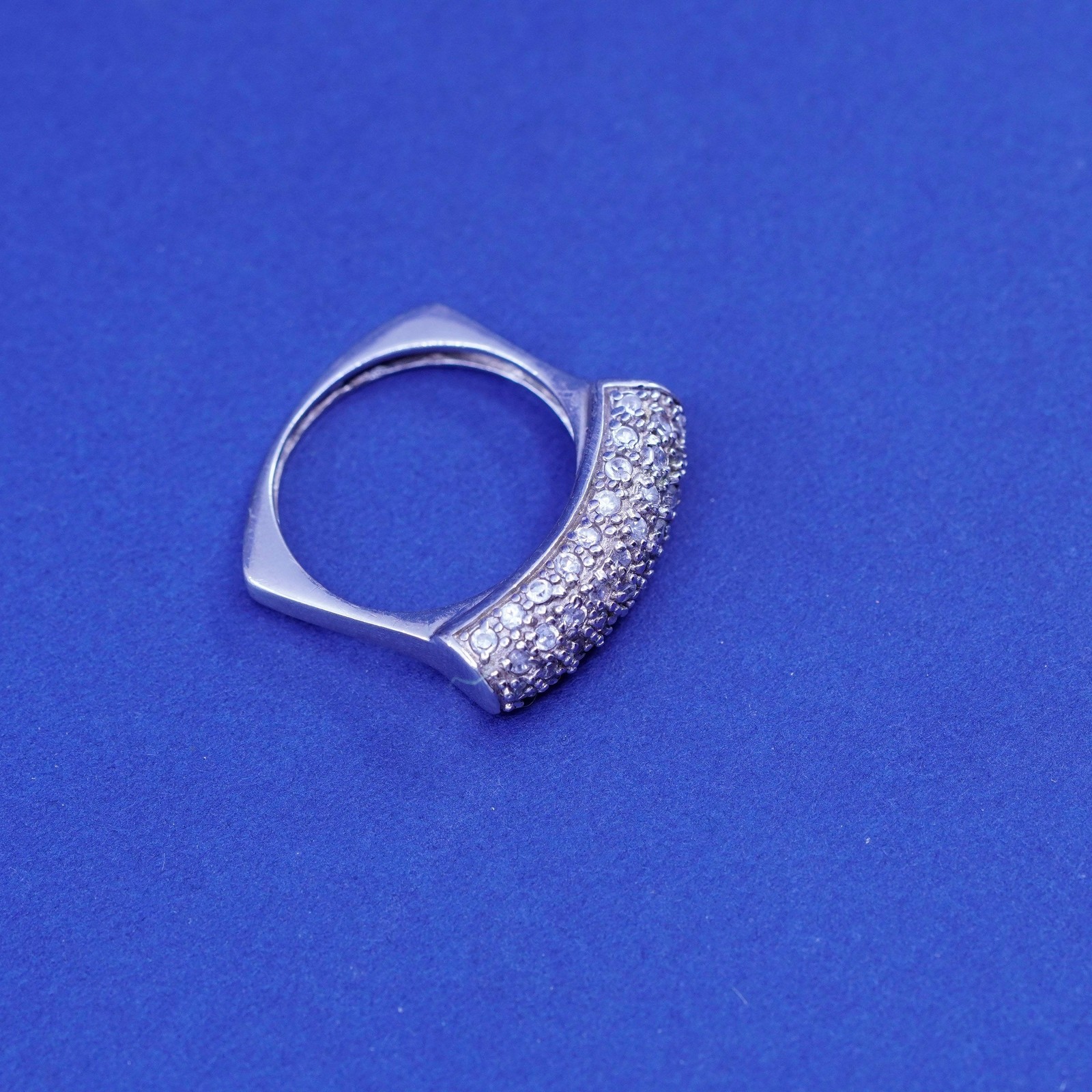 Size 7.75, vintage sterling silver ring with cluster Cz, statement band