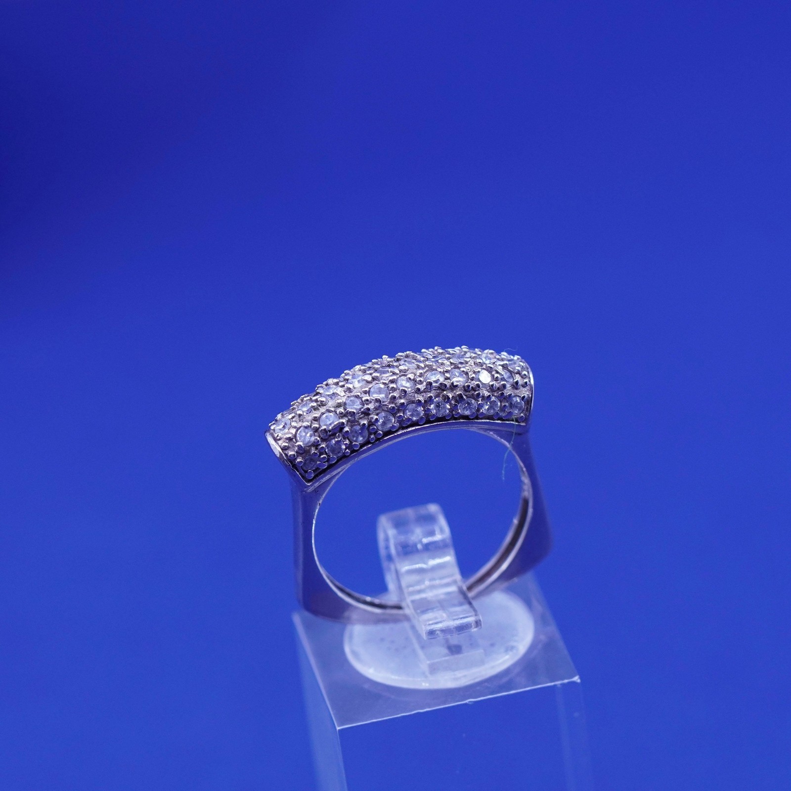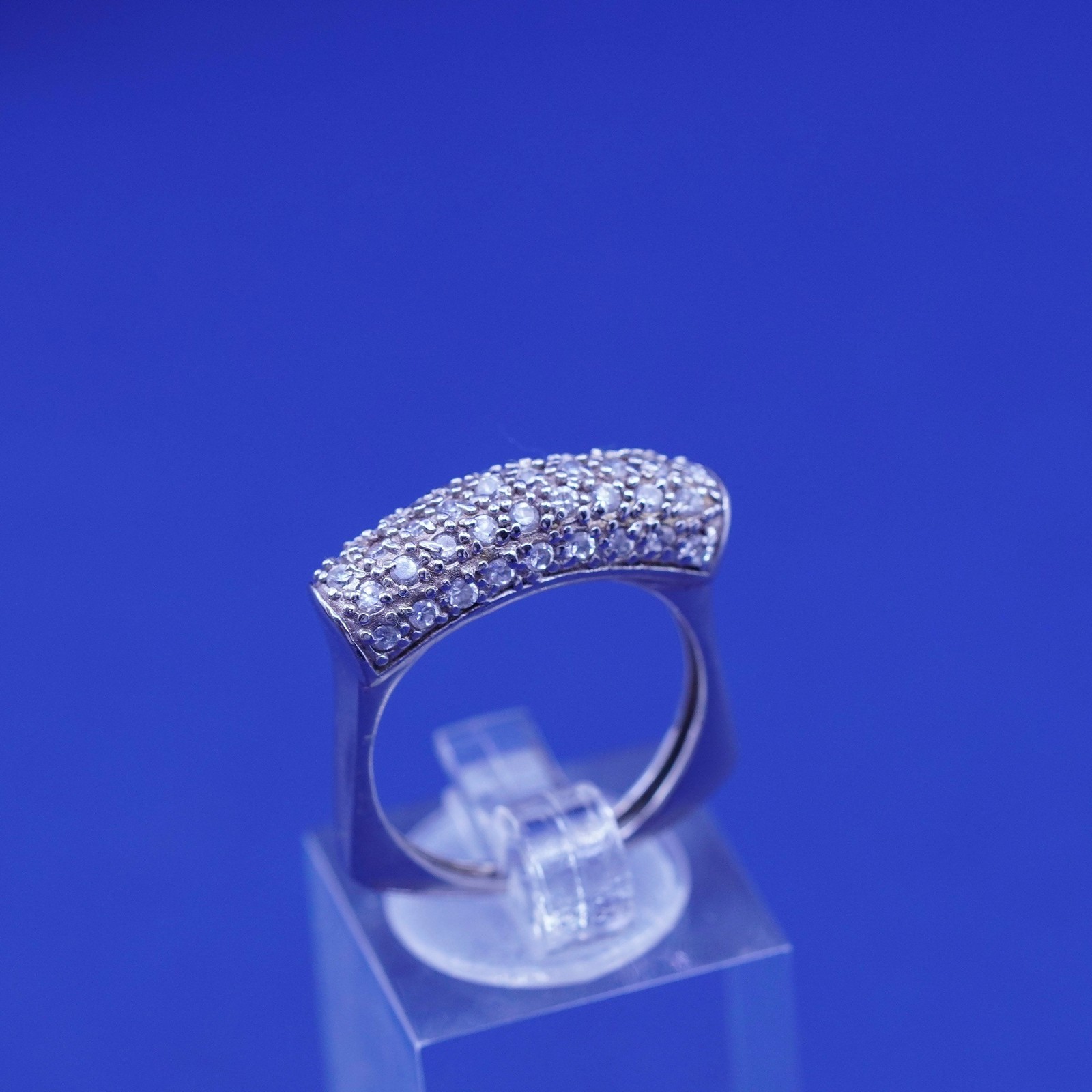 как выглядит Size 7.75, vintage sterling silver ring with cluster Cz, statement band фото
