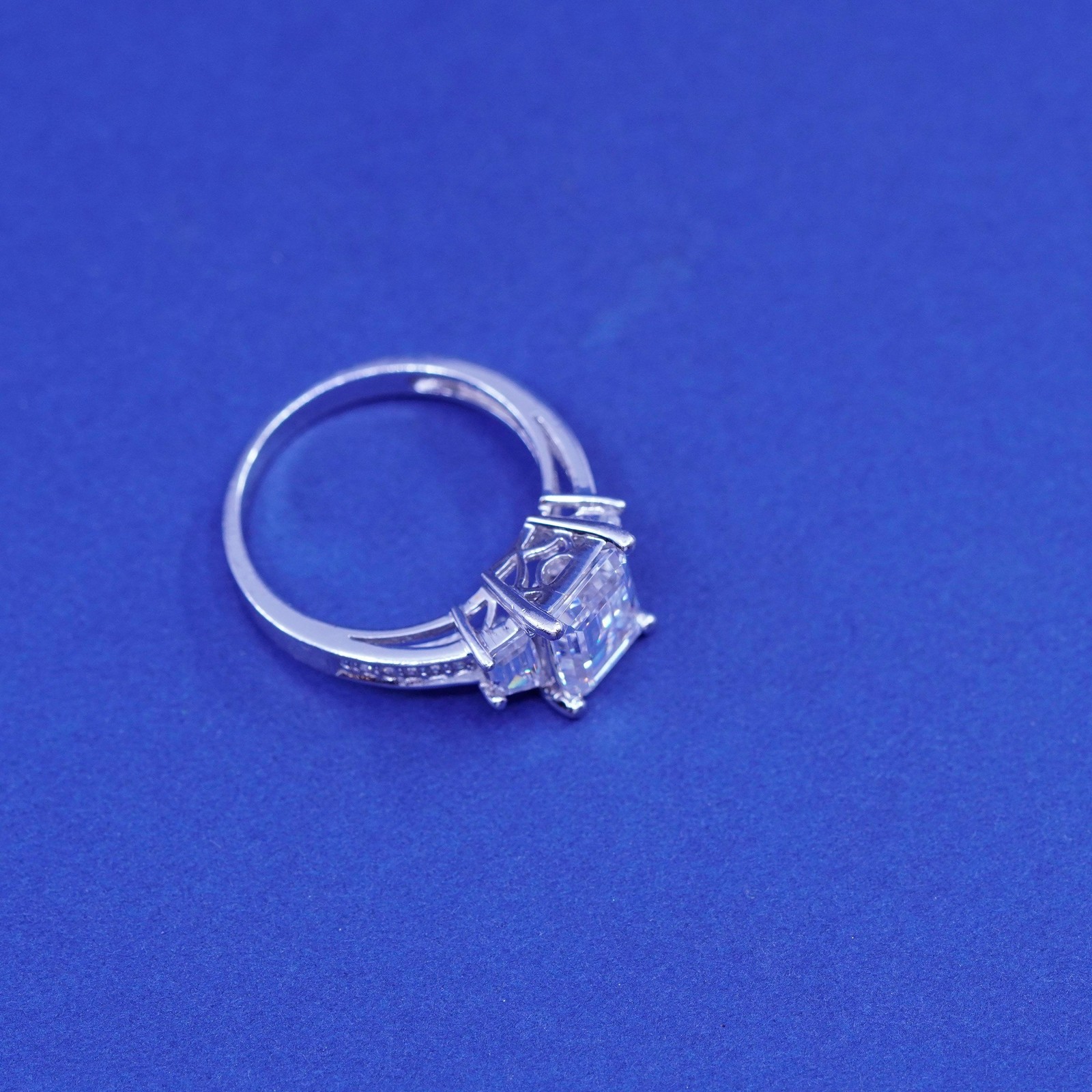 Size 8, vintage Sterling 925 silver engagement anniversary ring cluster Cz