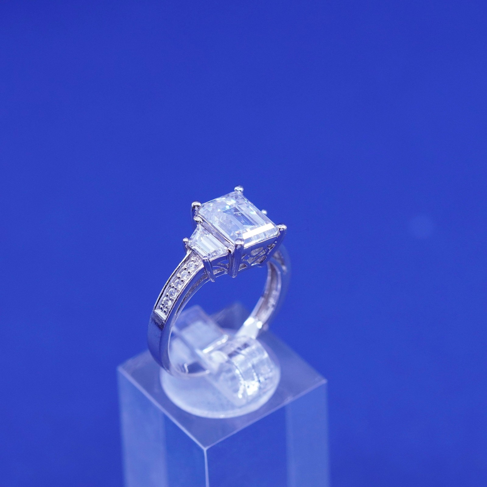 как выглядит Size 8, vintage Sterling 925 silver engagement anniversary ring cluster Cz фото