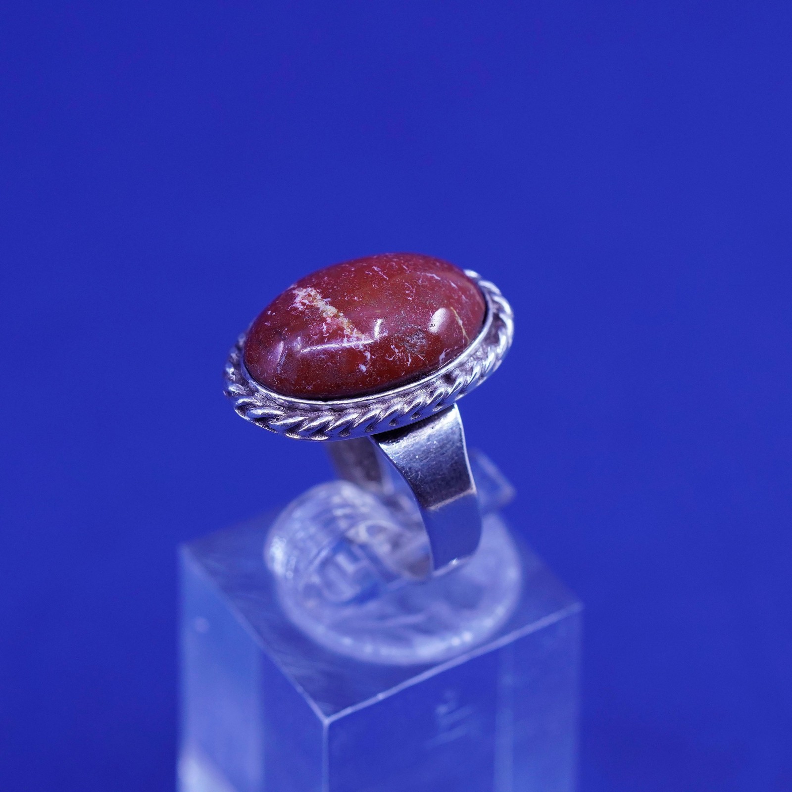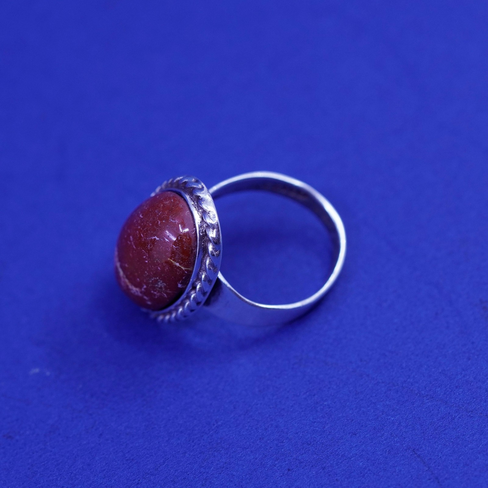 как выглядит Size 4.5, vintage Sterling 925 silver handmade ring with jasper, southwestern фото