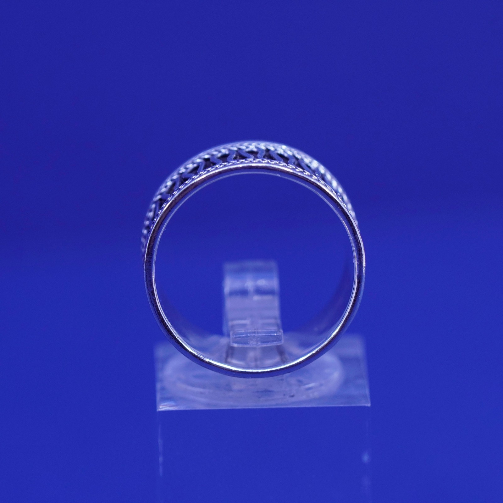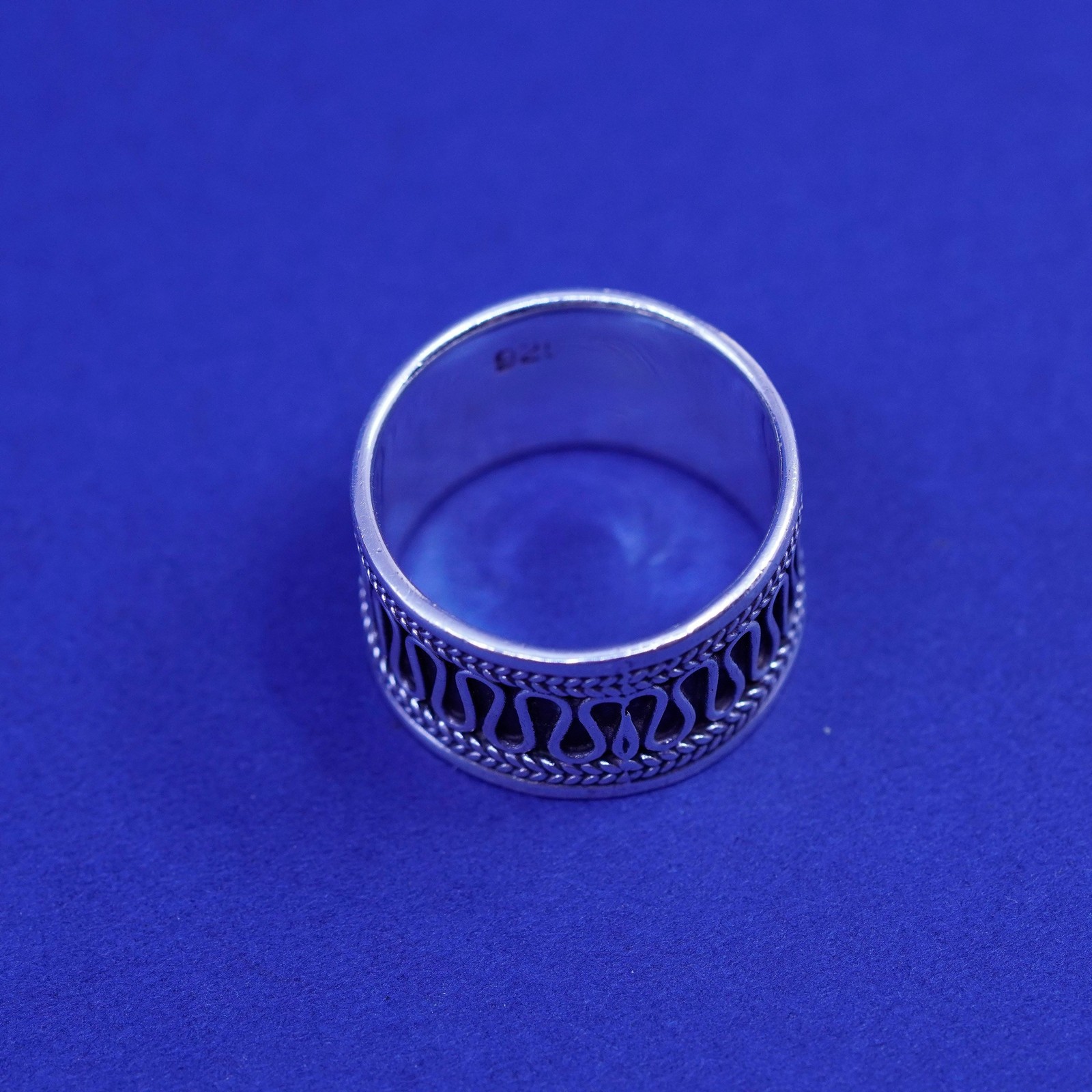 как выглядит Size 6.5, vintage Sterling silver handmade wavy wave ring, wide 925 band фото