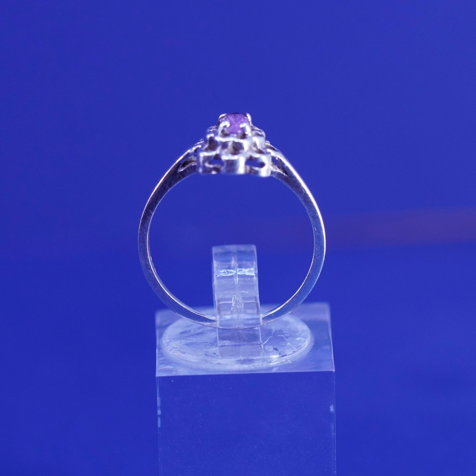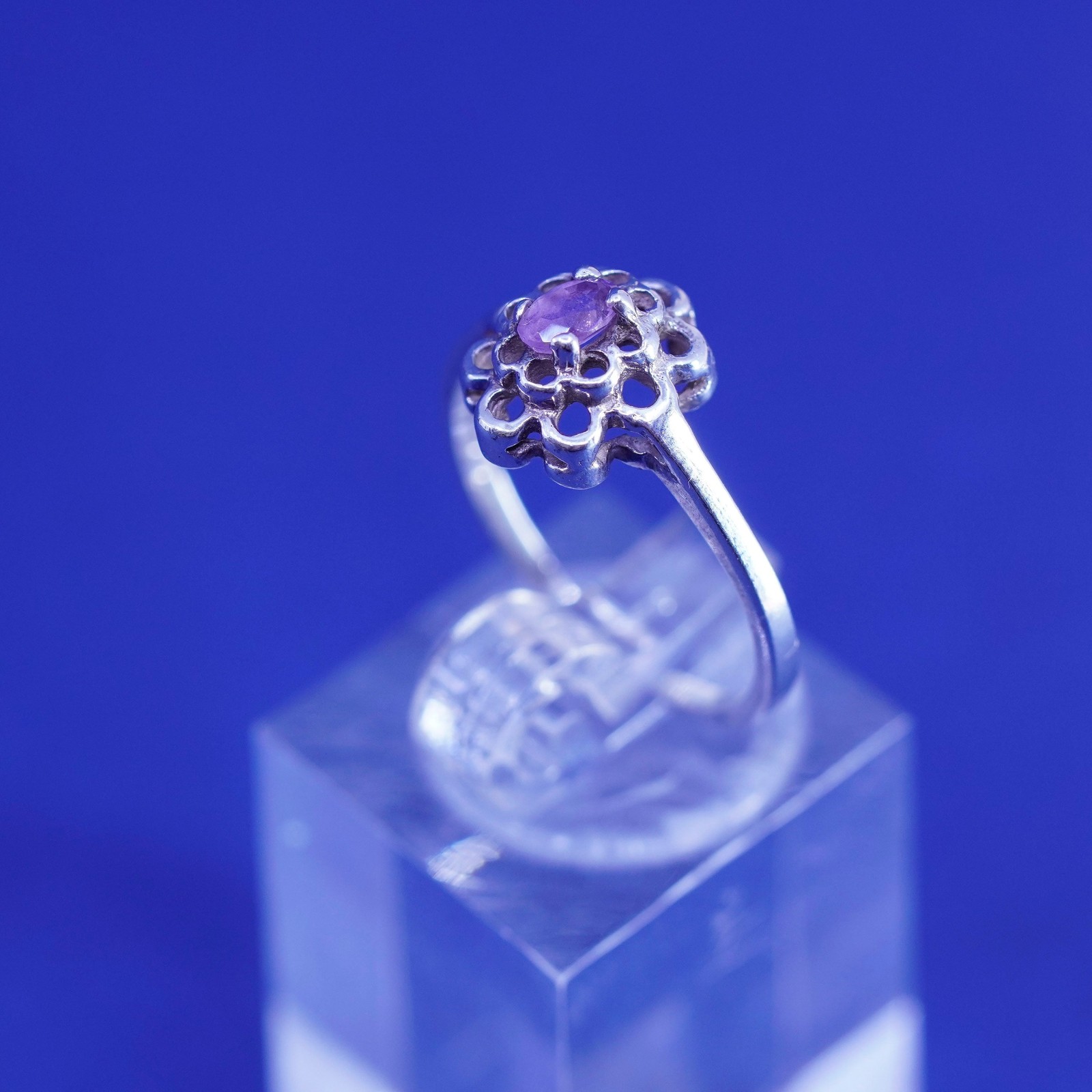 Size 7.25, vintage Sterling 925 silver handmade flower ring with amethyst