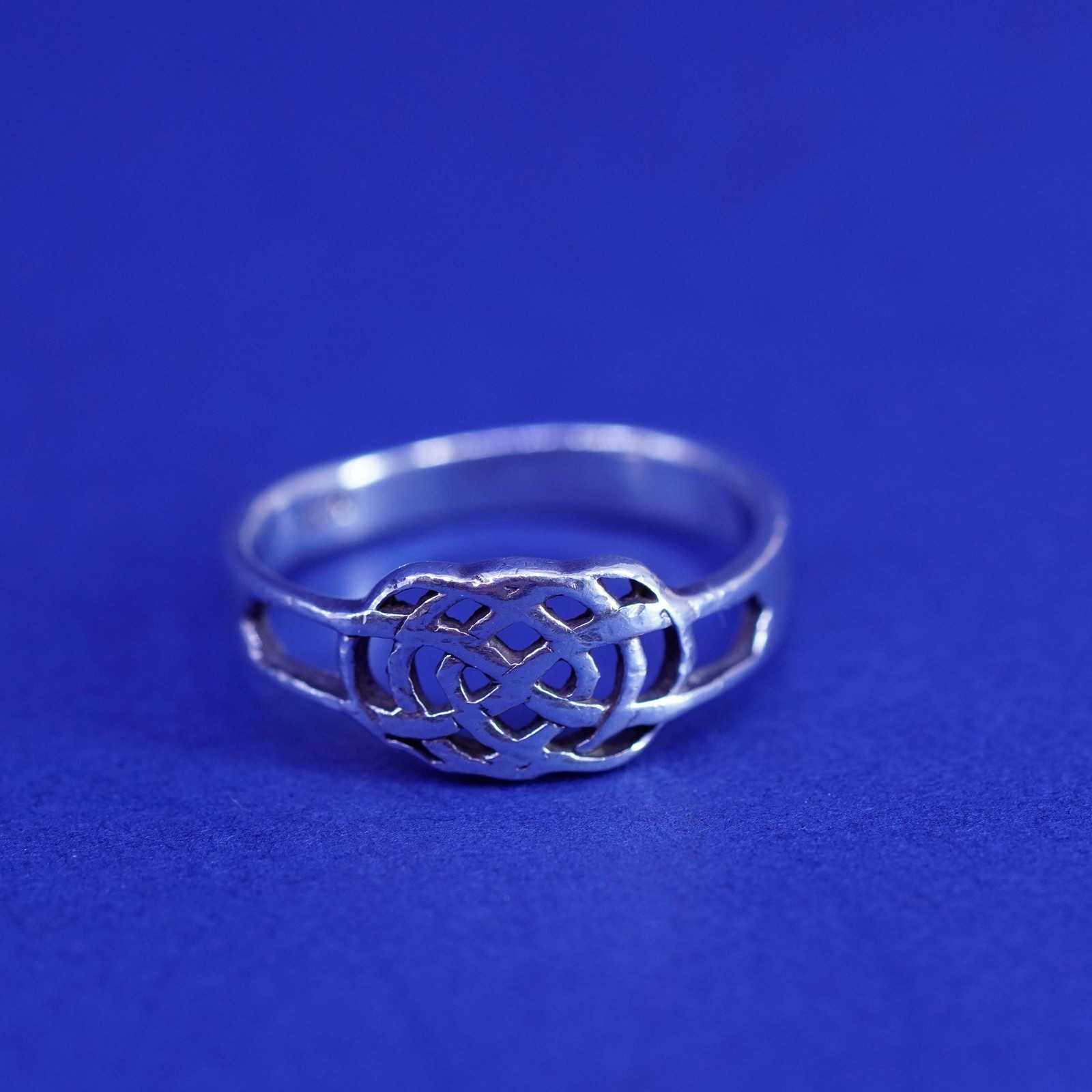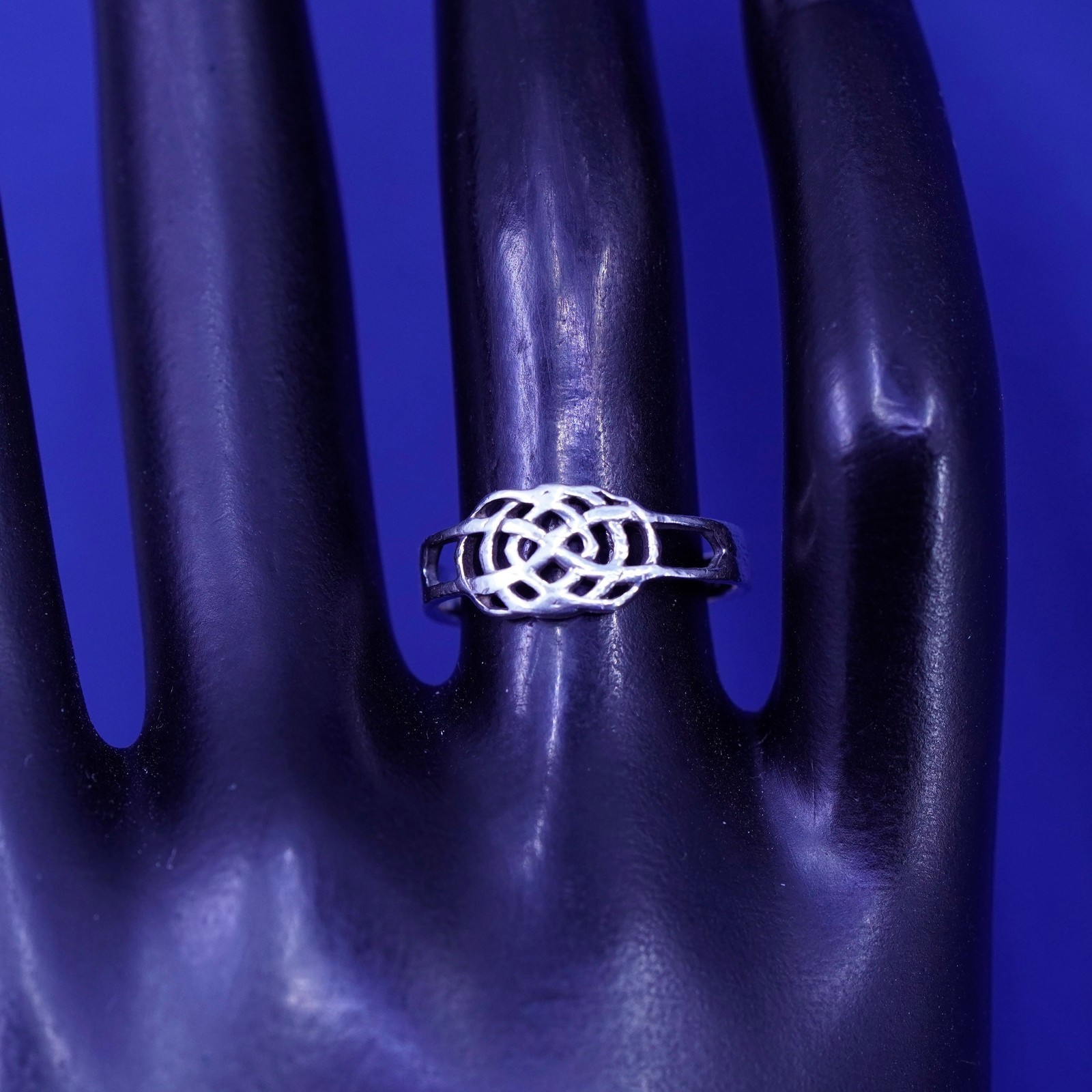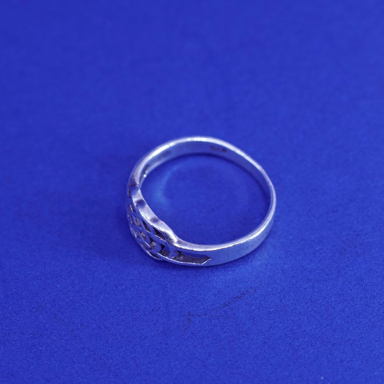 Size 7, vintage sterling silver handmade ring, 925 filigree braided woven band
