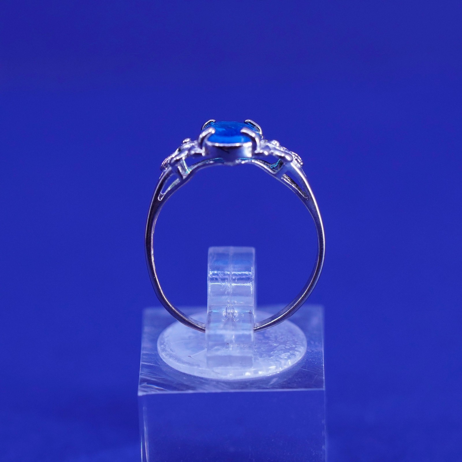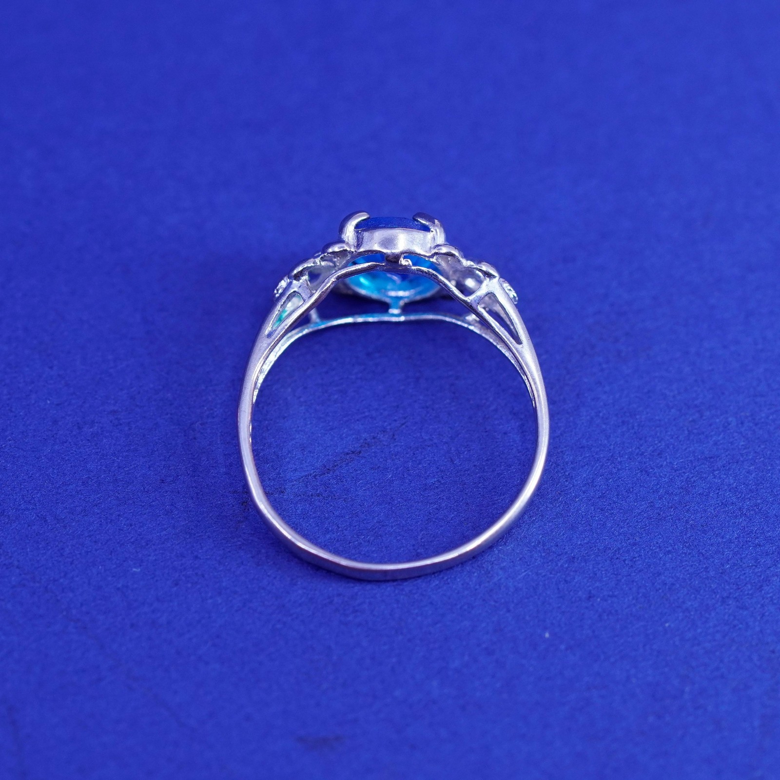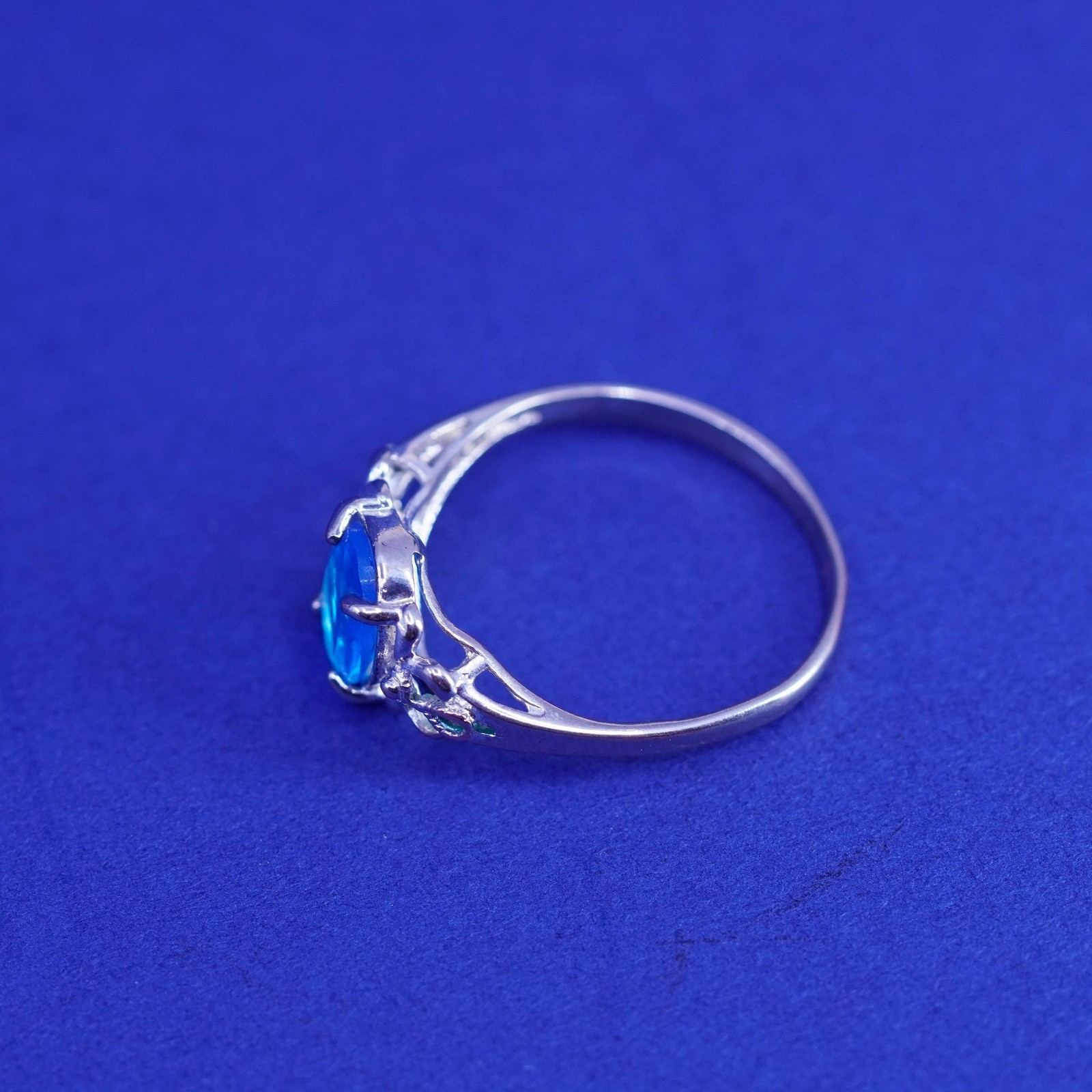 Size 6.25, vintage sterling 925 silver handmade ring with blue crystal