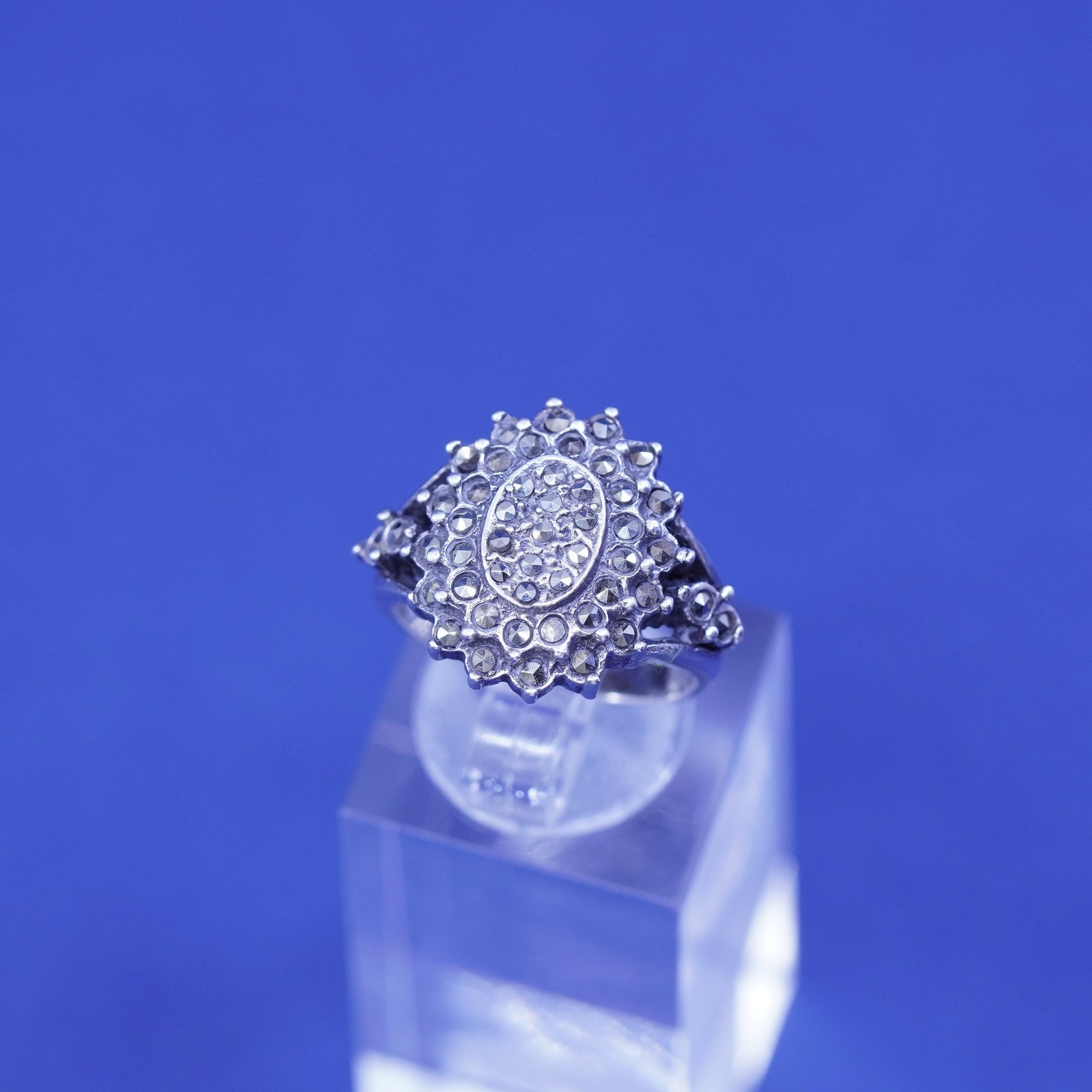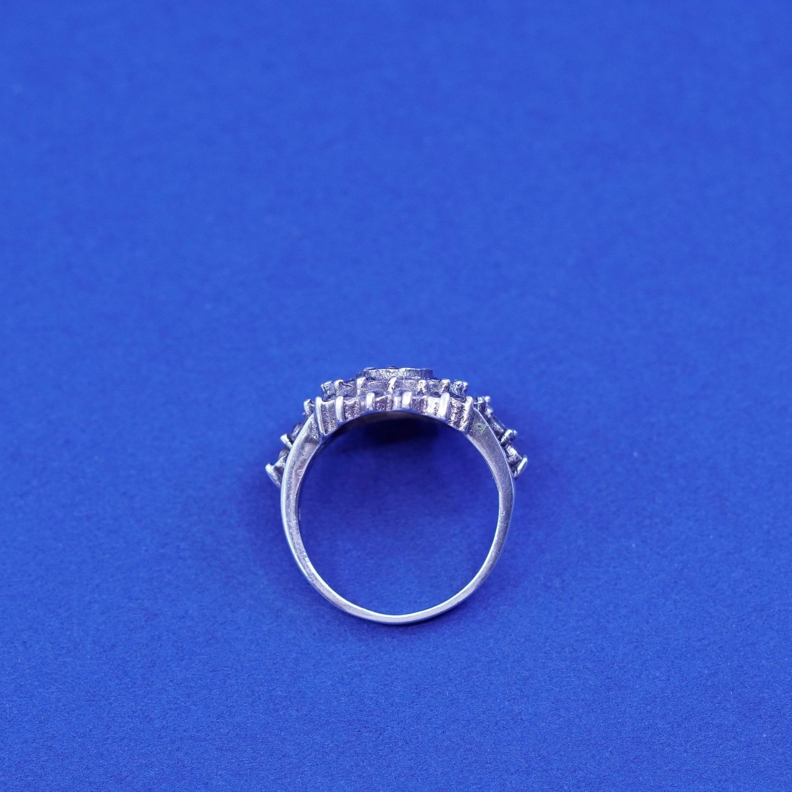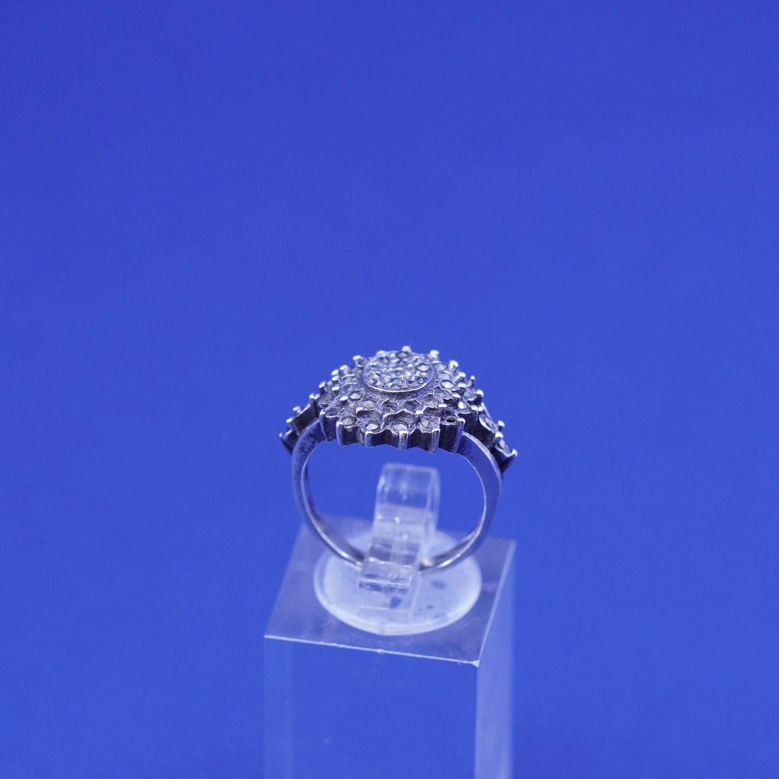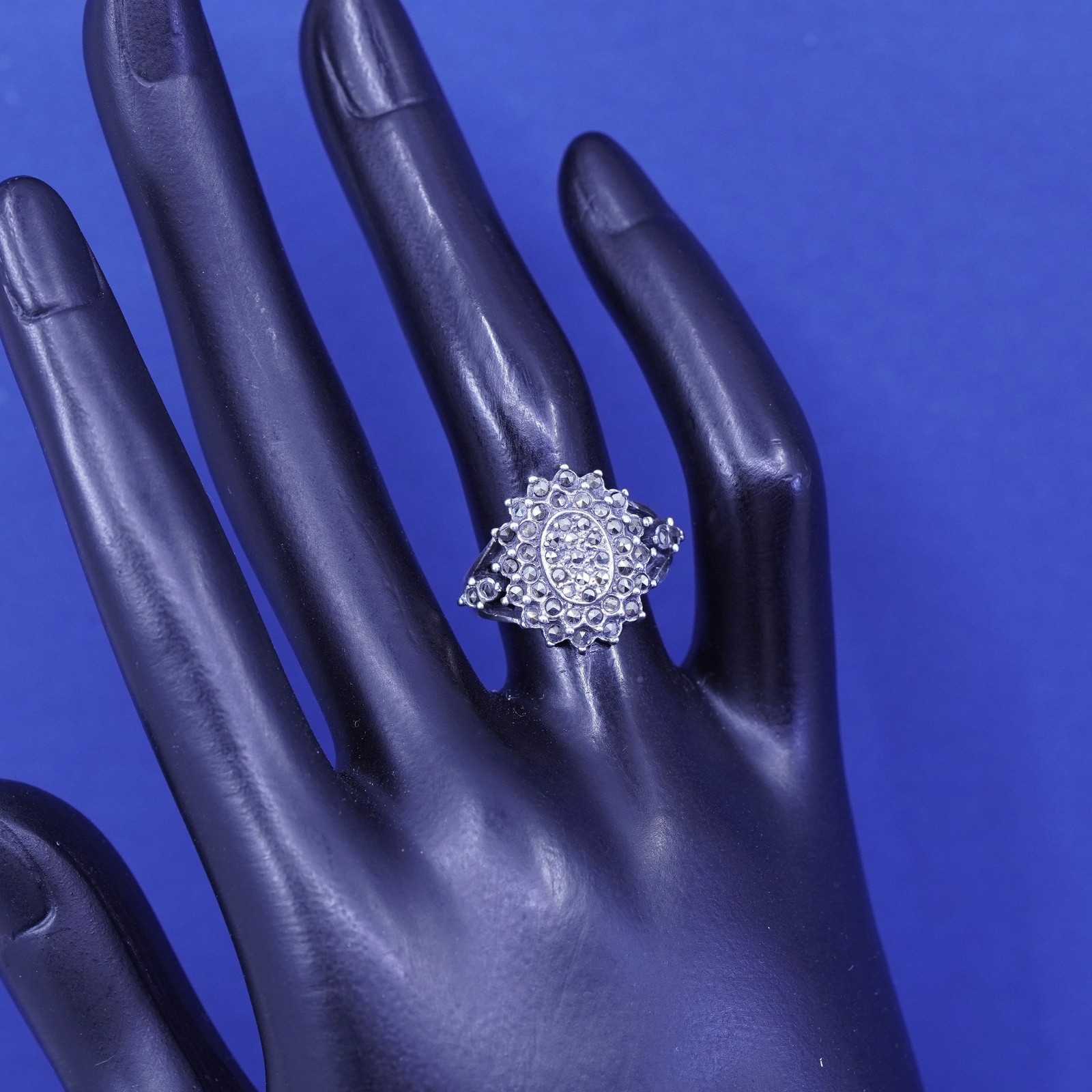 как выглядит Size 6, vintage Sterling silver handmade ring, 925 floral band with marcasite фото