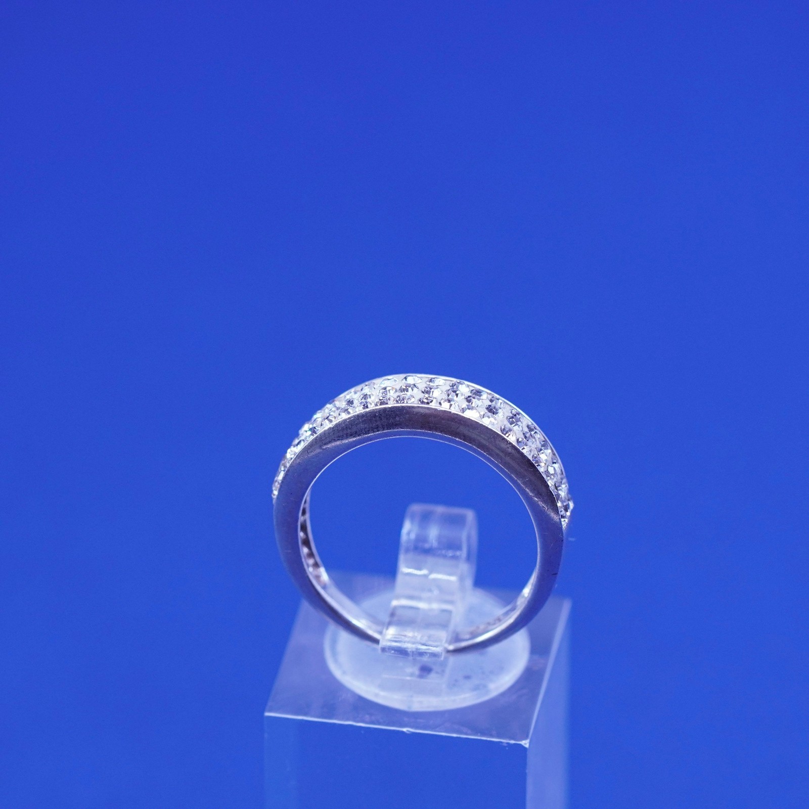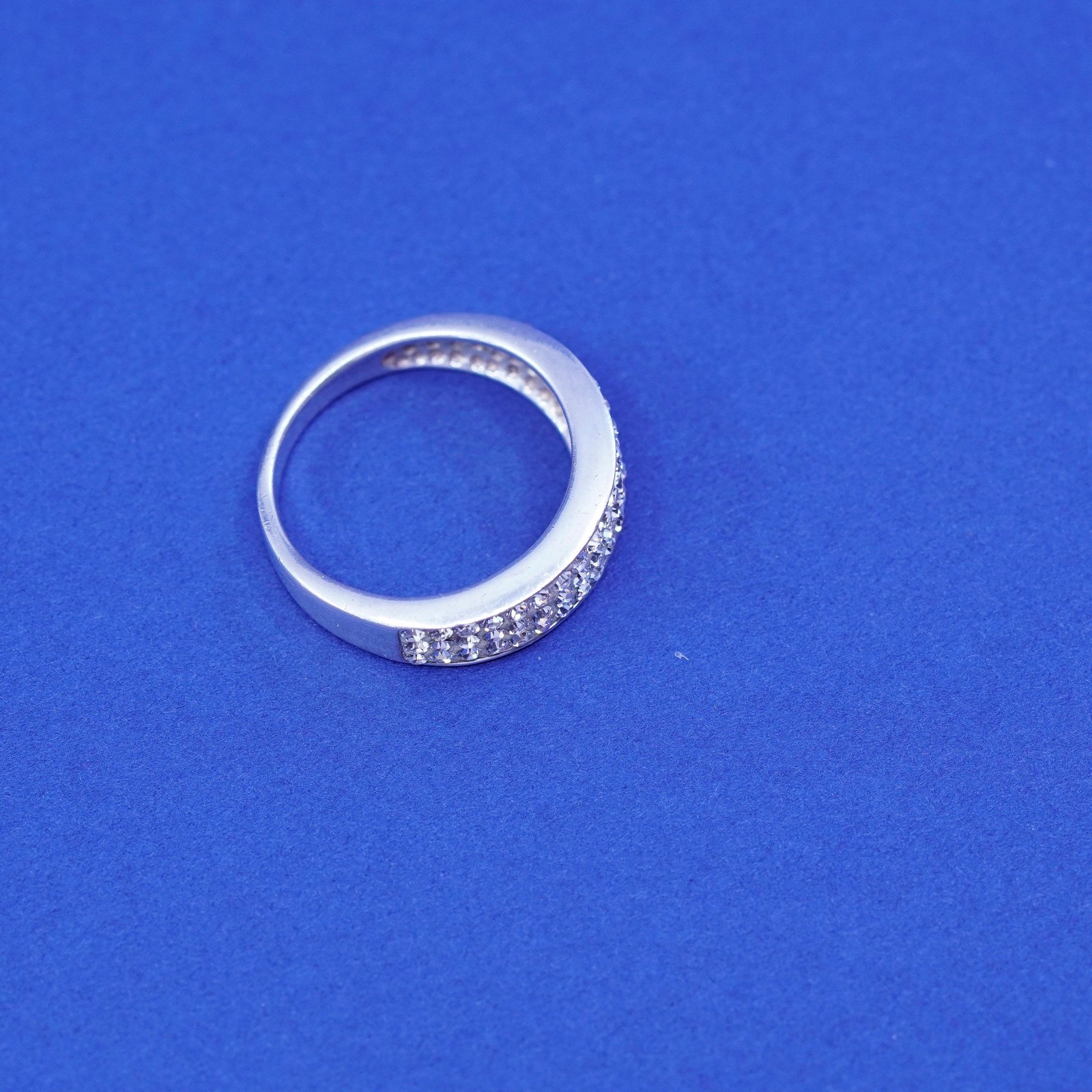 Size 7.5, vintage sterling silver ring with cluster Cz, statement band