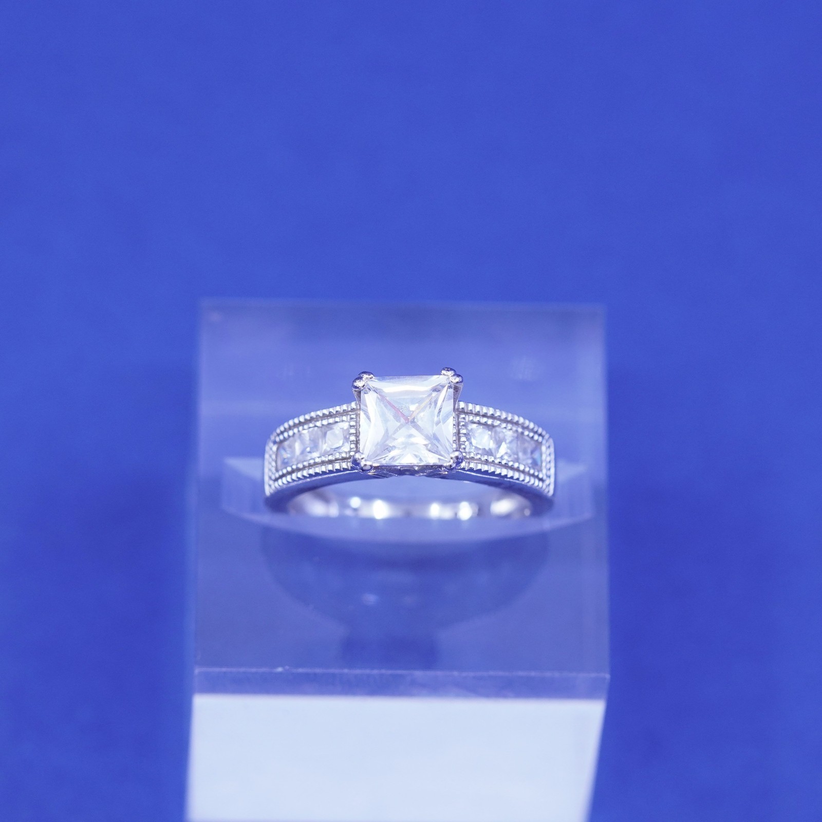 Size 7.5, vintage Sterling 925 silver ring with cluster crystal, engagemen