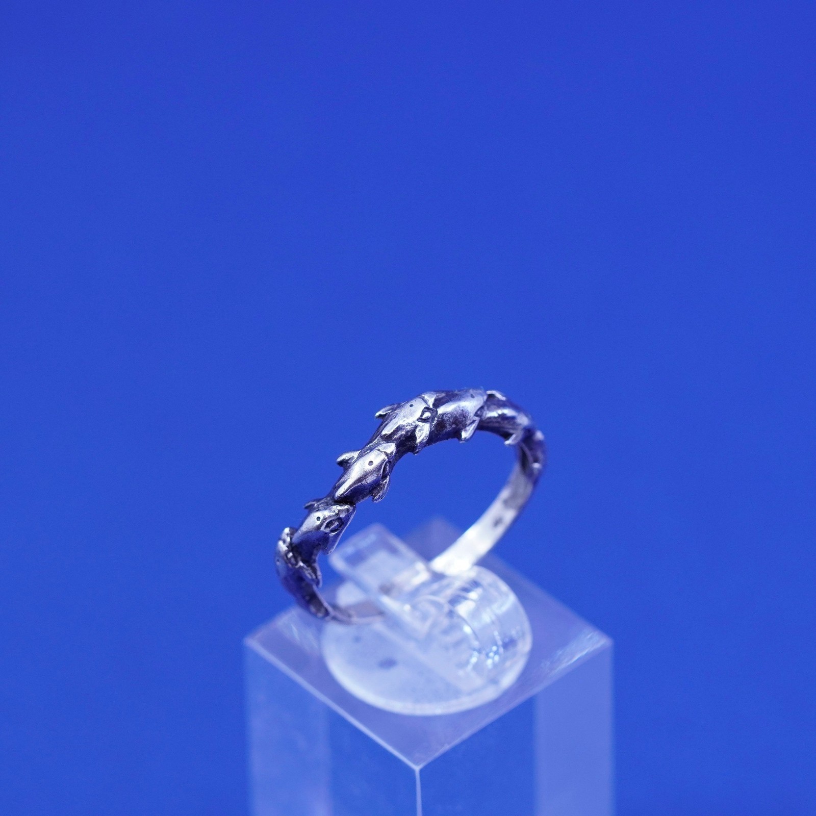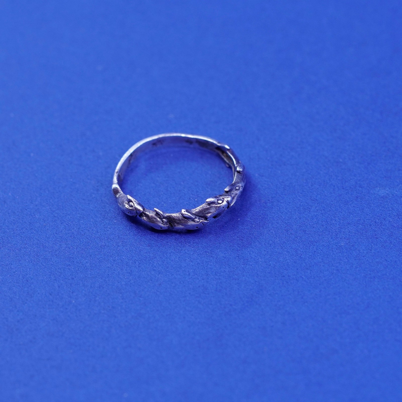 Size 8, vintage sterling silver handmade ring, 925 dolphin wrap band